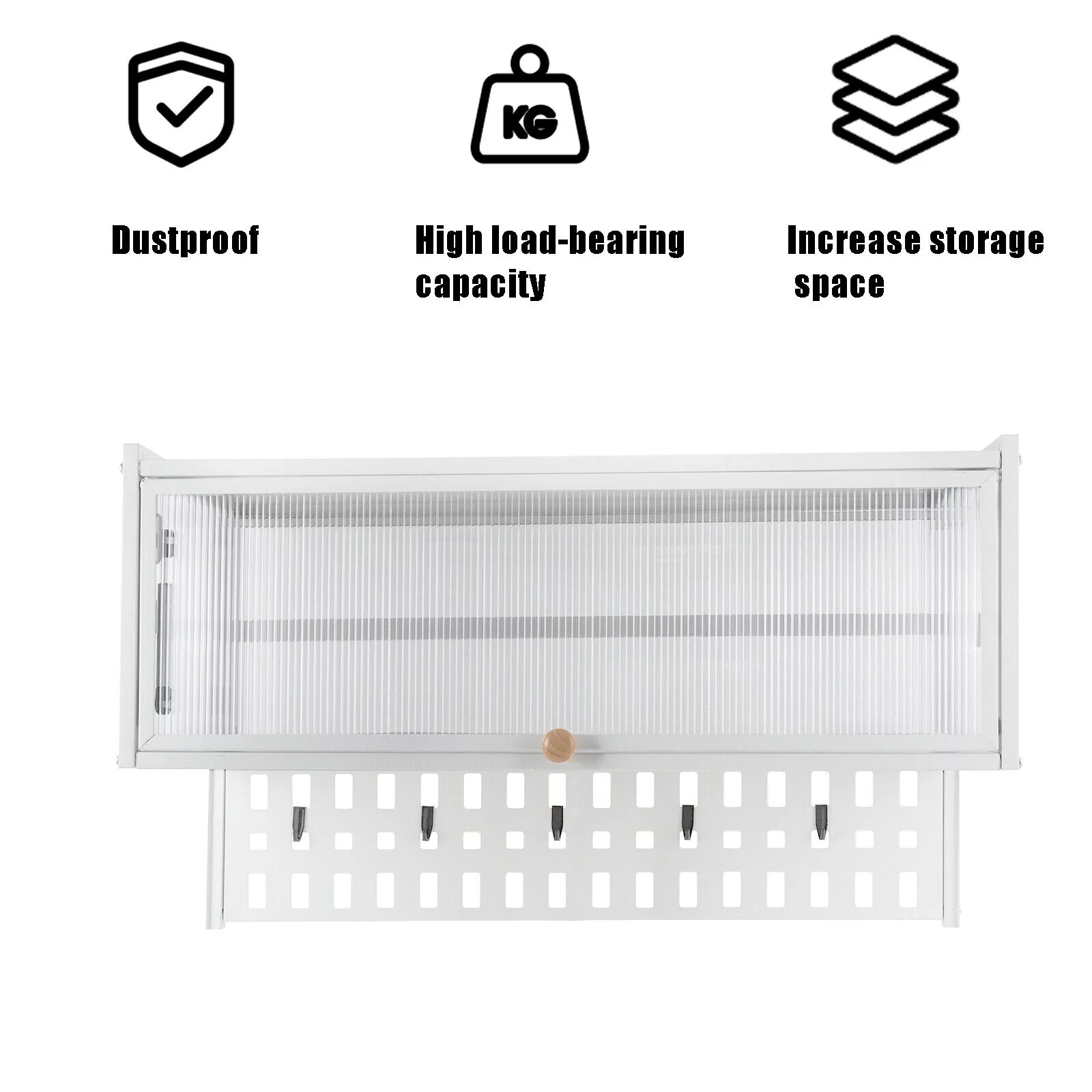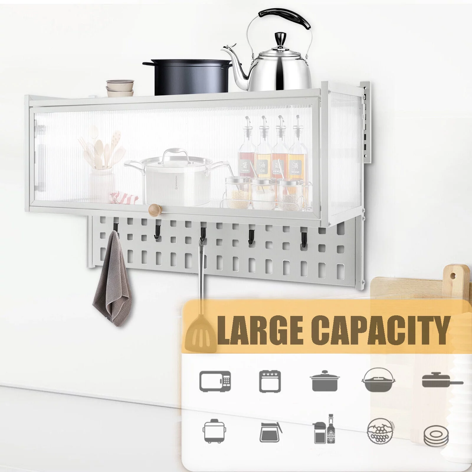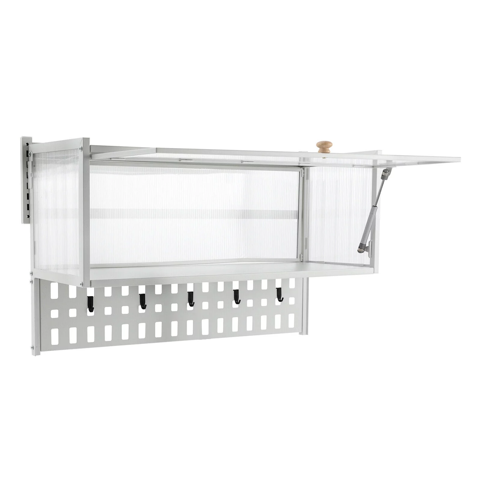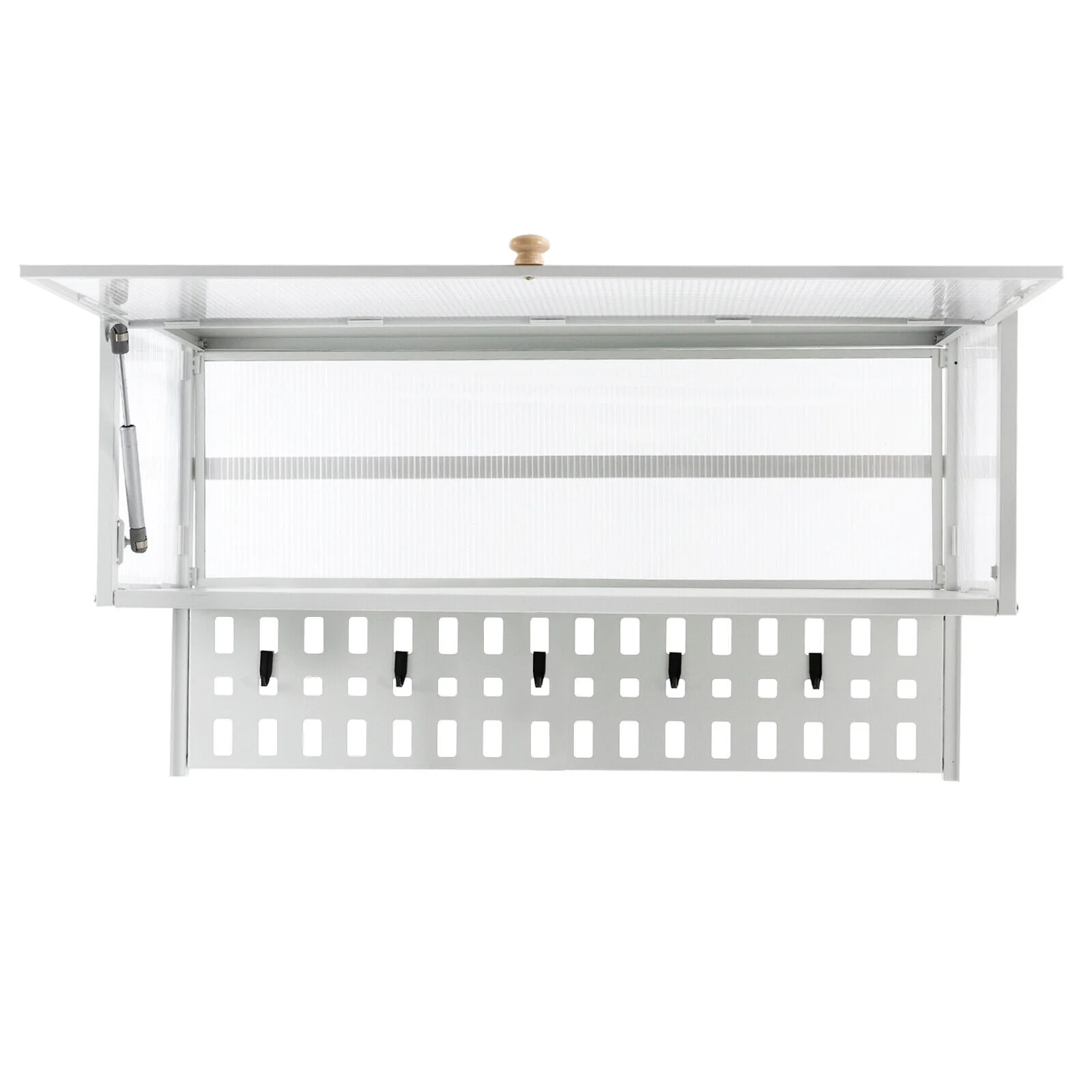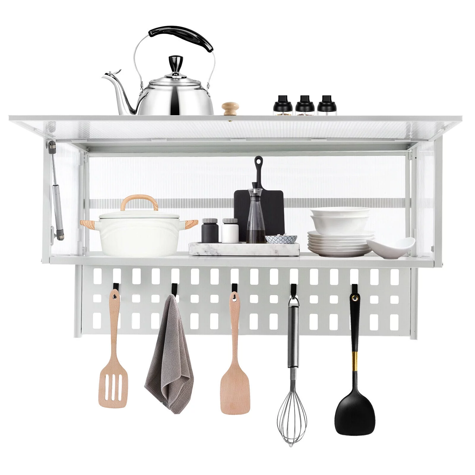 Miumaeov Wall Mounted Cabinet w/ Flip-Up Door Kitchen Pantry Storage Organizer Cabinet with 5x Hooks &Hanging Board