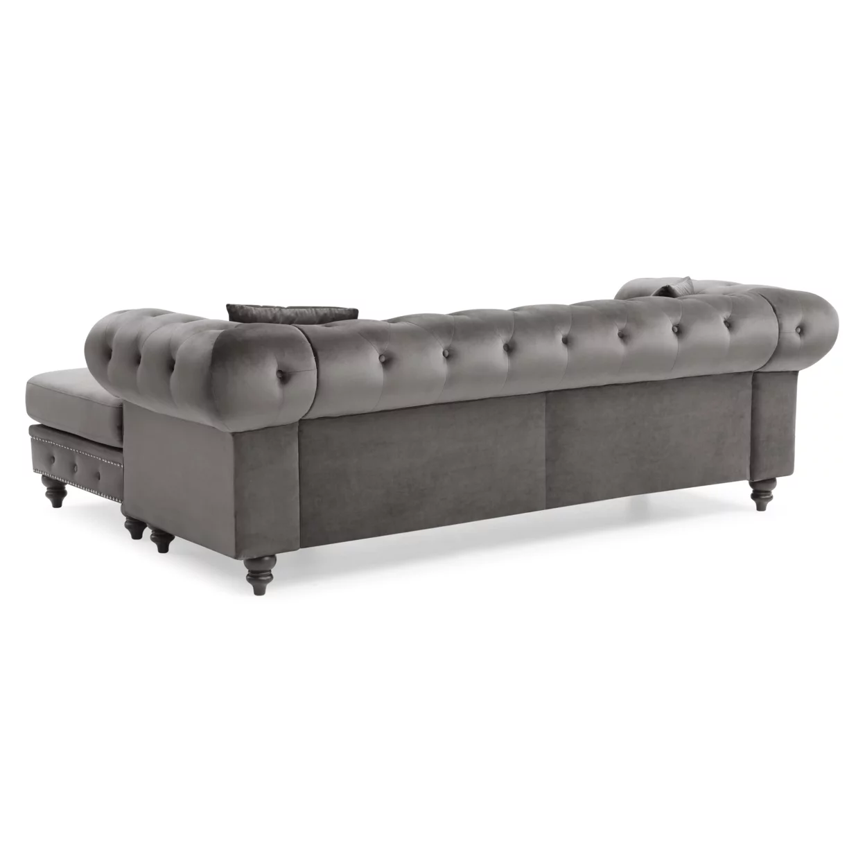 Passion Furniture Nola 98 in. Dark Gray Velvet L-Shape 3-Seater Sofa with 2-Throw Pillow