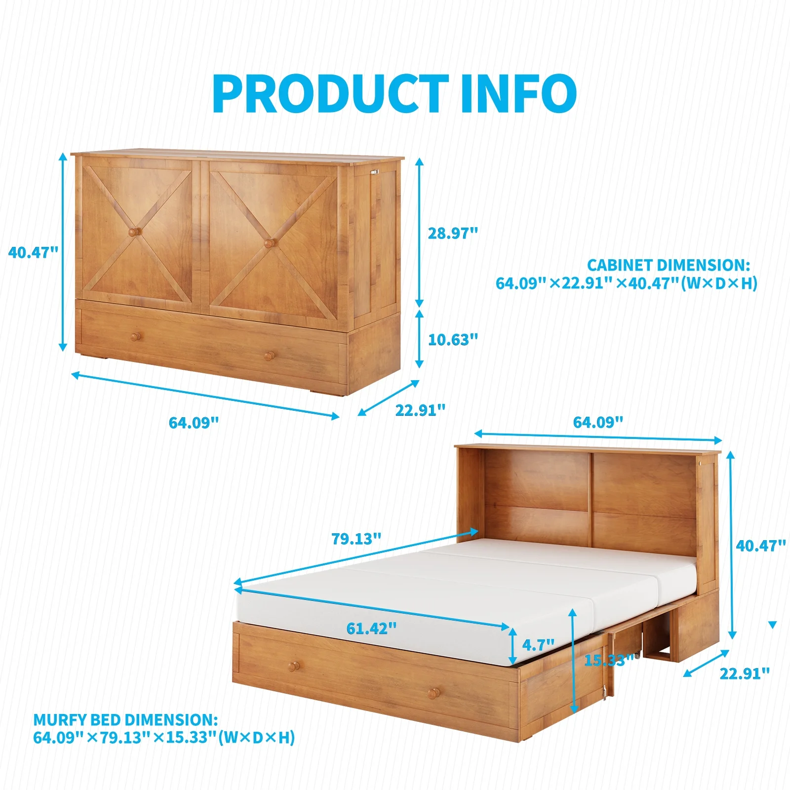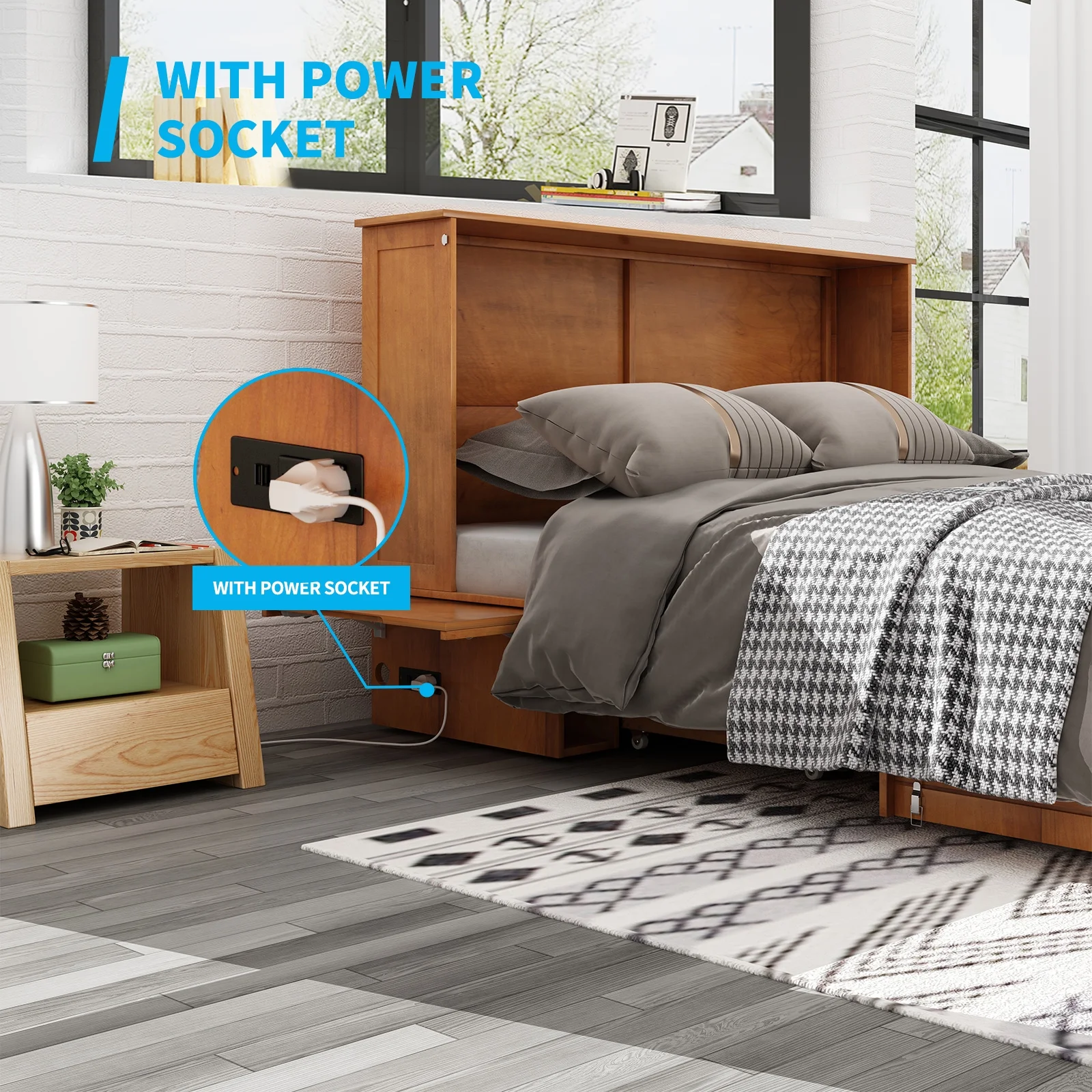 Mjkone Murphy Bed ,Murphy Cabinet Chest Bed, Cube Cabinet Space-Saving Murphy Bed with Charging Station for Multipurpose Guest Room or Home Office, Queen(Cherry)
