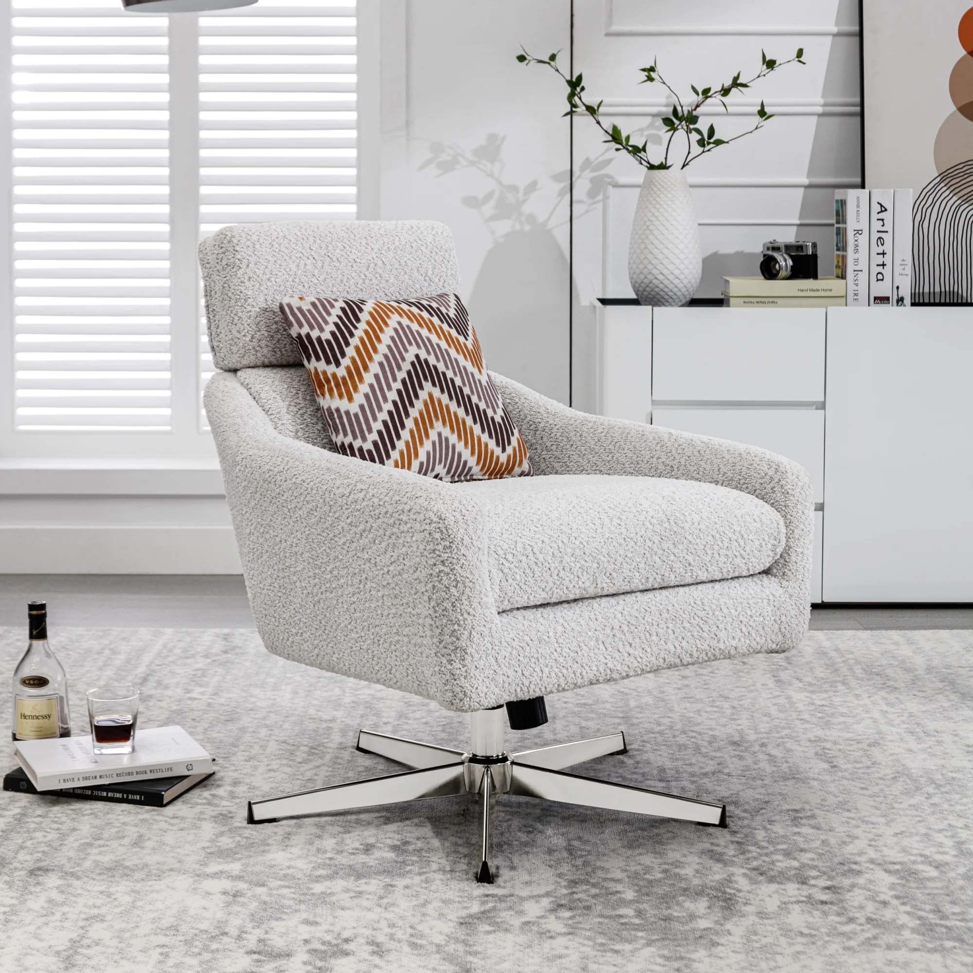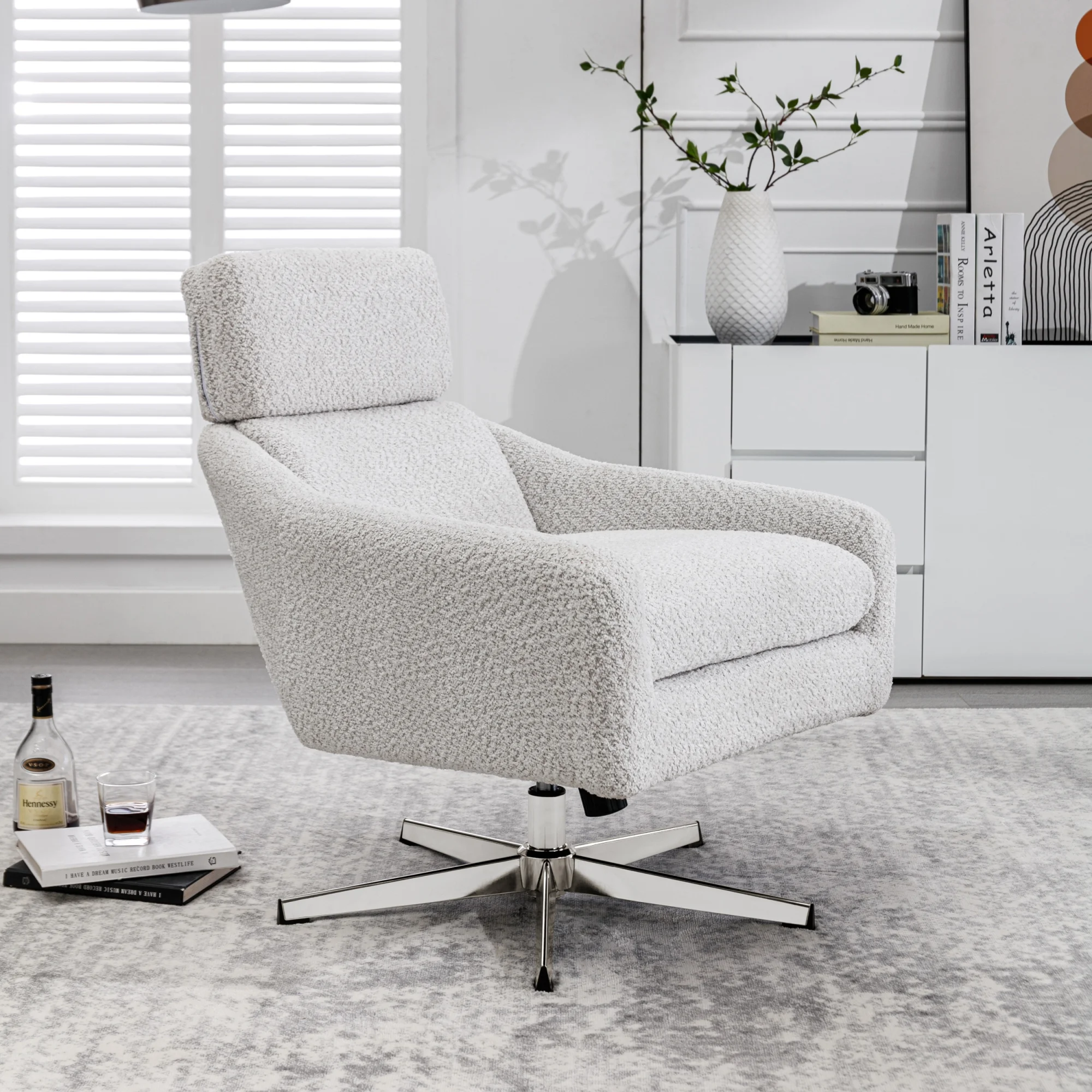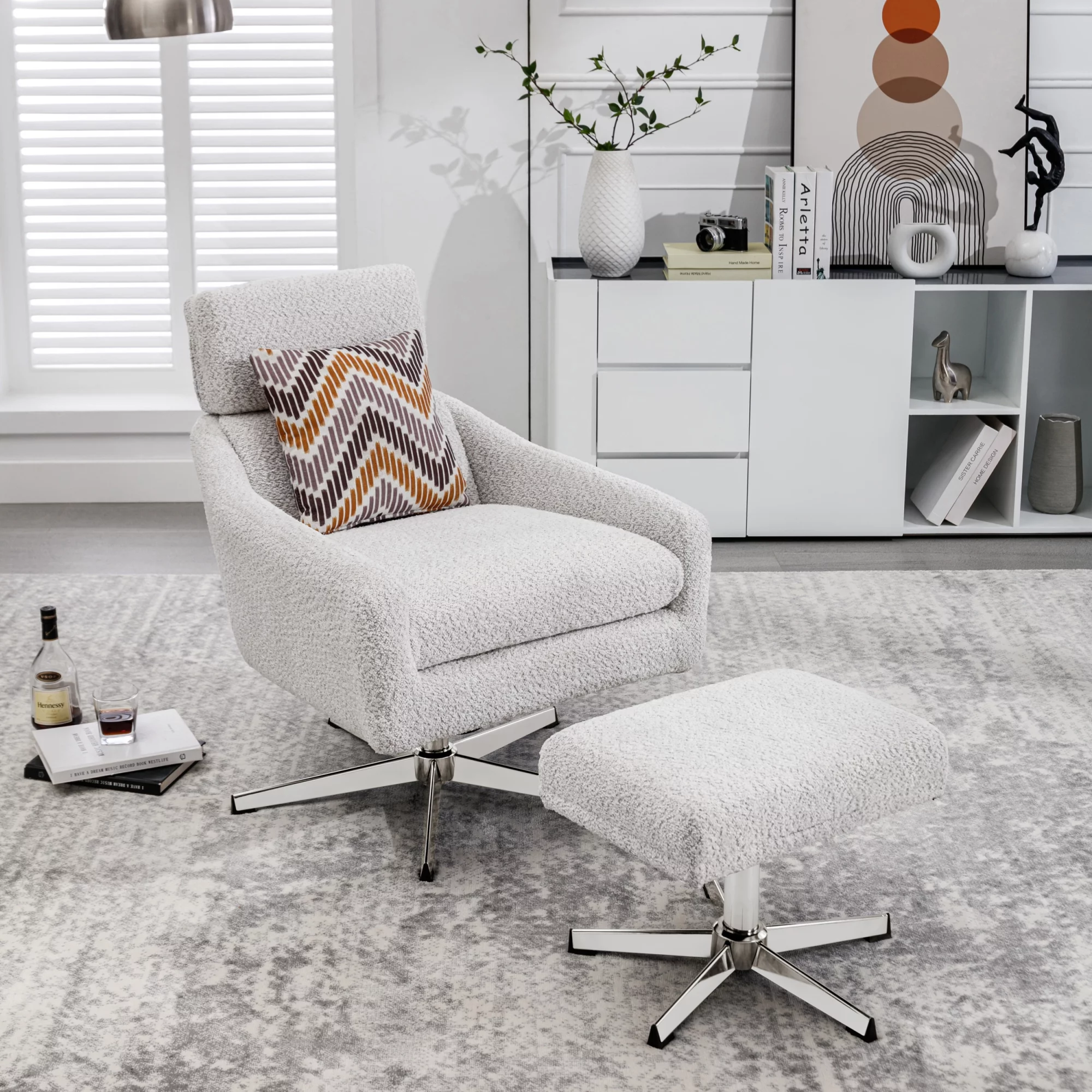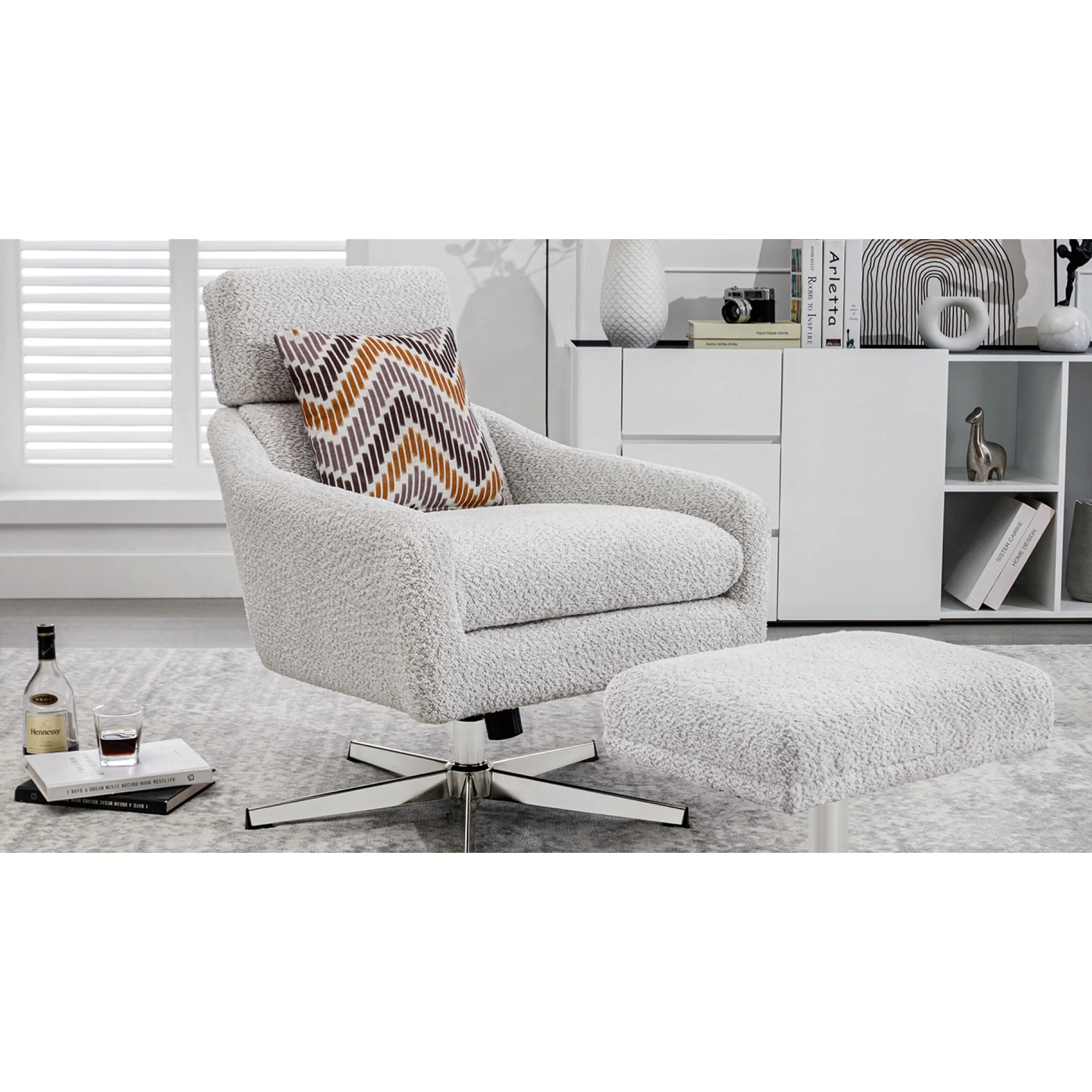 Swivel Armchair with Ottoman for Living Room, Bedroom, Office, Beige Linen