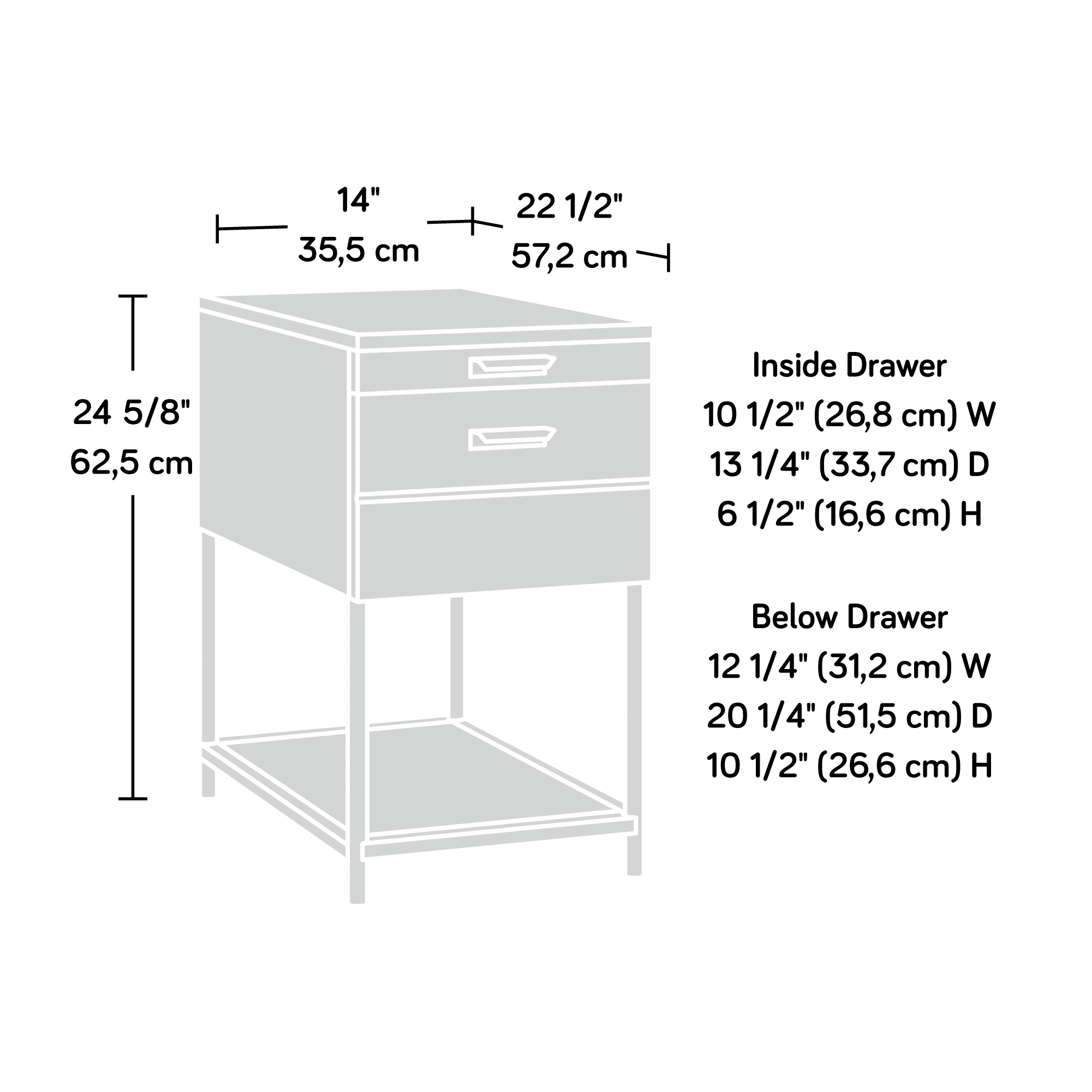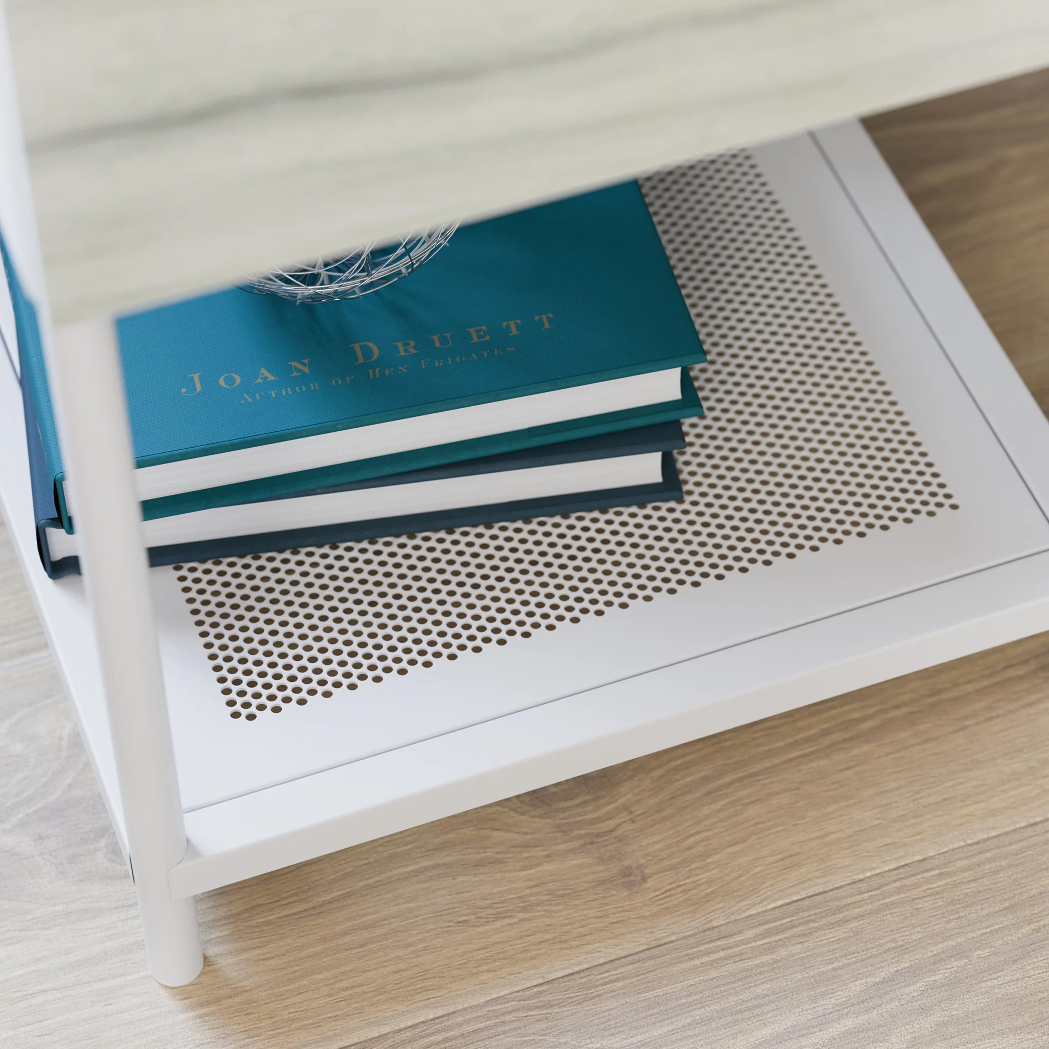 Sauder Boulevard Cafe, Side Table With Pull Out Tray and Drawer, White Finish