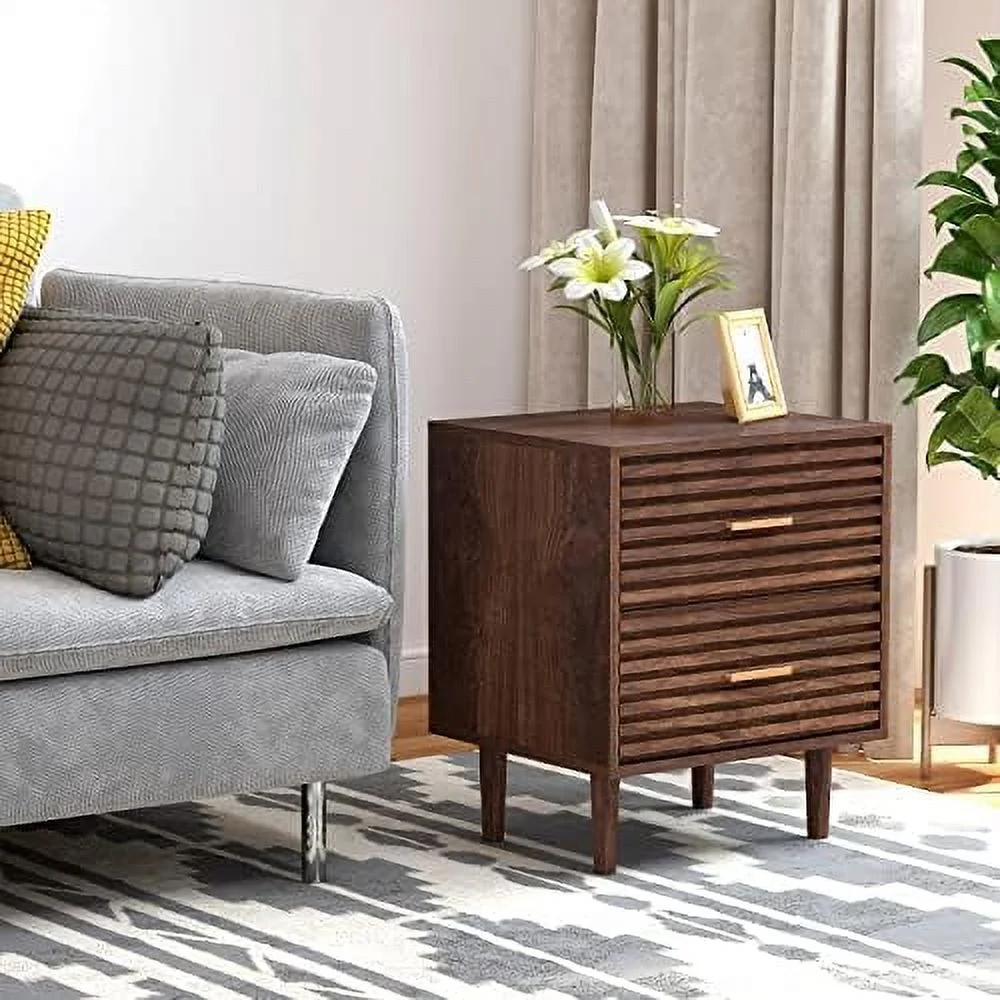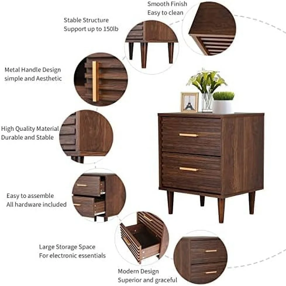 Night Stand Mid-Century Modern Bedside Table with 2 Drawers and Solid Wood Legs Vintage Nightstand Wood Side Table Sofa End Table Accent Table Dresser for Bedroom Livingroom