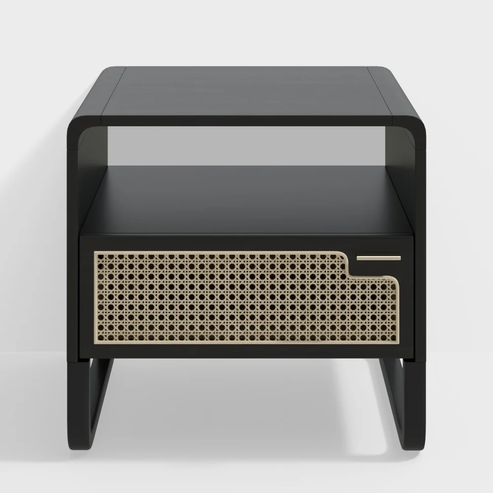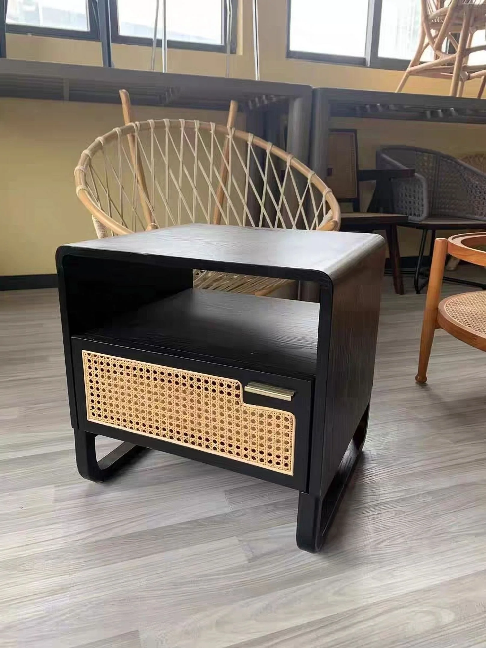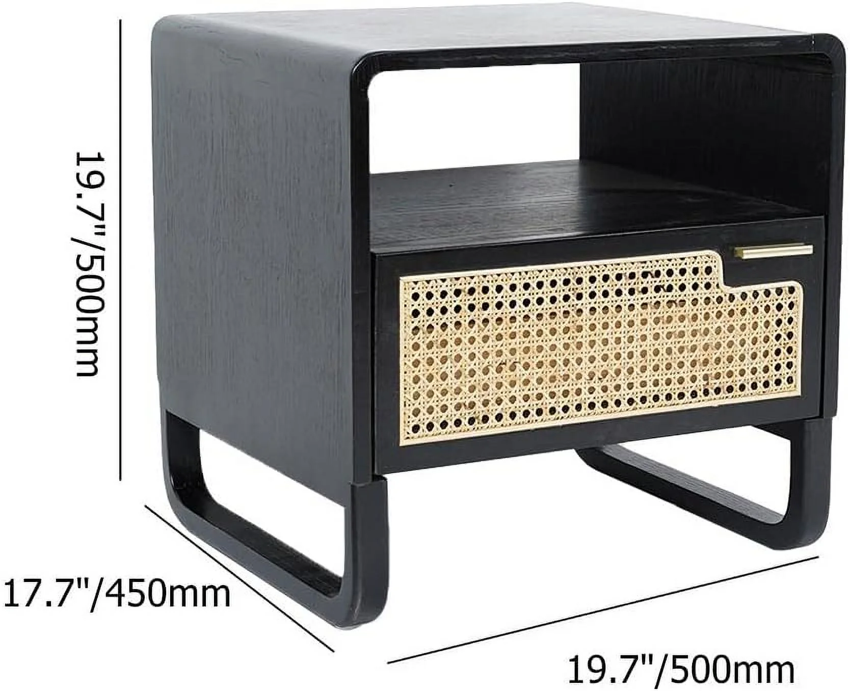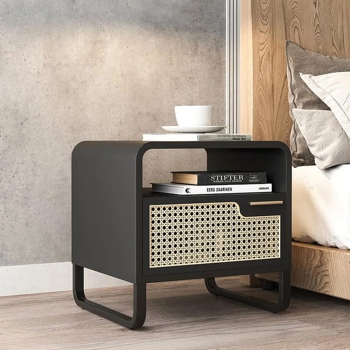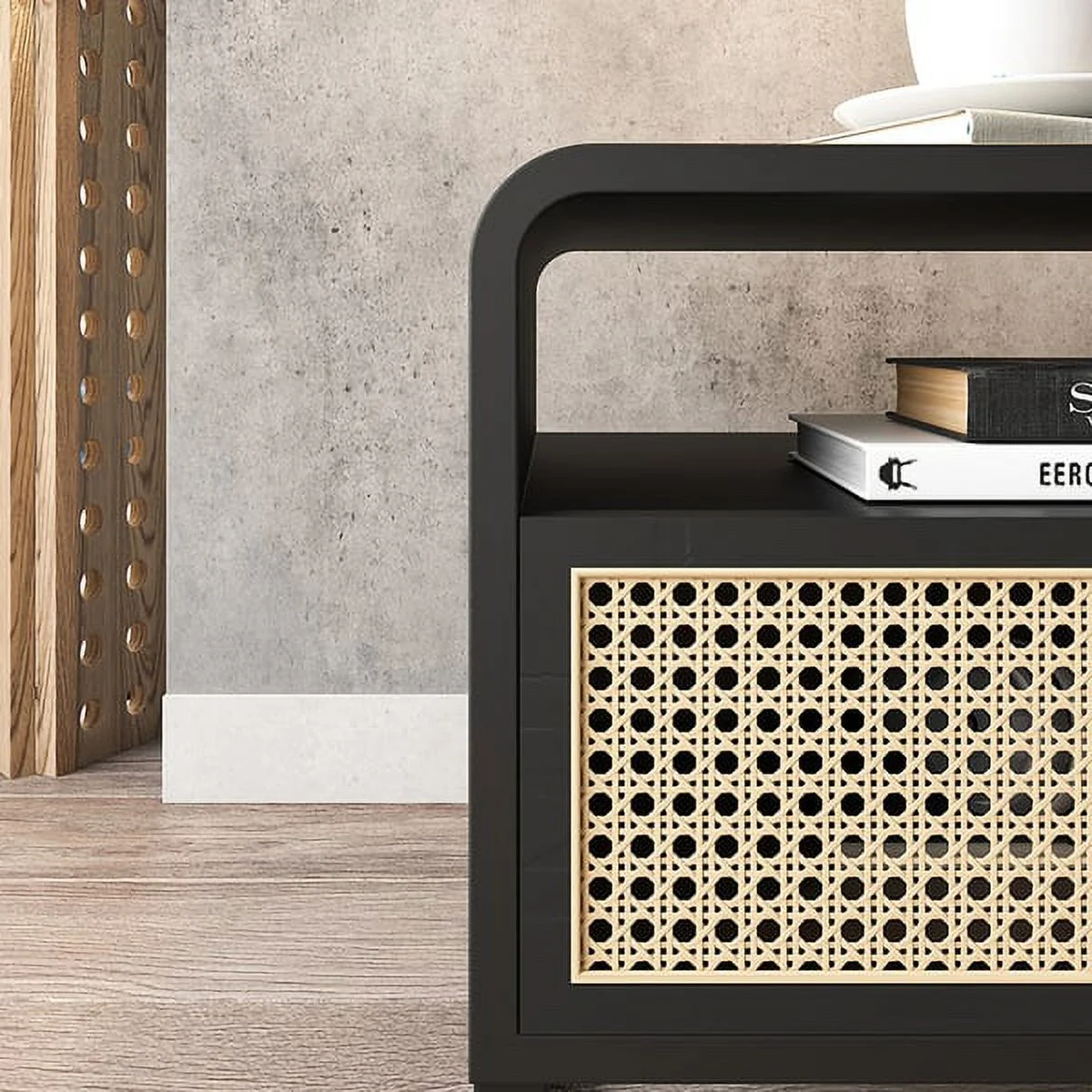 homary Minimalist Nightstand Rattan Woven Bedside Table with 1 Drawer Bedroom Furniture End Table Black