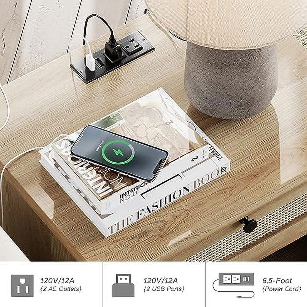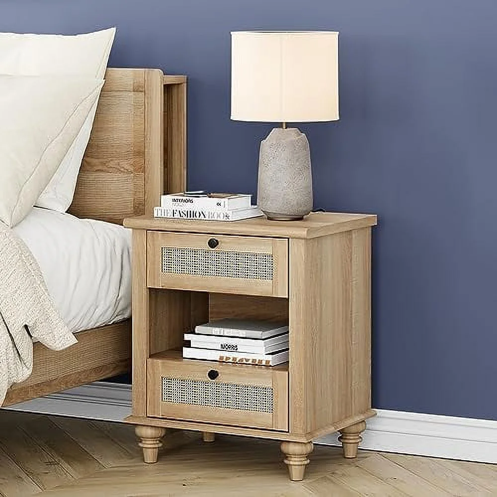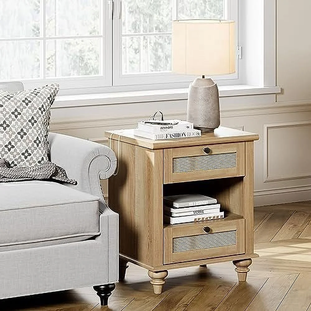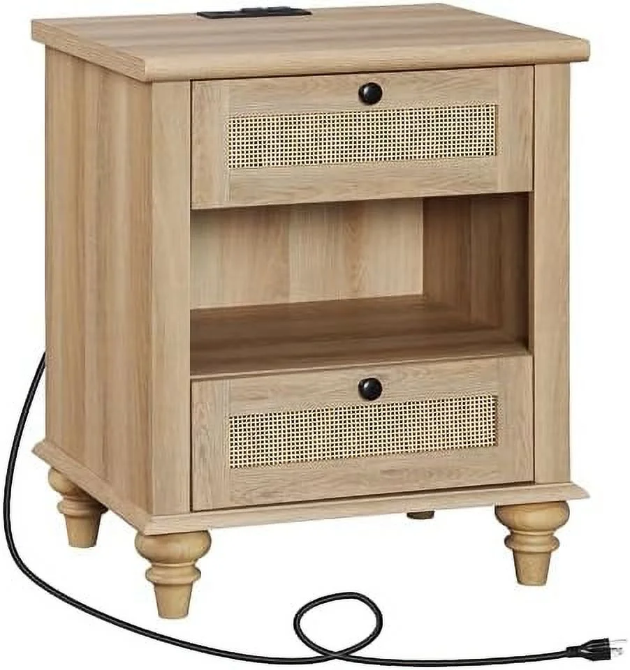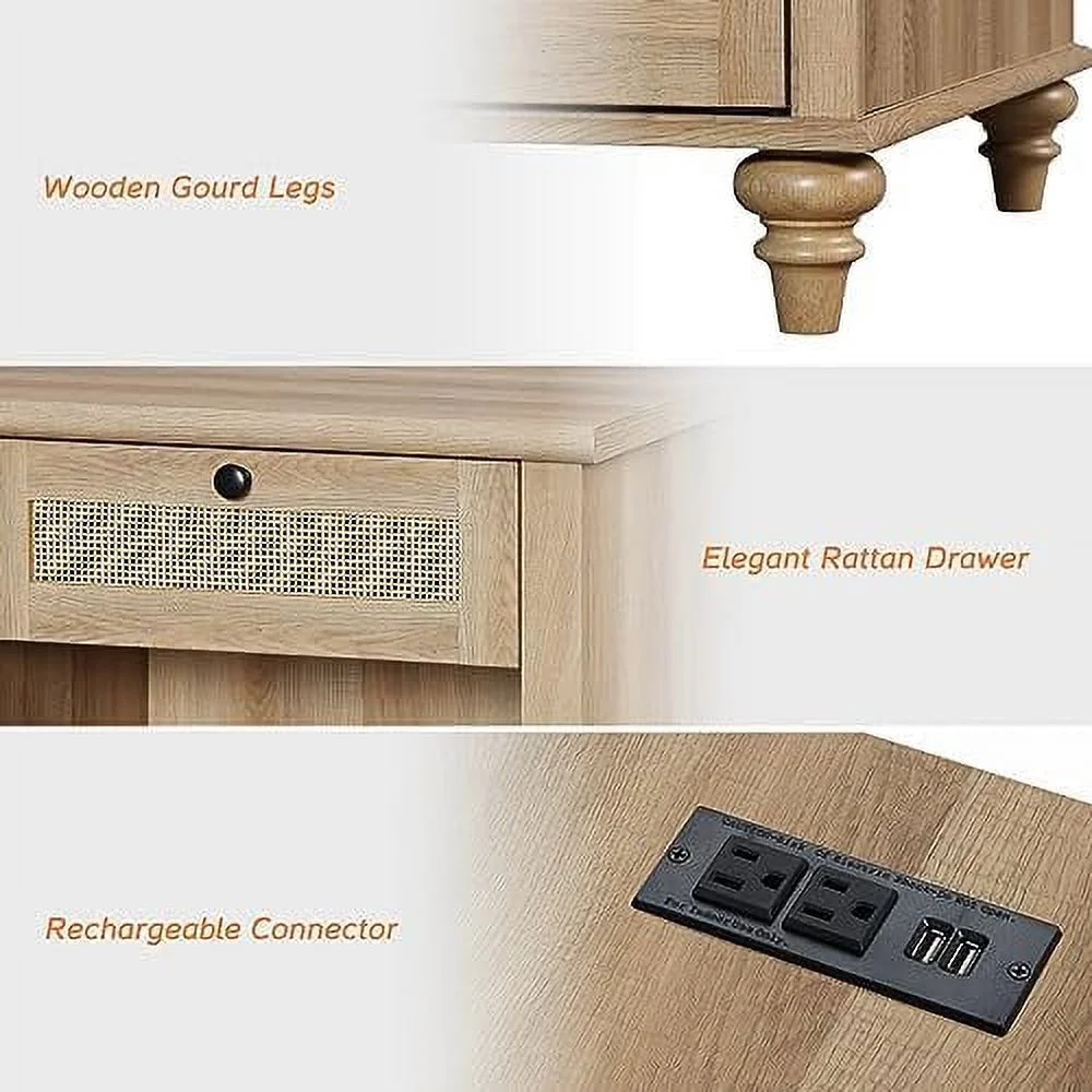 homary Minimalist Nightstand Rattan Woven Bedside Table with 1 Drawer Bedroom Furniture End Table Black