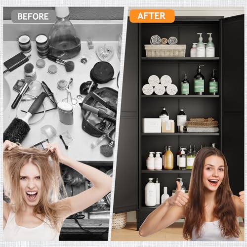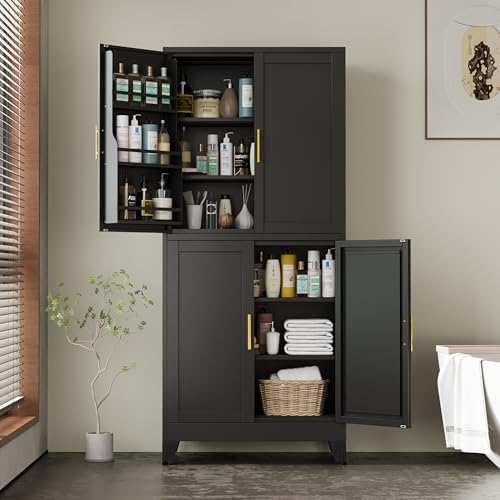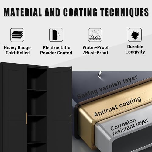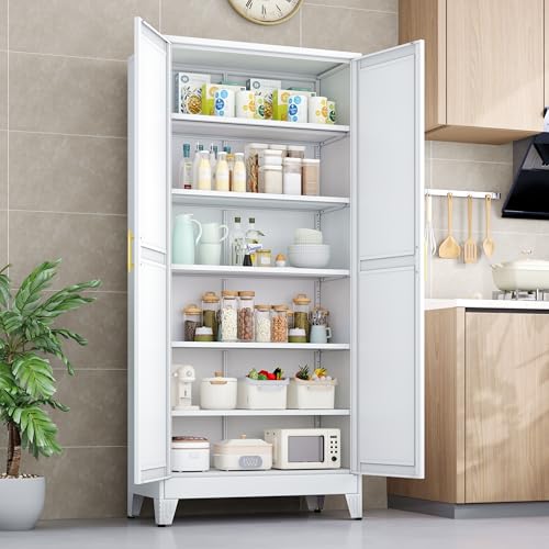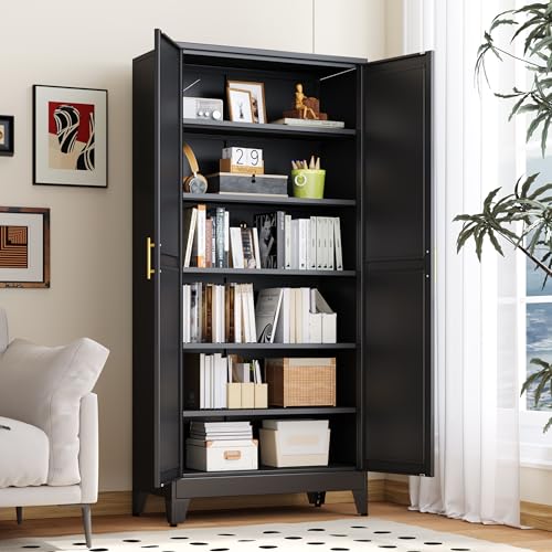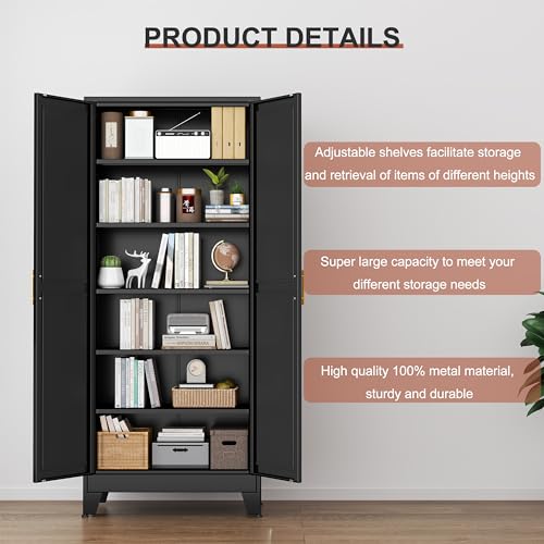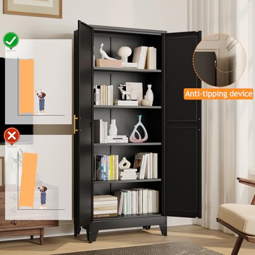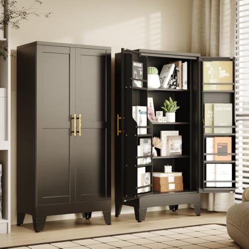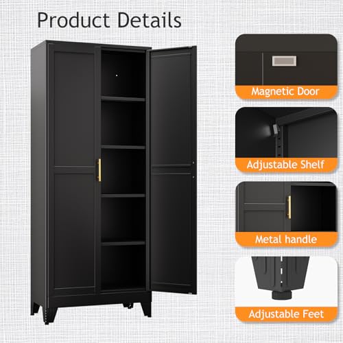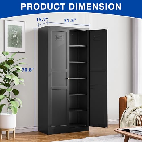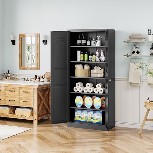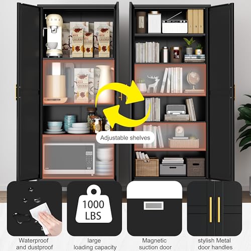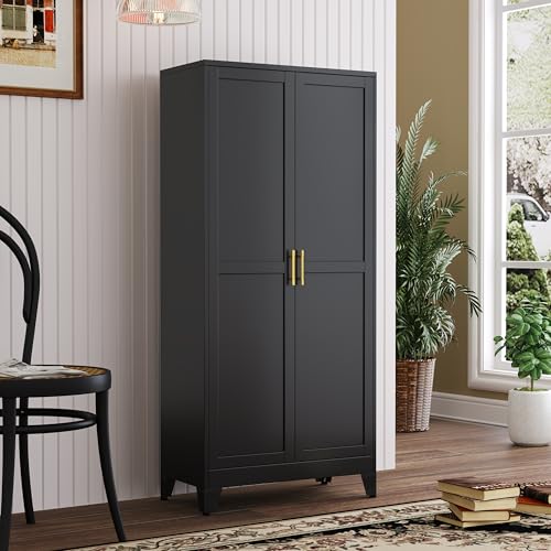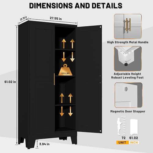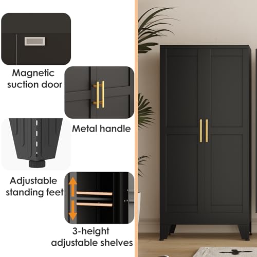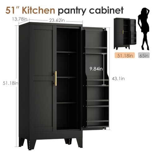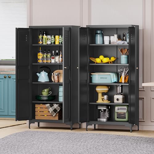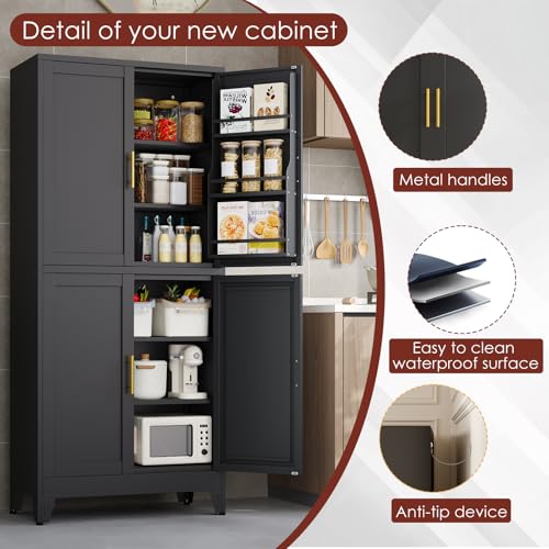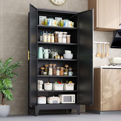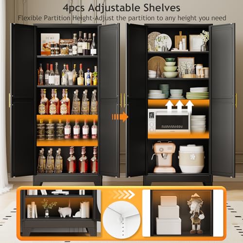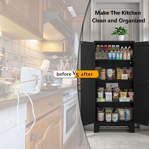 Kitchen Pantry Storage Cabinet with Adjustable Shelves Metal Cupboard Storage Cabinet with Adjustable Feet Pantry Cabinet for Kitchen, Living Room Dinning Room Bathroom. (Black, 61 inch)
