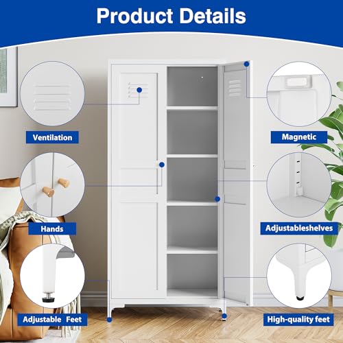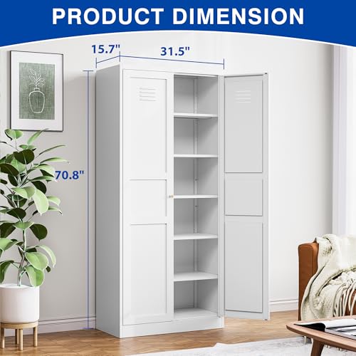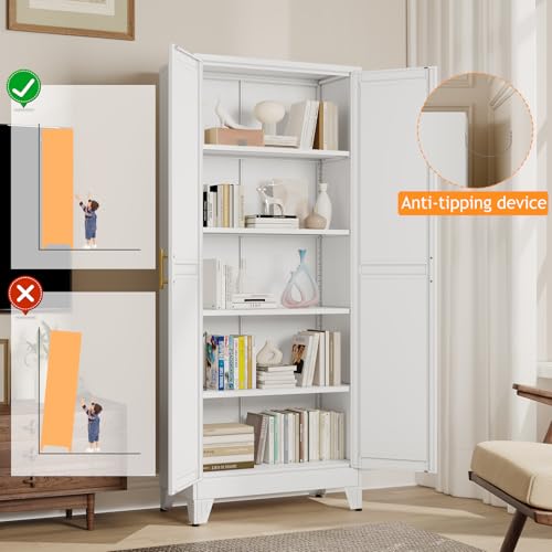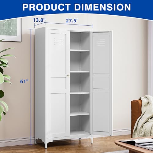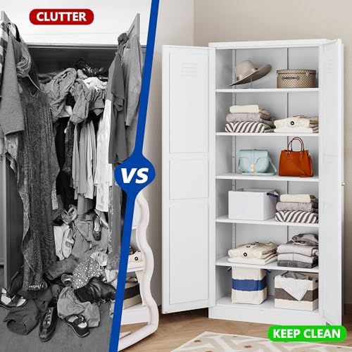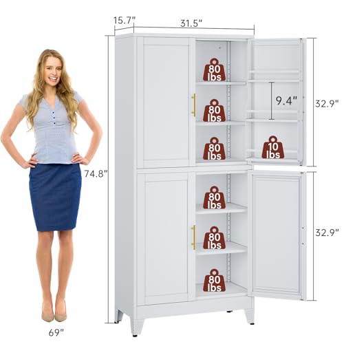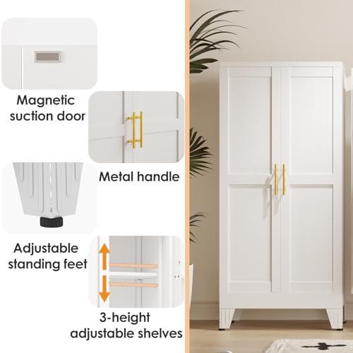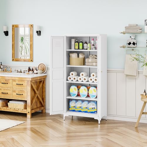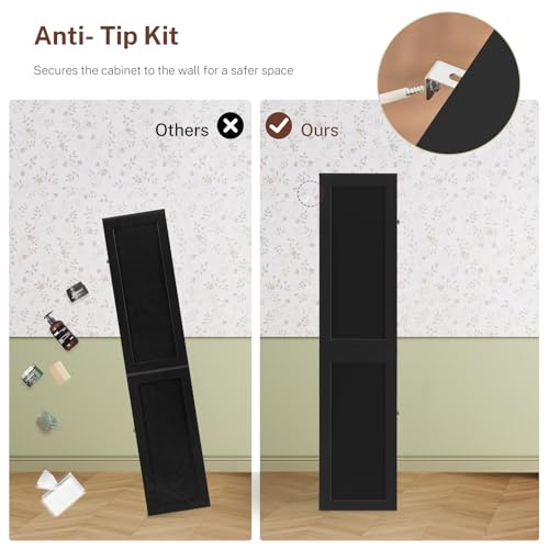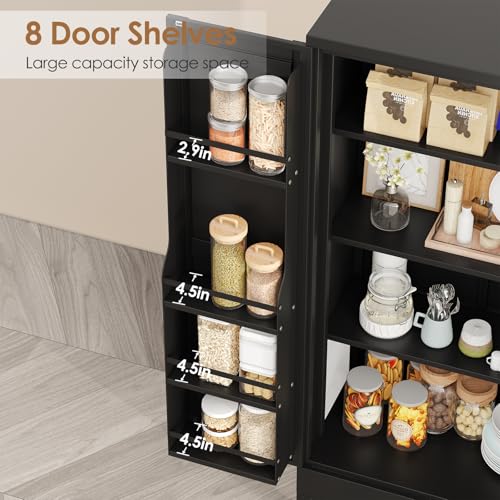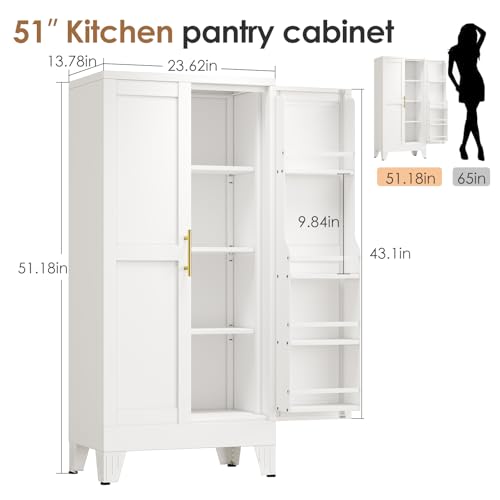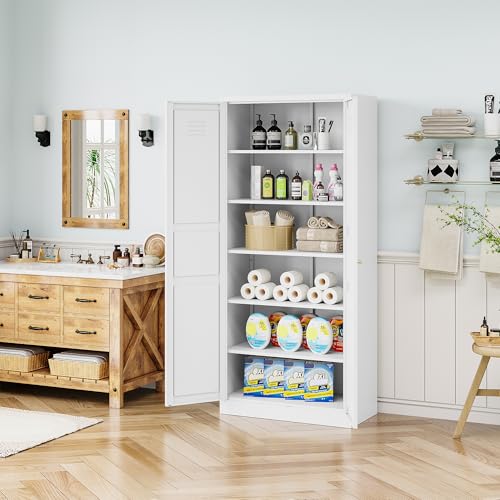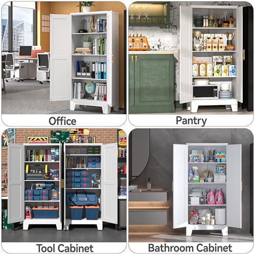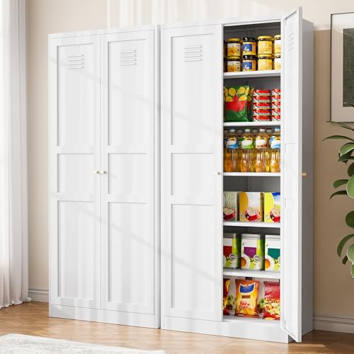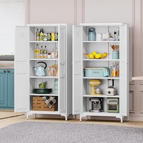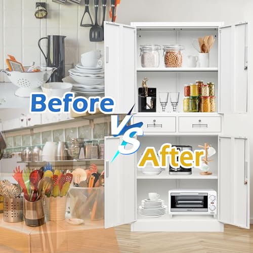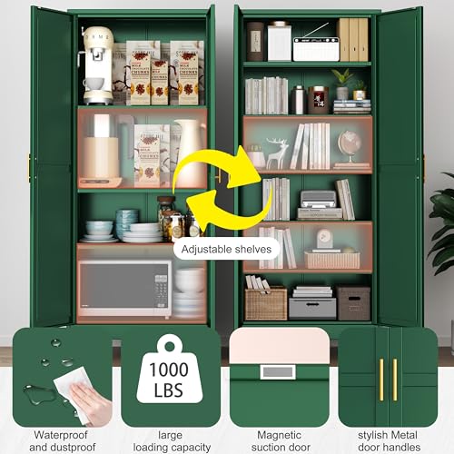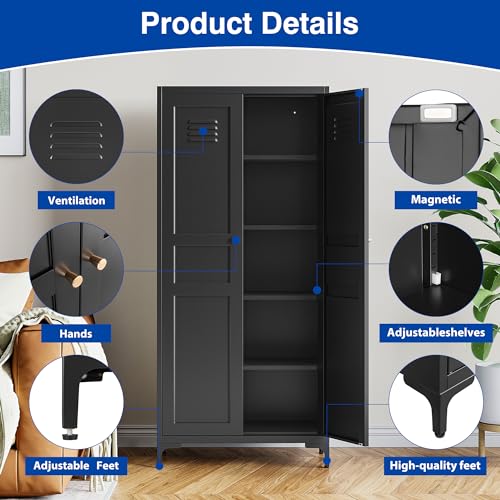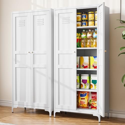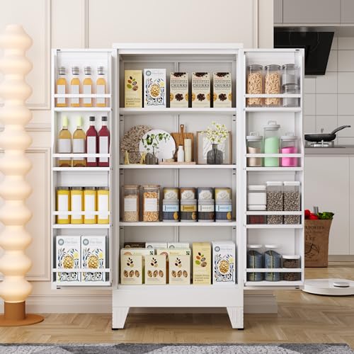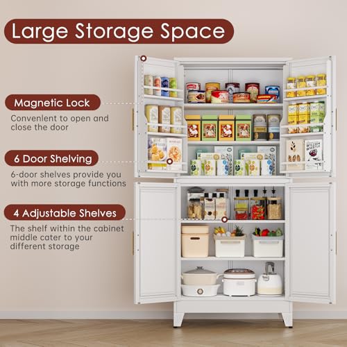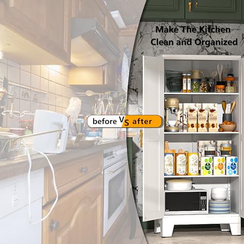 Kitchen Pantry Storage Cabinet with Adjustable Shelves Metal Cupboard Storage Cabinet with Adjustable Feet Pantry Cabinet for Kitchen, Living Room Dinning Room Bathroom. (Black, 61 inch)