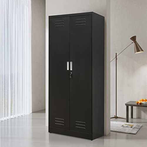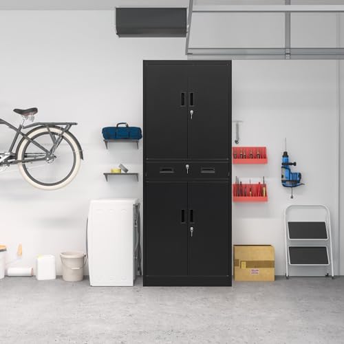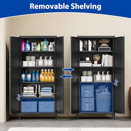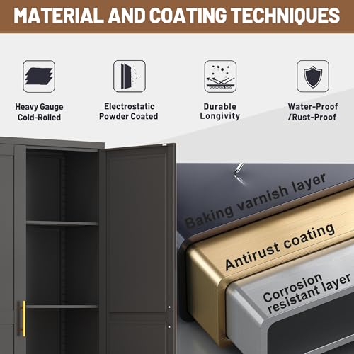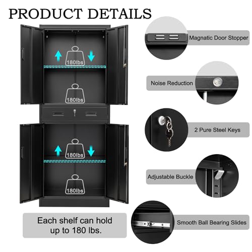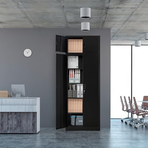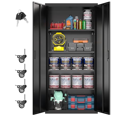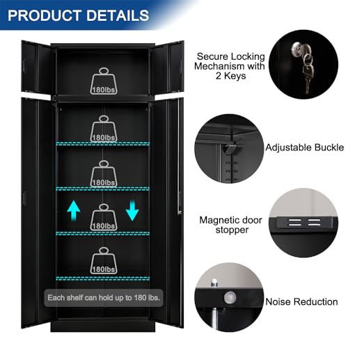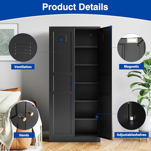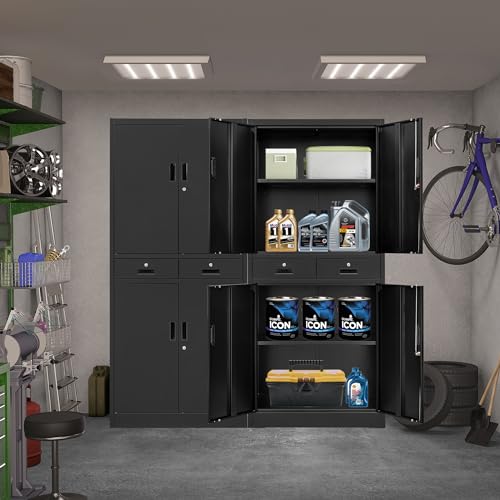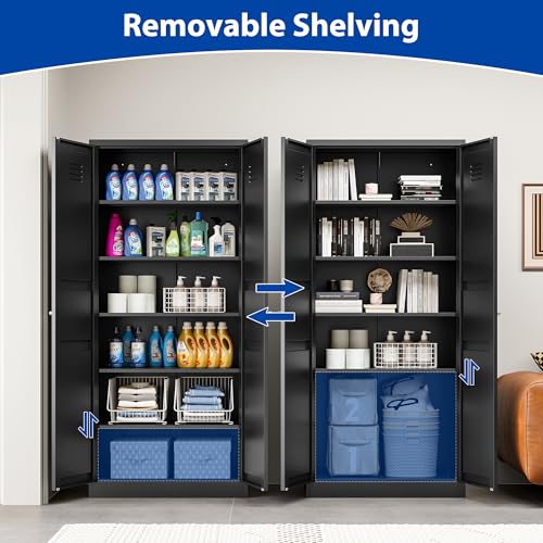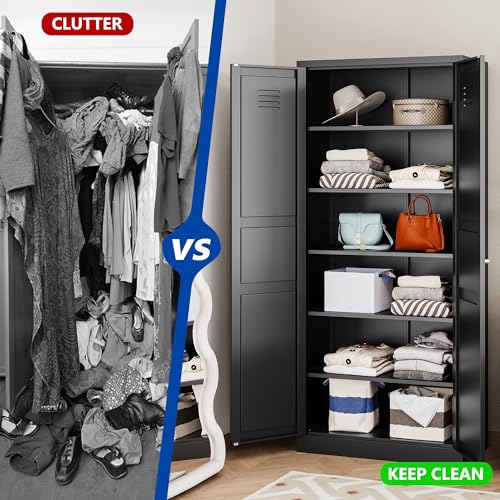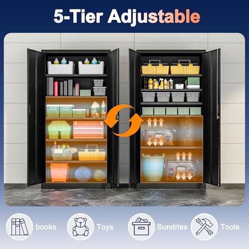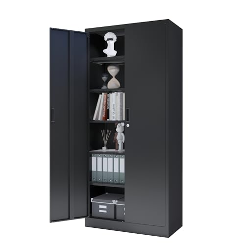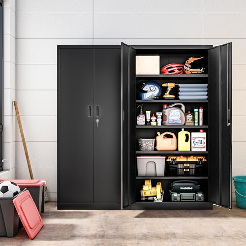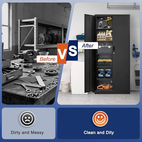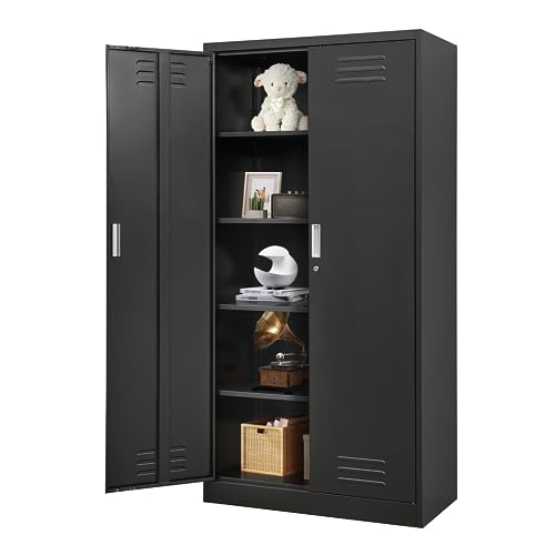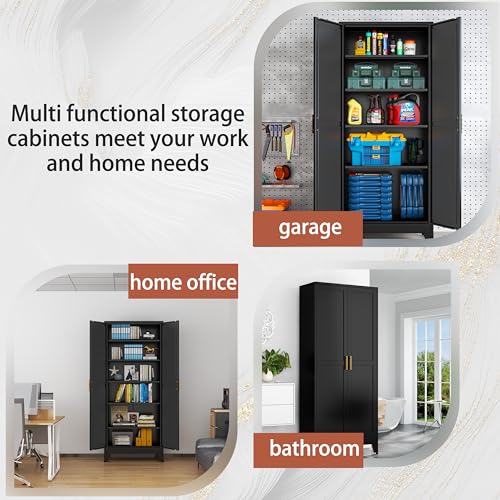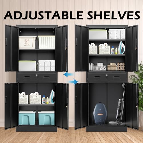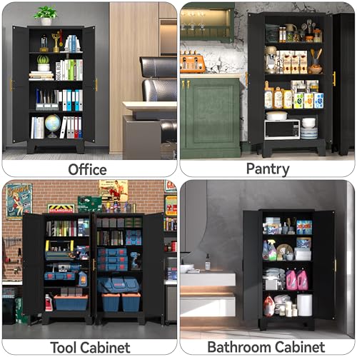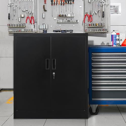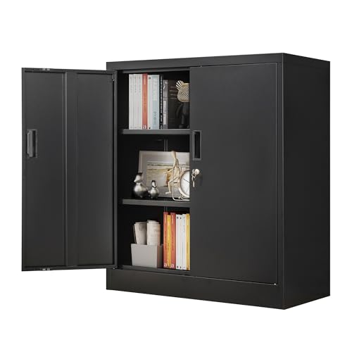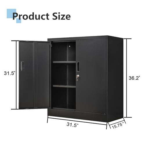 CMY Metal Storage Cabinet, 36" H Locking Storage Cabinet with Adjustable Shelves, Steel Cabinets for Garage, Home, Office, Utility Room-Black