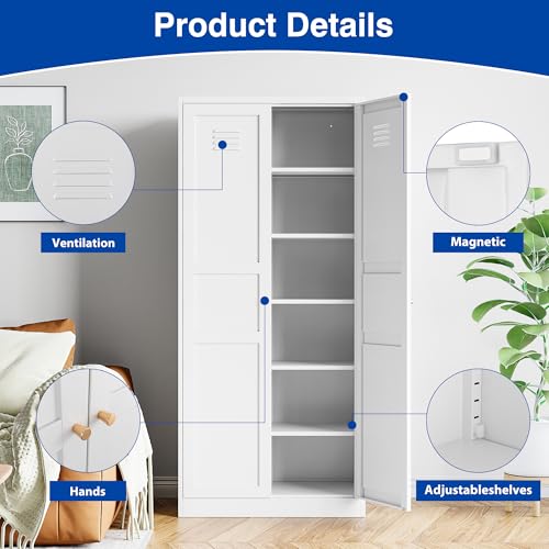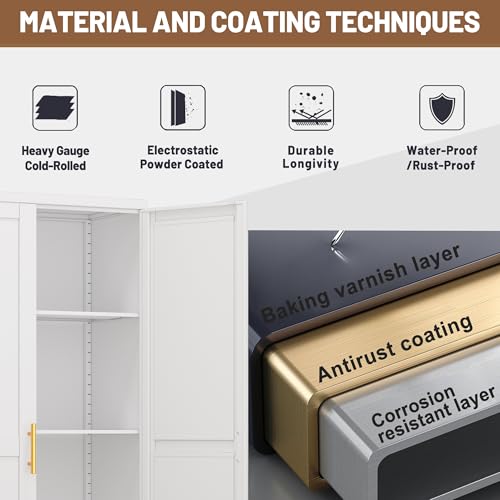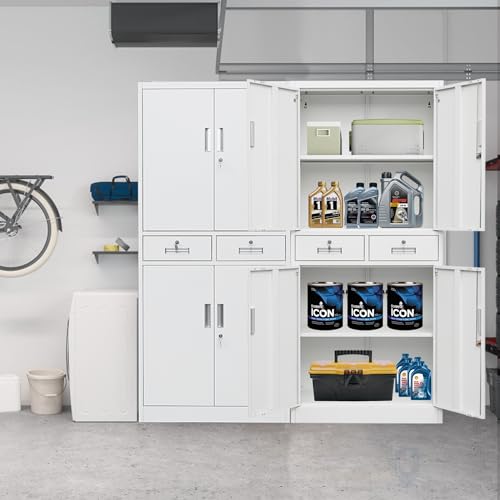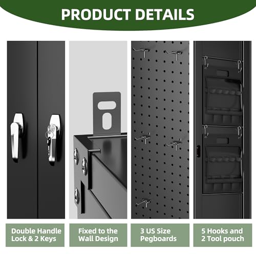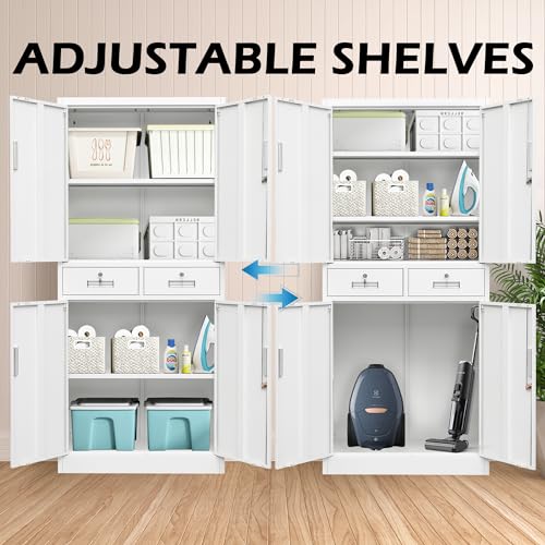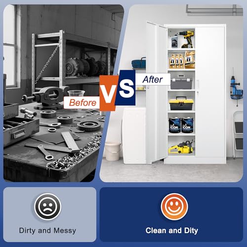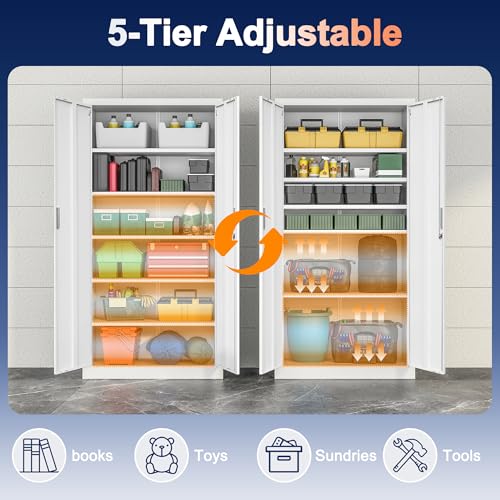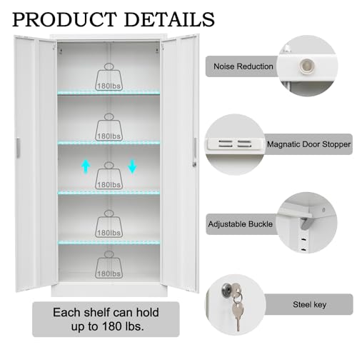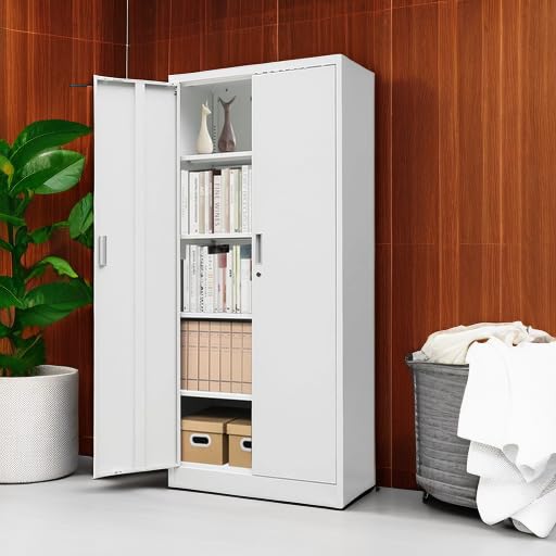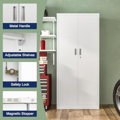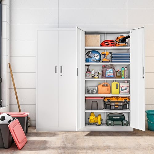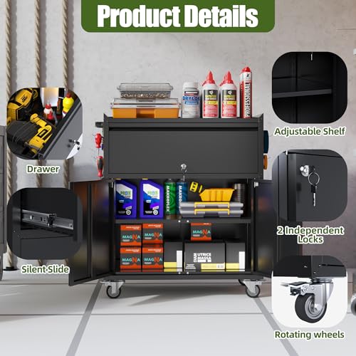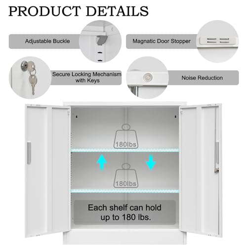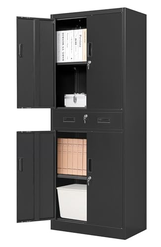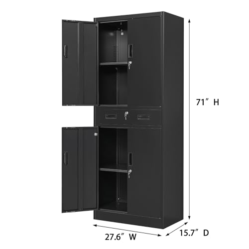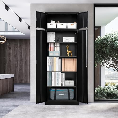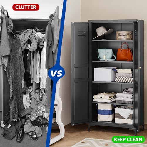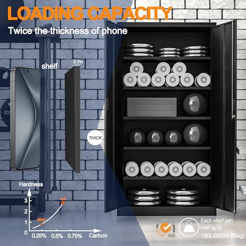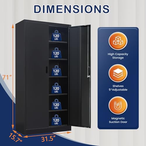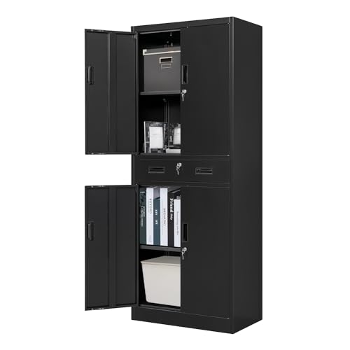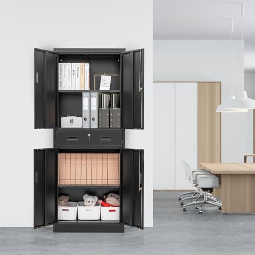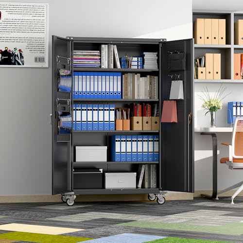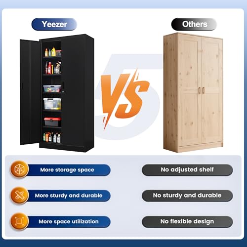 CMY Metal Storage Cabinet, 36" H Locking Storage Cabinet with Adjustable Shelves, Steel Cabinets for Garage, Home, Office, Utility Room-Black