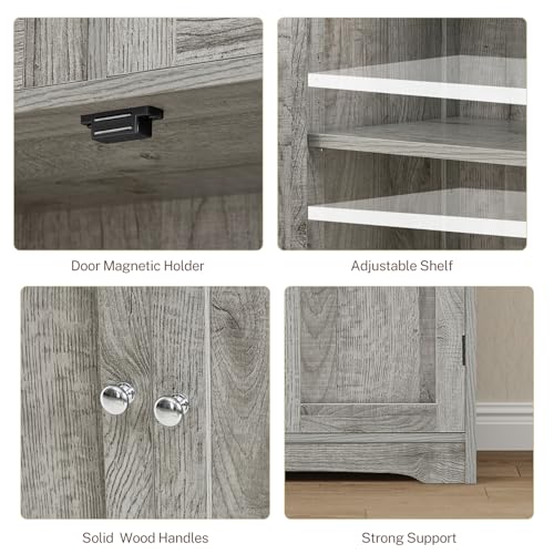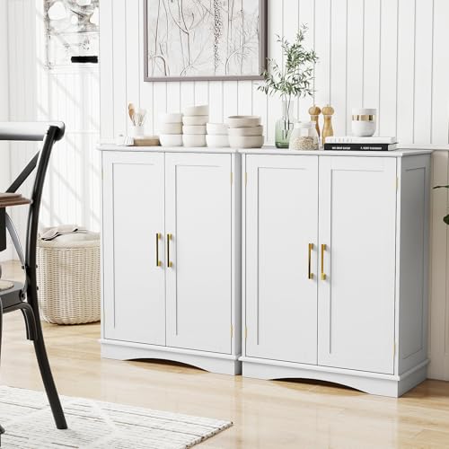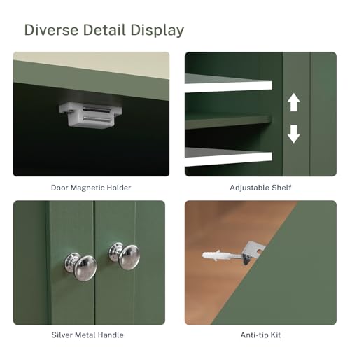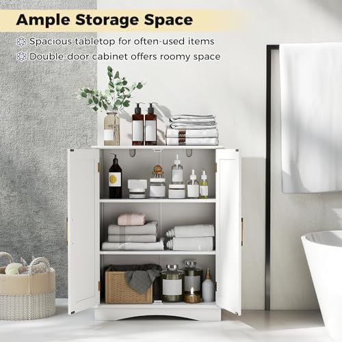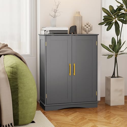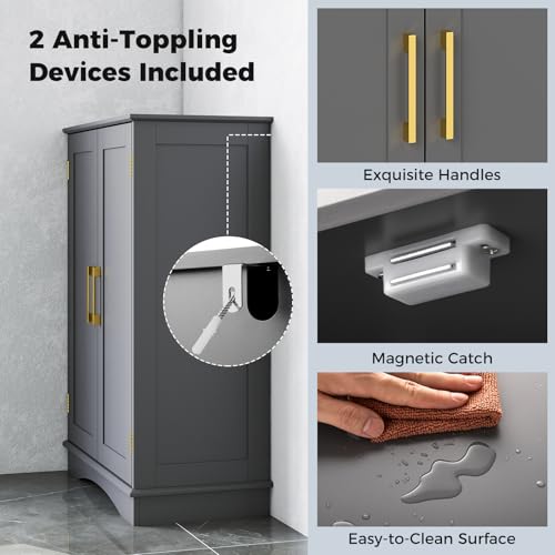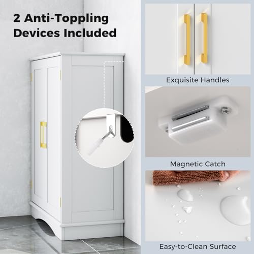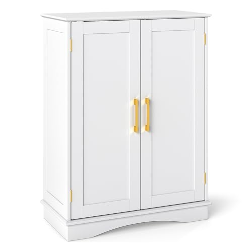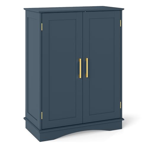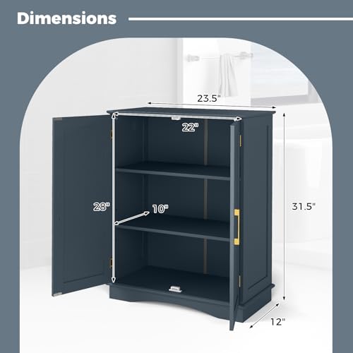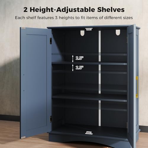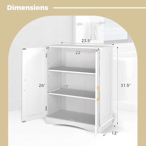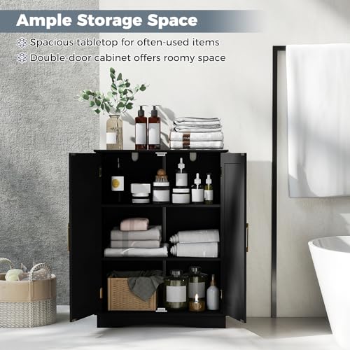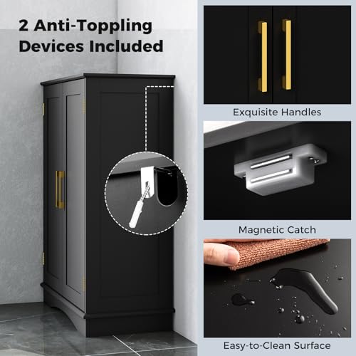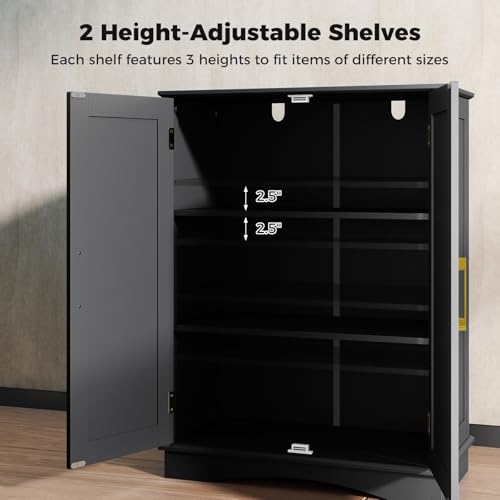 Tangkula Bathroom Floor Storage Cabinet, 31.5" H Freestanding Pantry Cabinet with 2 Doors and Adjustable Shelves, Kitchen Cupboard for Living Room, Dining Room, Bathroom (Black, 31.5" H)