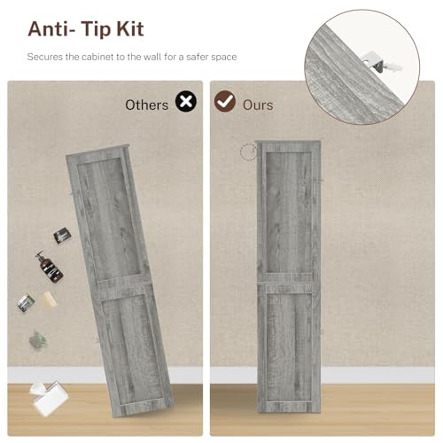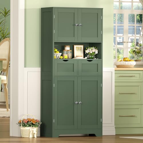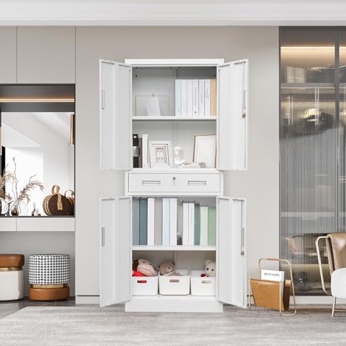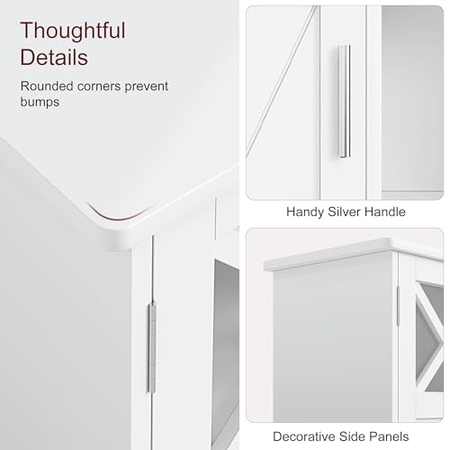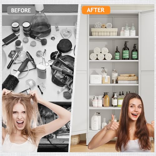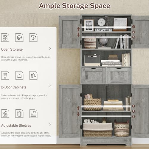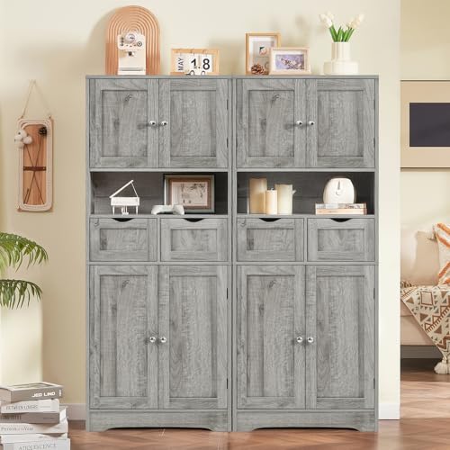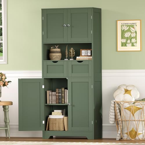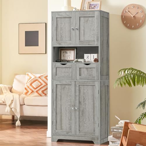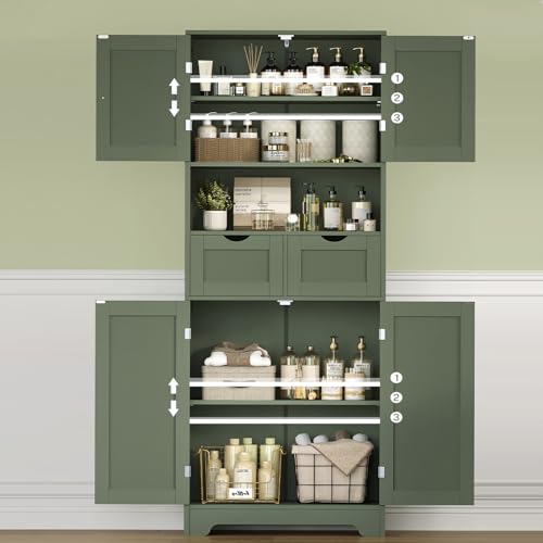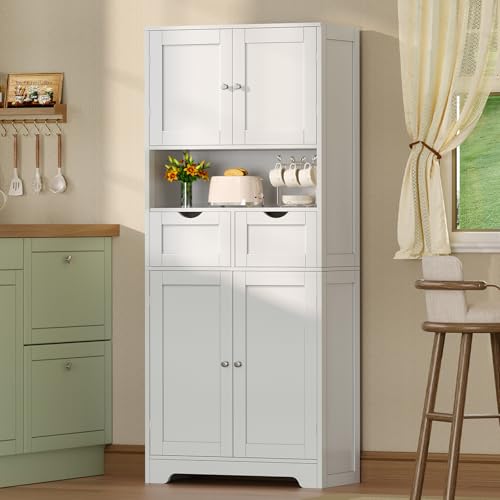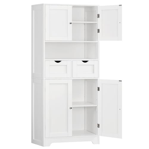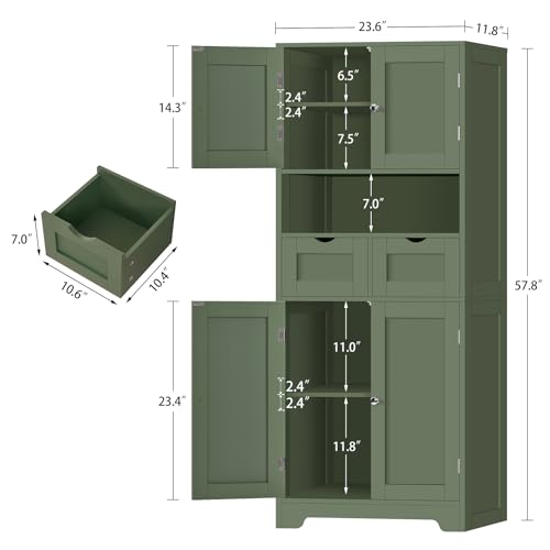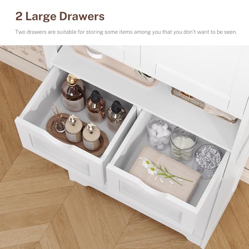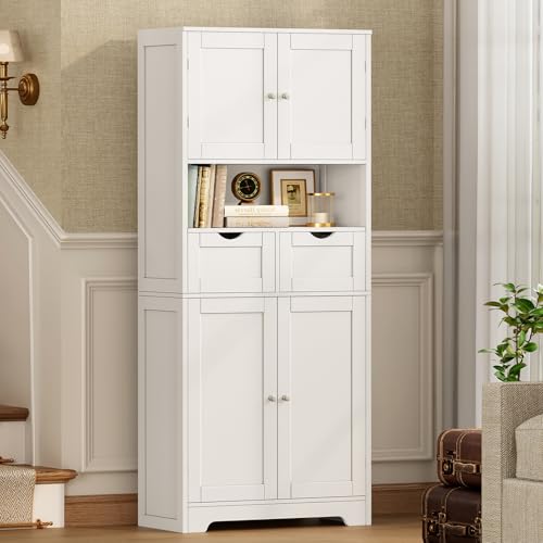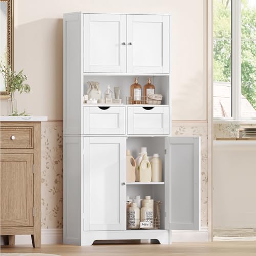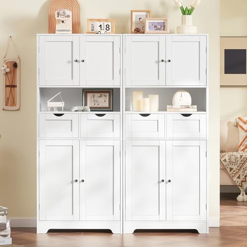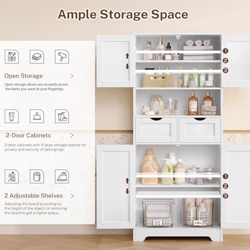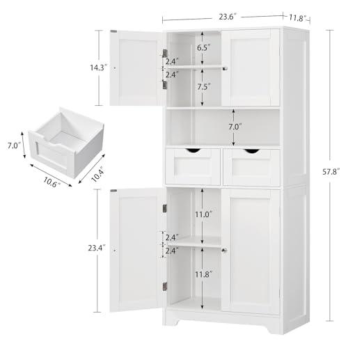 57.8“H Tall Bathroom Cabinet, Storage Cabinet with 2 Drawers & 2 Adjustable Shelves, Bathroom Storage Cabinet with 4 Doors, Tall Cabinet for Living Room, Dining Room, Entryway, White