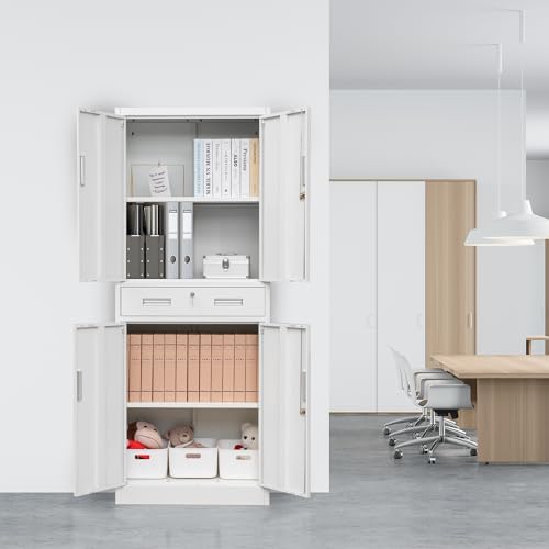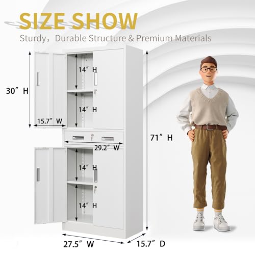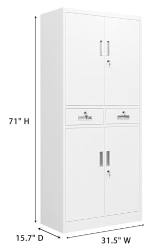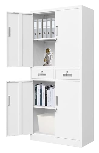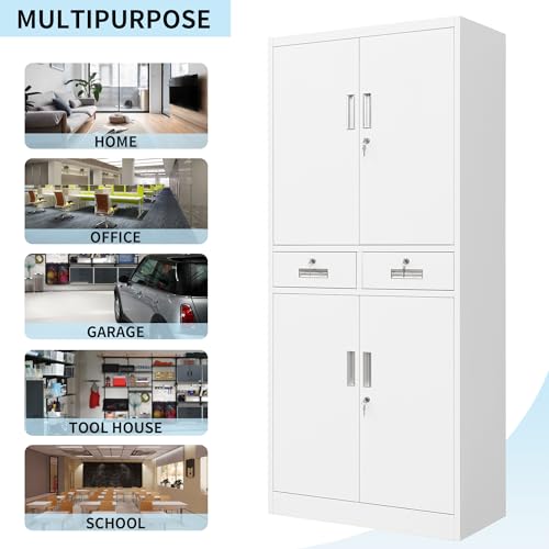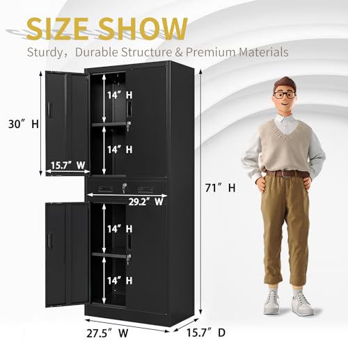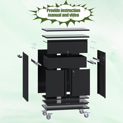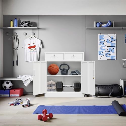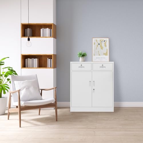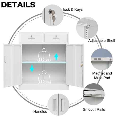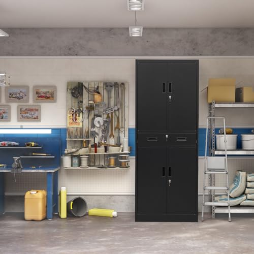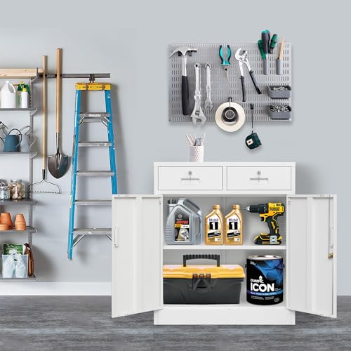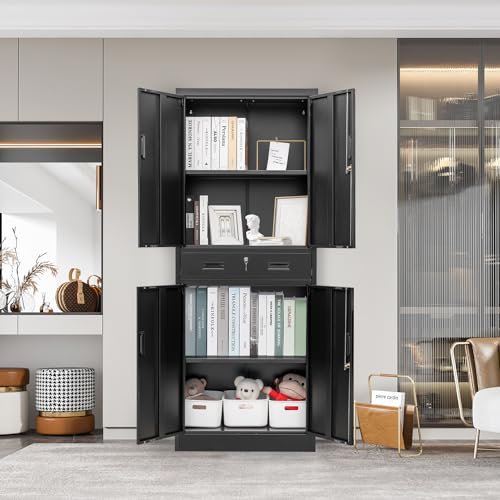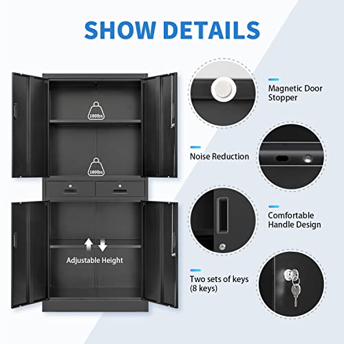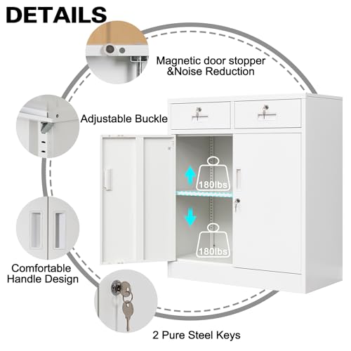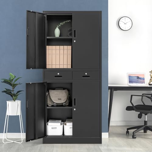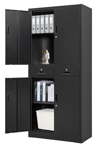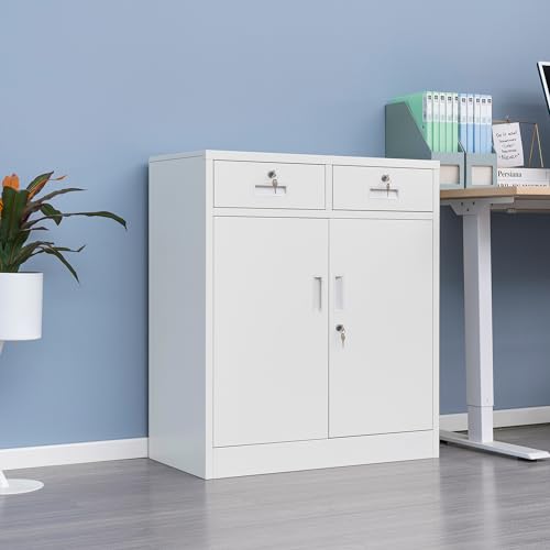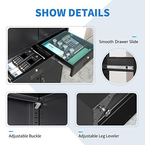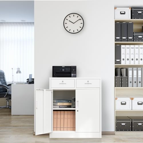 Metal Storage Cabinet with 2 Drawers. Lockable Steel Storage with Doors and Shelve, 37”H Office Cabinet for Home, Garage, Warehouse with Large Space. (Black)