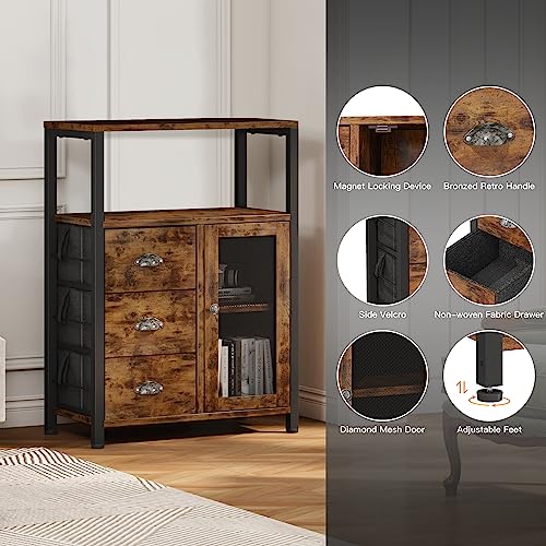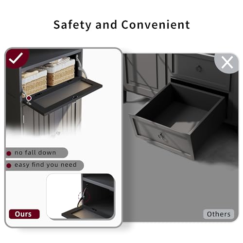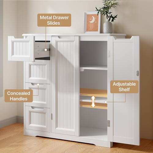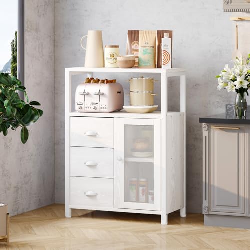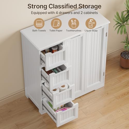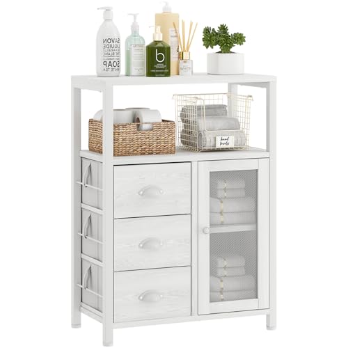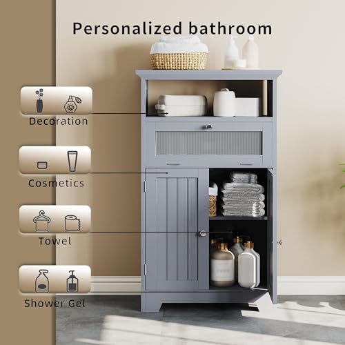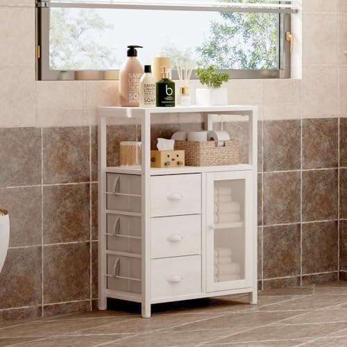 Homeiju Bathroom Floor Storage Cabinet Organizer with 3 Removable Drawers and 1 Door, Industrial Floor Storage Cabinet for Kitchen, Living Room, Bathroom, Home Office