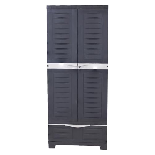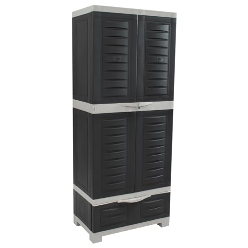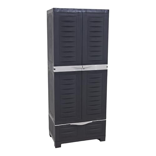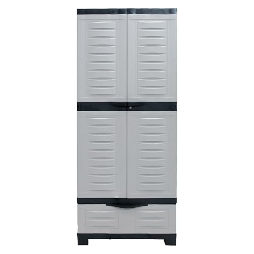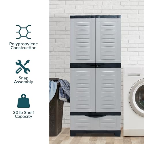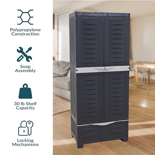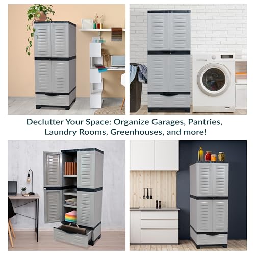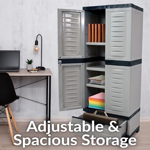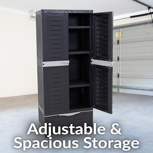 Sunnydaze Lockable Storage Cabinet – Indoor or Outdoor Utility Storage Cabinet with 3 Adjustable Shelves - 57.5" H – Garage, Office, Home, Laundry Room - Shadow