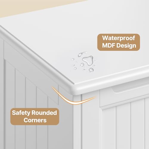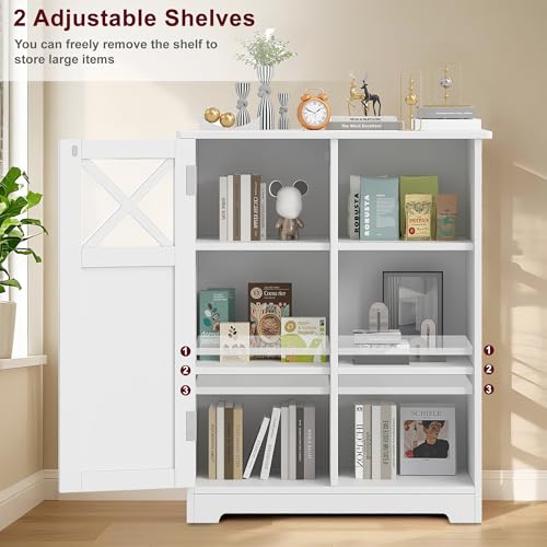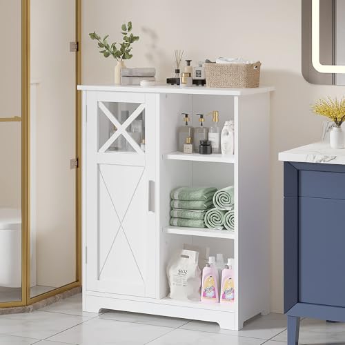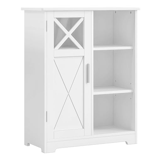 VECELO Bathroom Floor Storage Cabinet with 2 Adjustable Shelves, Freestanding Cabinet with 1 Door & 3 Open Compartments for Bathroom, White