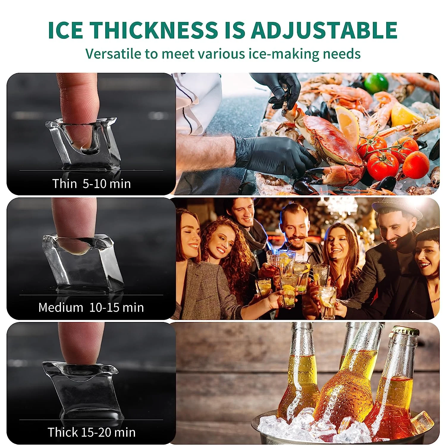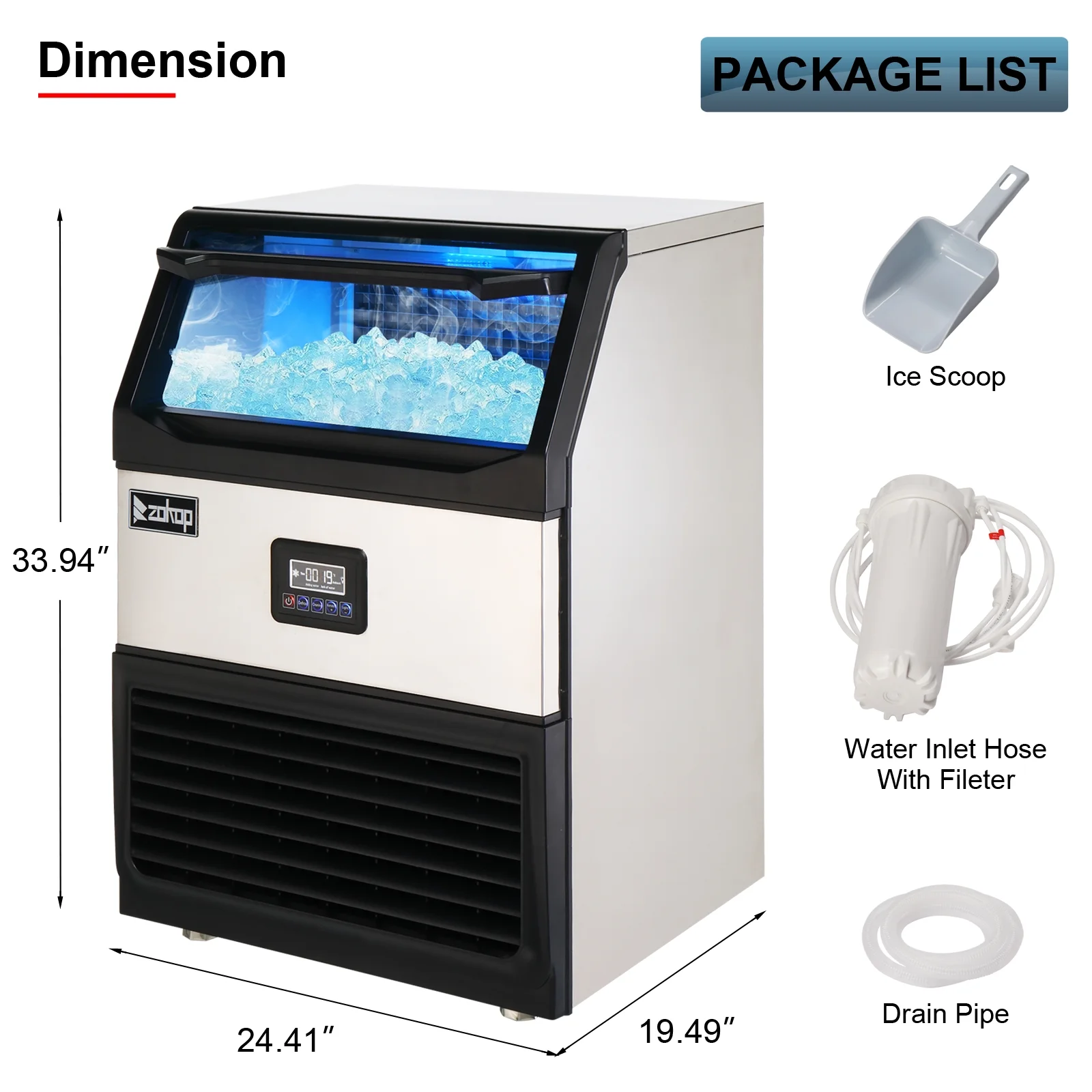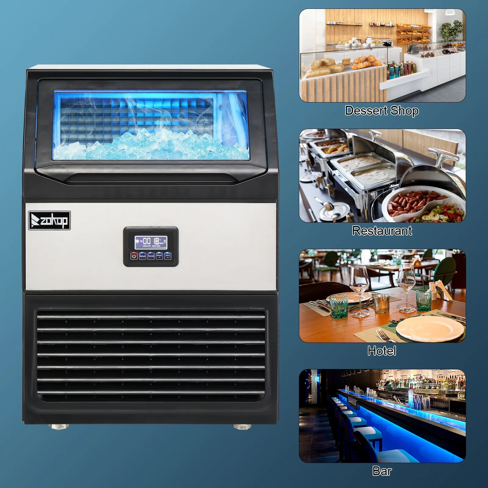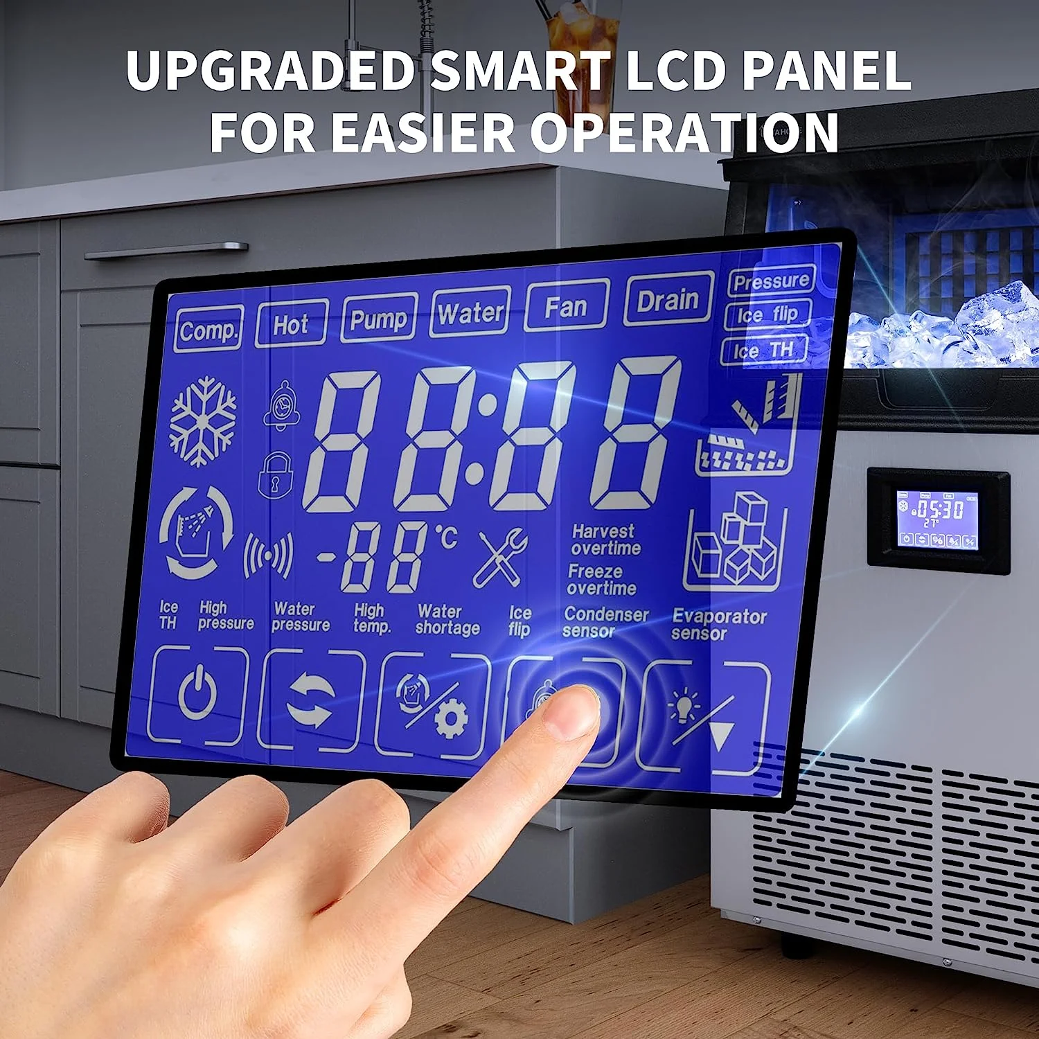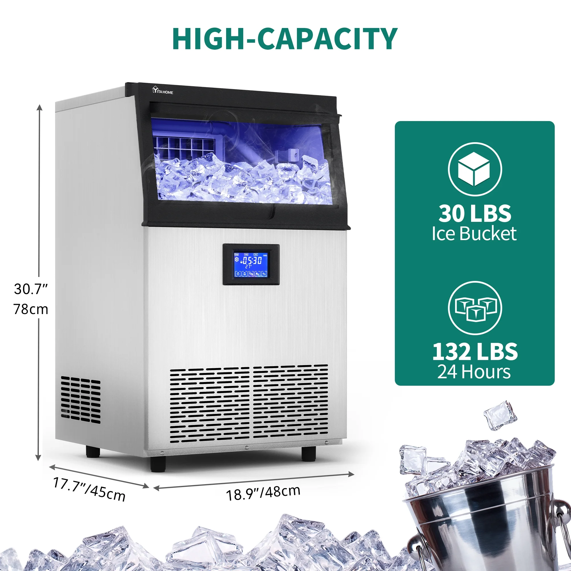 Dextrus Upgraded Commercial Ice Machine, 150LBS/24H Ice Maker with 33LBS Storage Bin, LCD Panel with Blue Light & Stainless Steel Scoop for Restaurant, Home, Bars, Coffee Shop(55PCS)