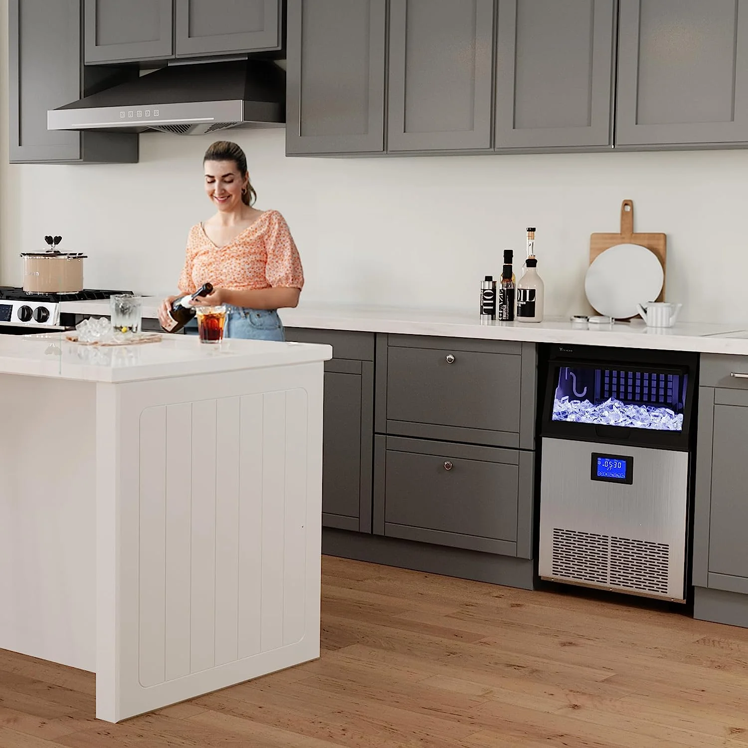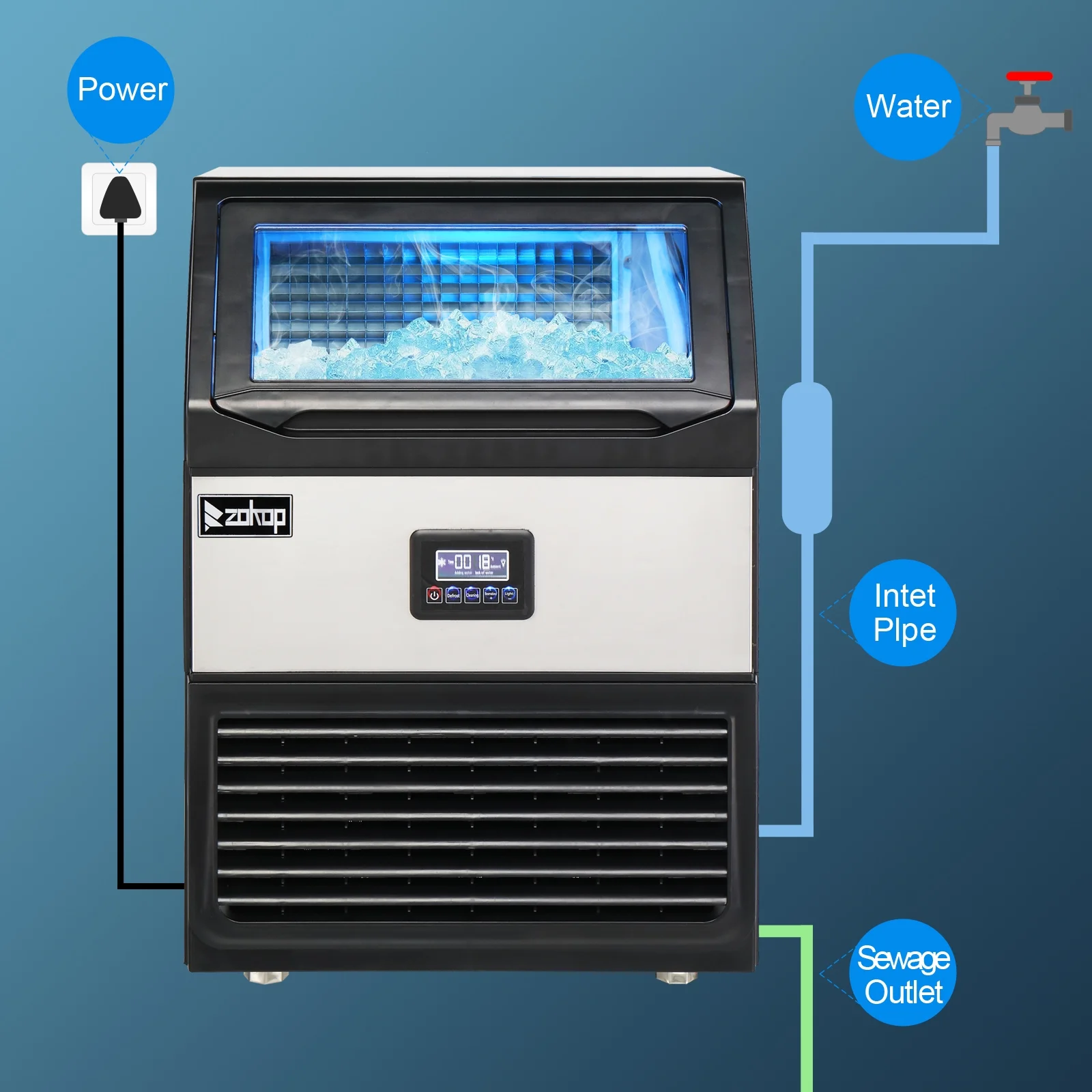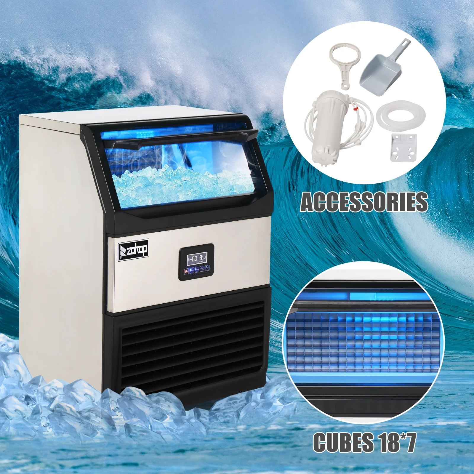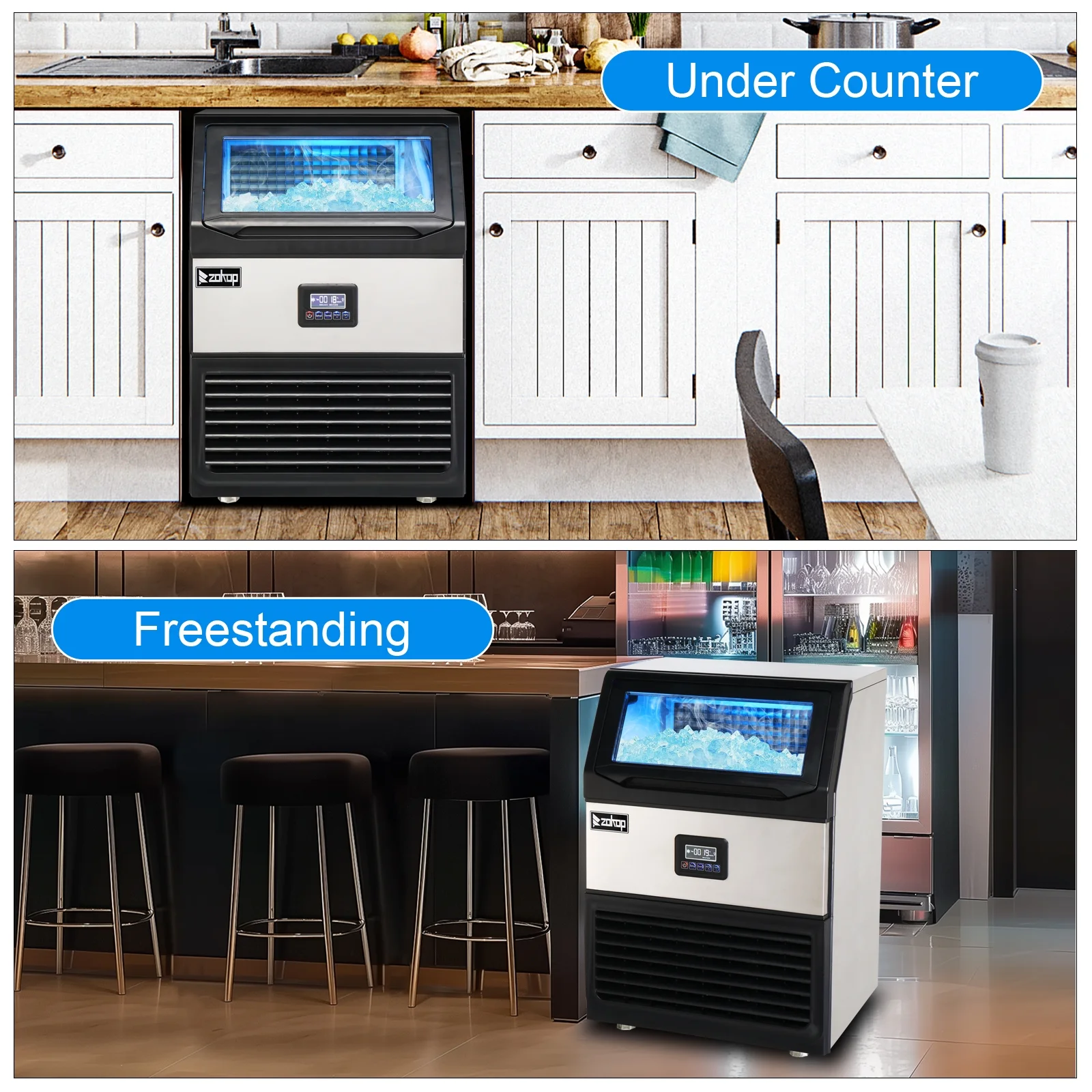 Ubesgoo Commercial Stainless Steel Freestanding Ice Maker Cube Machine, 120lbs/24H for Home/Kitchen/Office/Restaurant/Bar/Coffee Shop