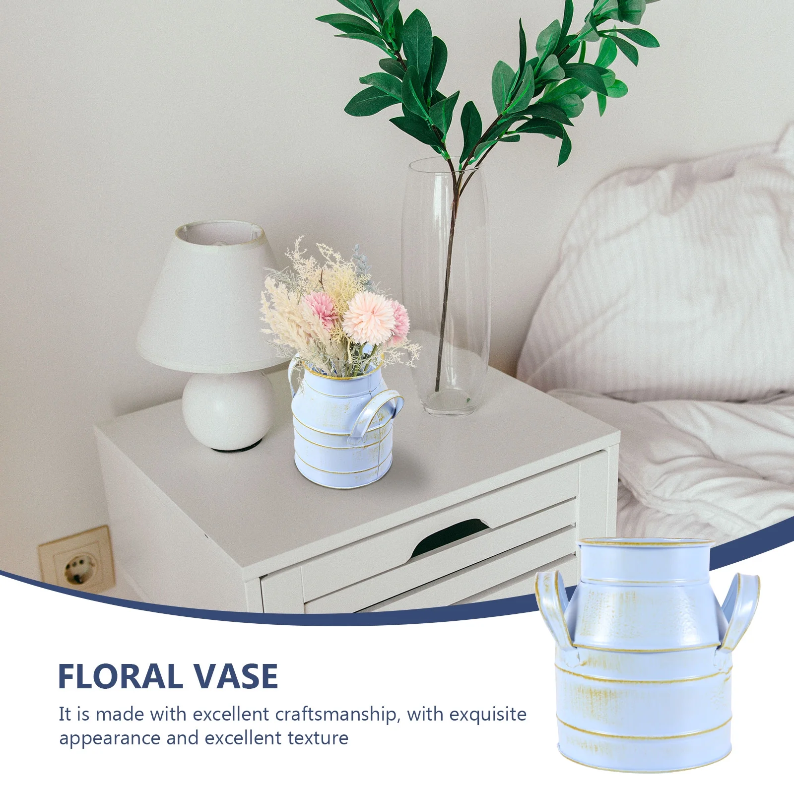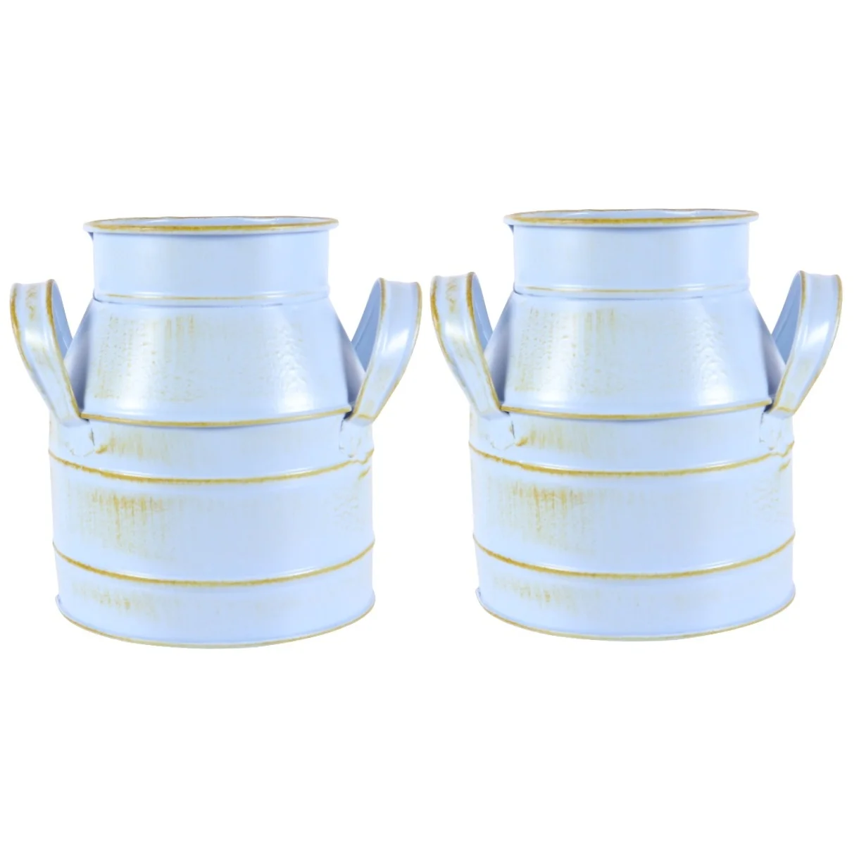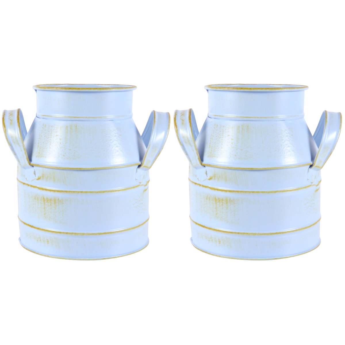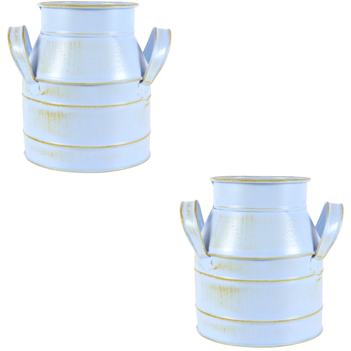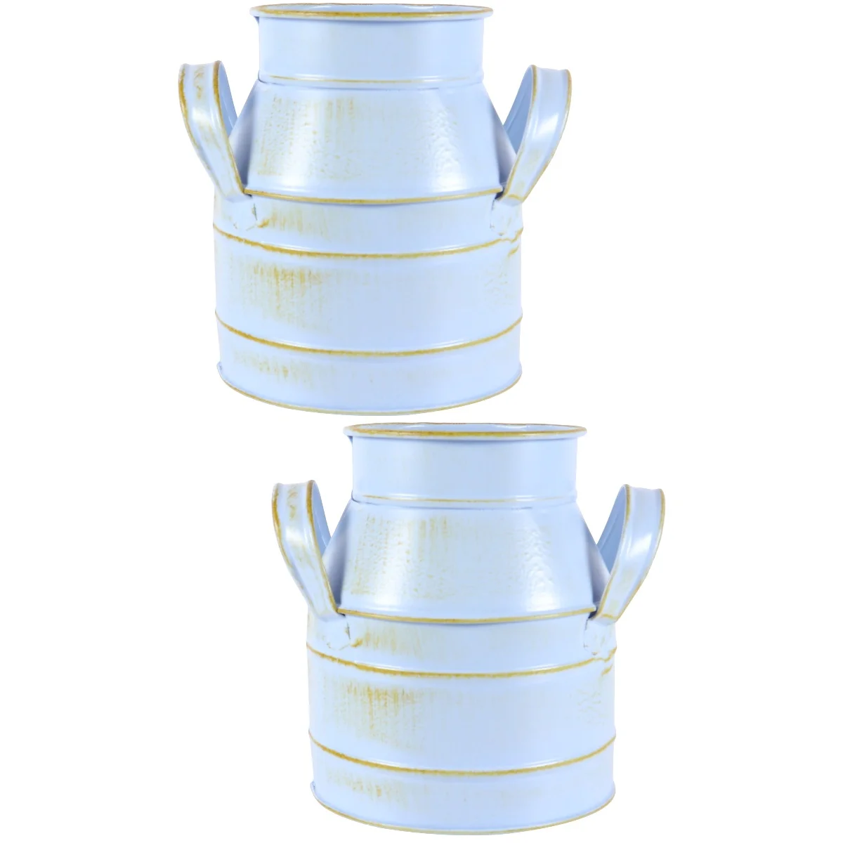 2pcs Vintage Flower Bucket Galvanized Jug Vase Farmhouse Flowers Vase Rustic Flower Bucket Vase Bucket Home Decoration ( Light blue )