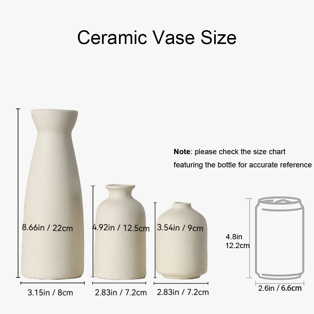 Set of 3 Beige Minimalist Ceramic Vases - Elegant Flower Vase - Perfect For Home Decor & Banquet Decor