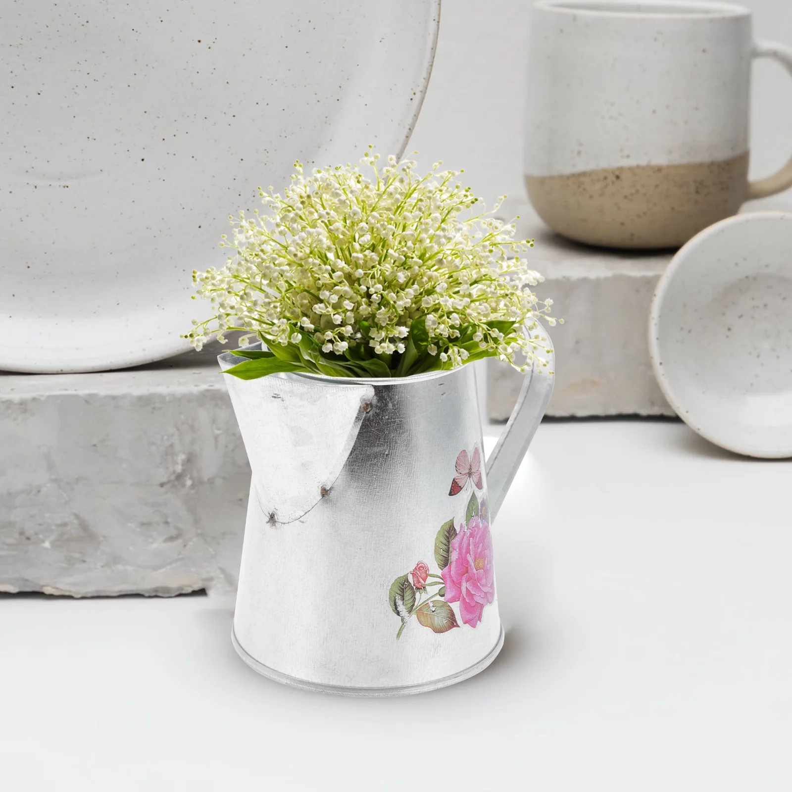 Rustic Metal Pitcher Vase Iron Vase Flower Vase Bucket for Home Decor Random Pattern