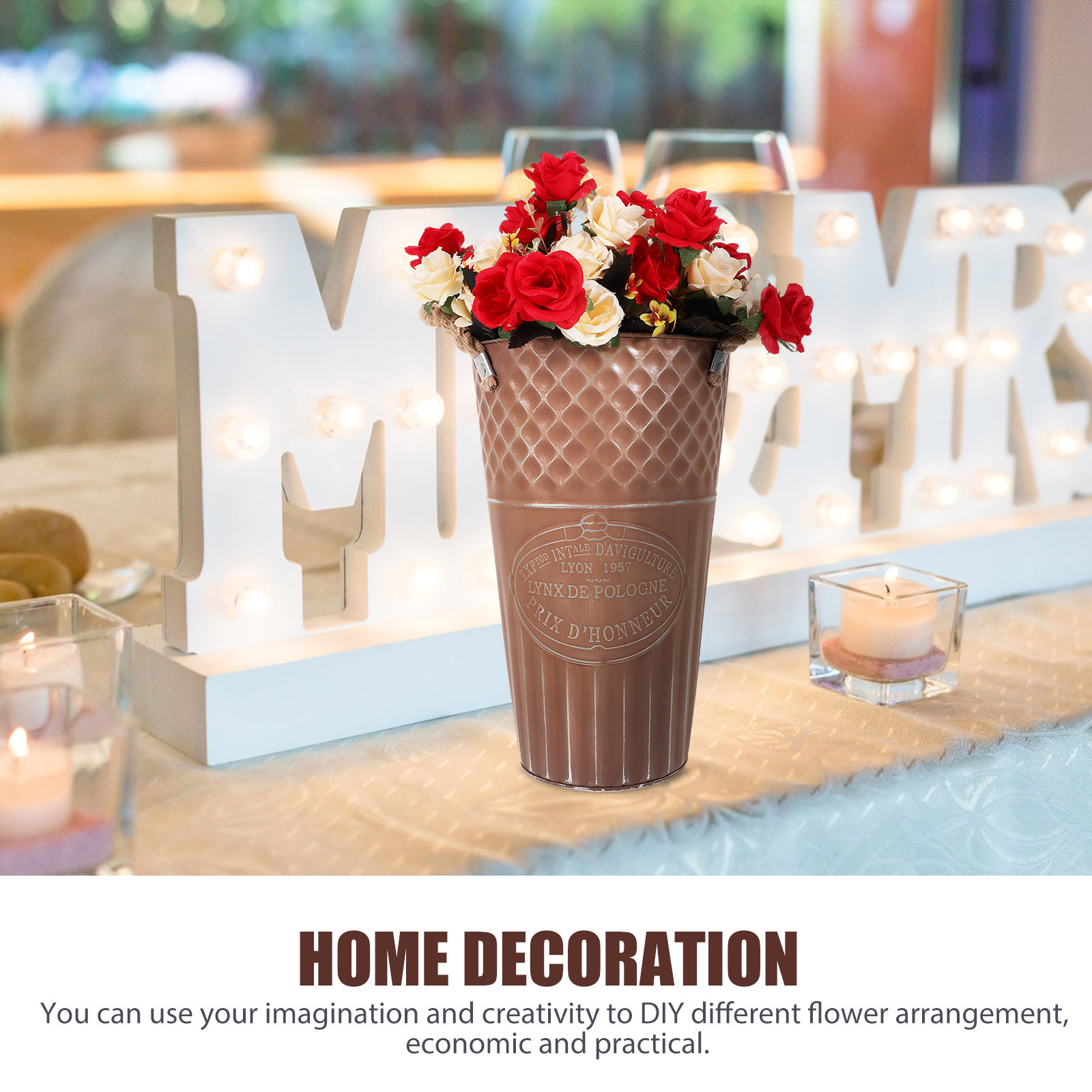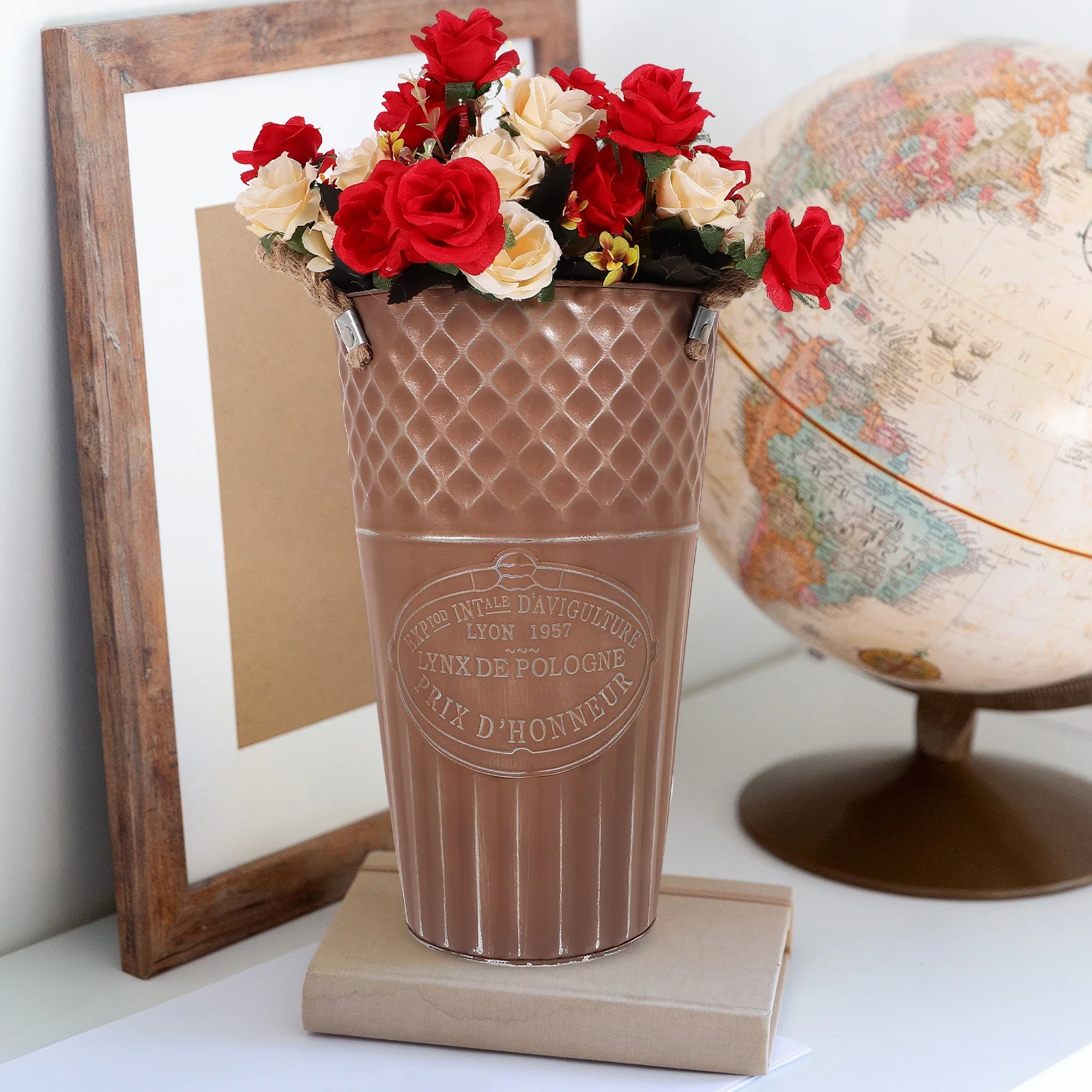 Decoration Retro Old Flower Bucket Practical Vase Coffee Color