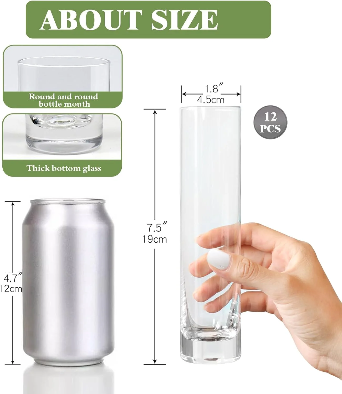 Glass Cylinder Vases, 7.5", Clear, Set of 12