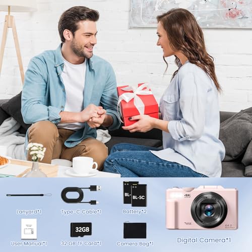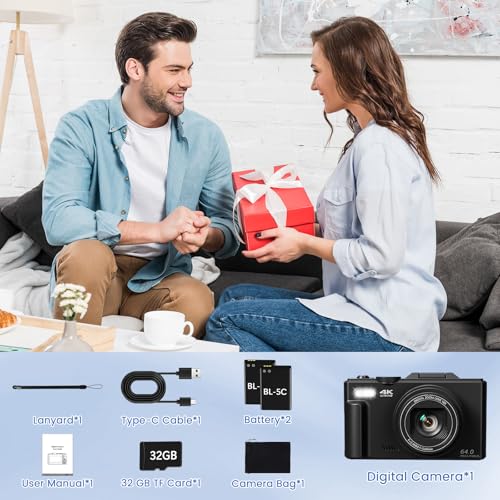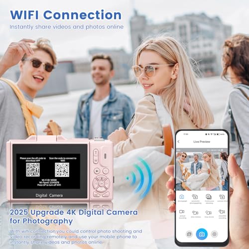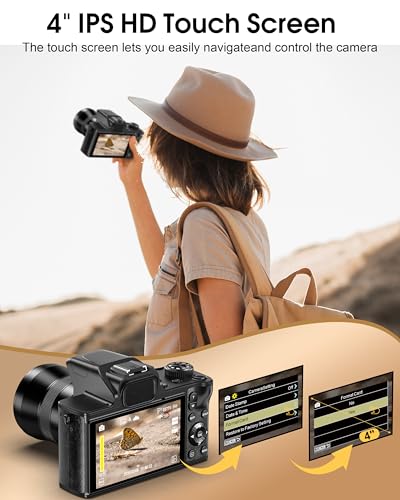 5K Digital Camera for Photography - 80MP WiFi Vlogging Camera for YouTube One-Touch Macro - UHD Autofocus Video Cameras with 4.0" Touch Screen, 18X Digital Zoom, Lens Hood, 3000mAH Battery, 32GB Card