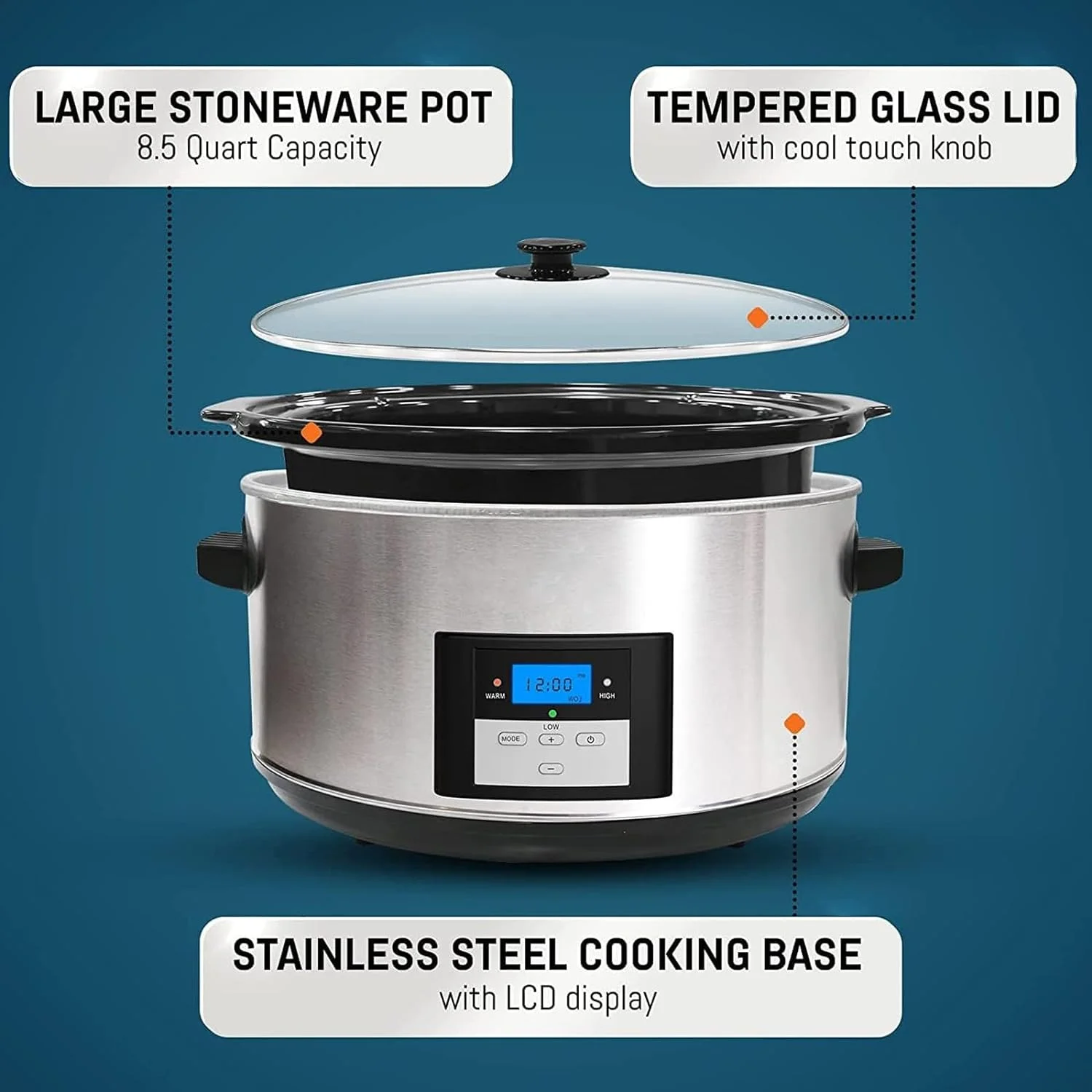 8.5-Quart Digital Programmable Slow Cooker - Adjustable Temp, Entrees, Stews & Dips