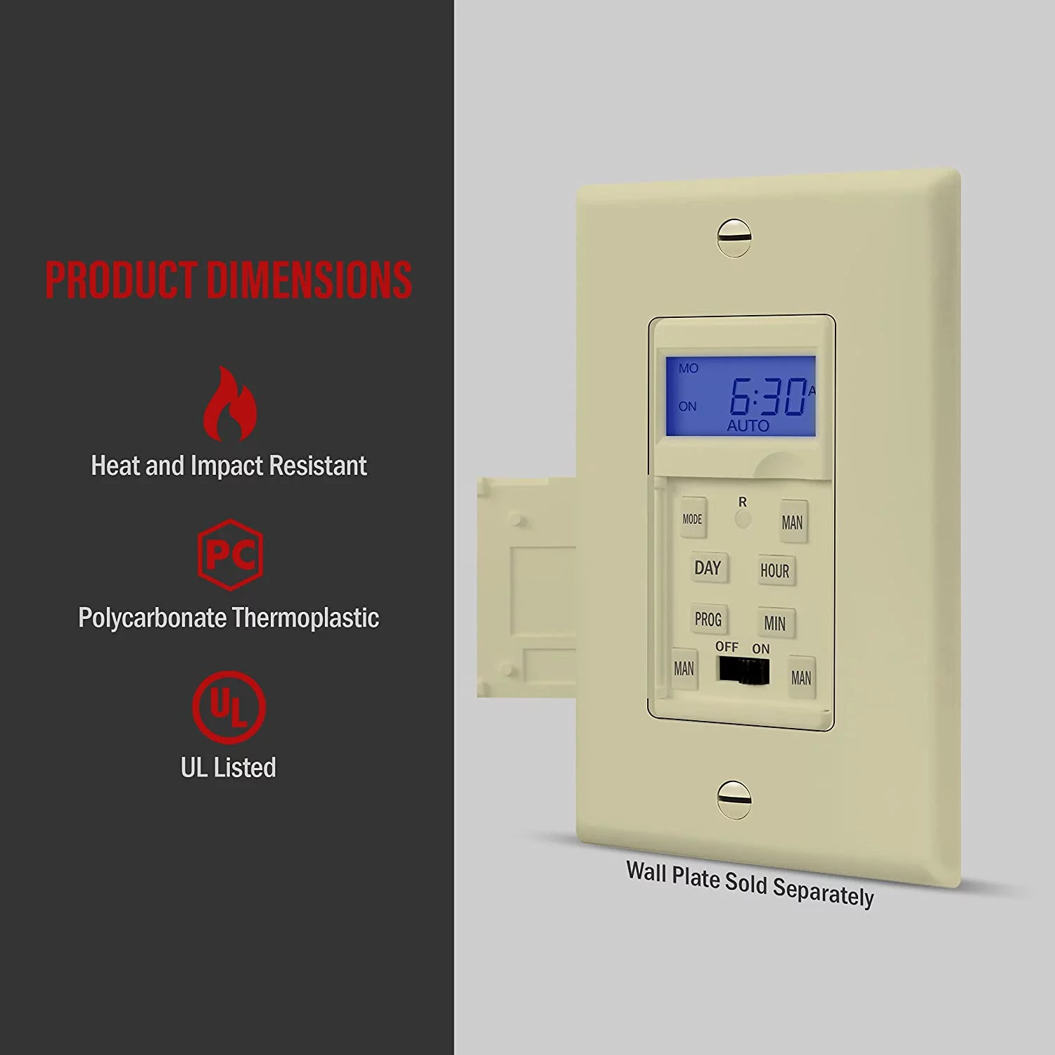 ENERLITES Digital in-Wall Programmable Timer Switch for Lights, Fans, and Motors, Single Pole, Neutral Wire Required, 7-Day 18 ON/Off Timer Settings, Blue Backlight, HET01, Ivory