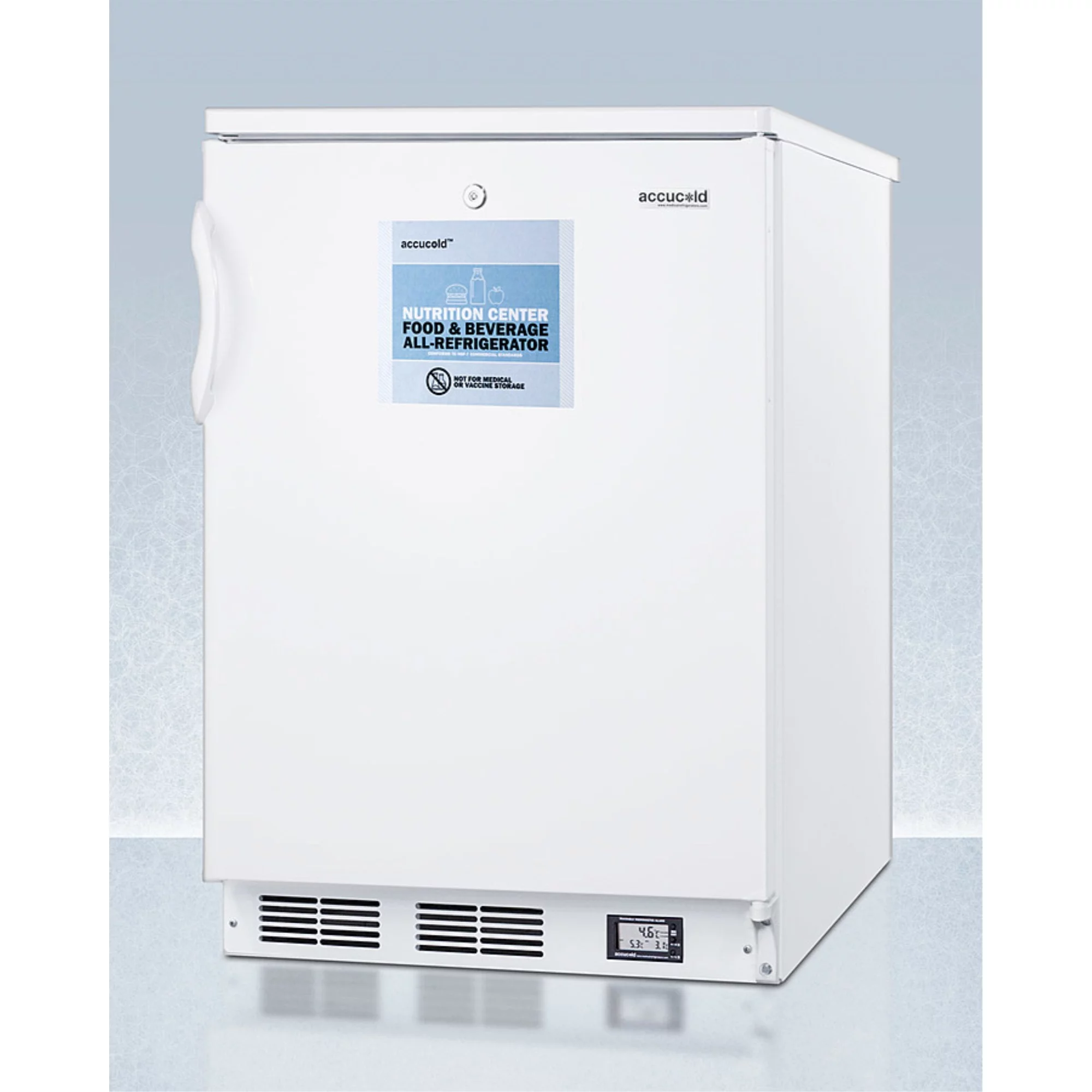 Commercially approved Nutrition Center series all-refrigerator in white for built-in or freestanding use, with front lock and digital temperature display