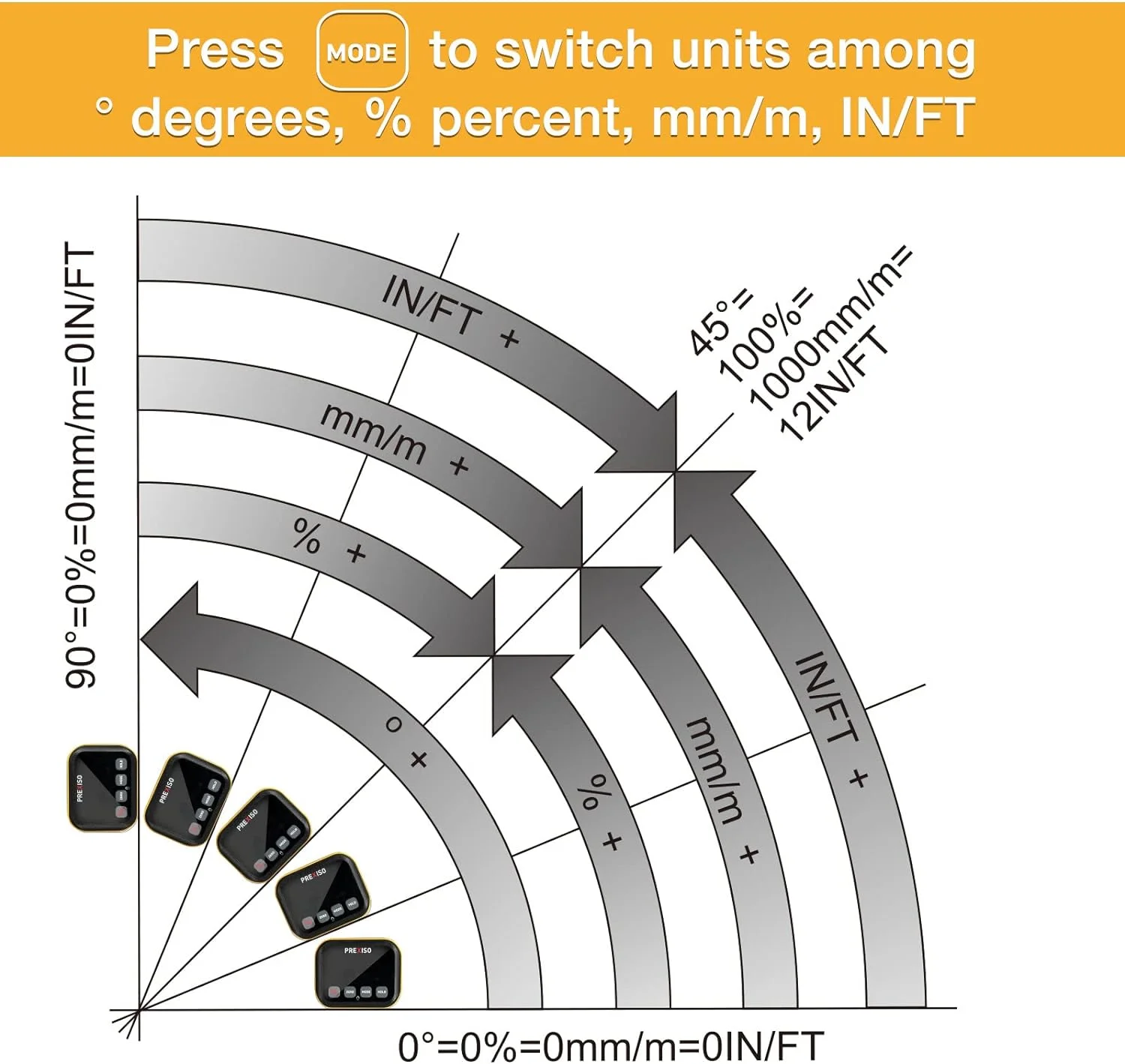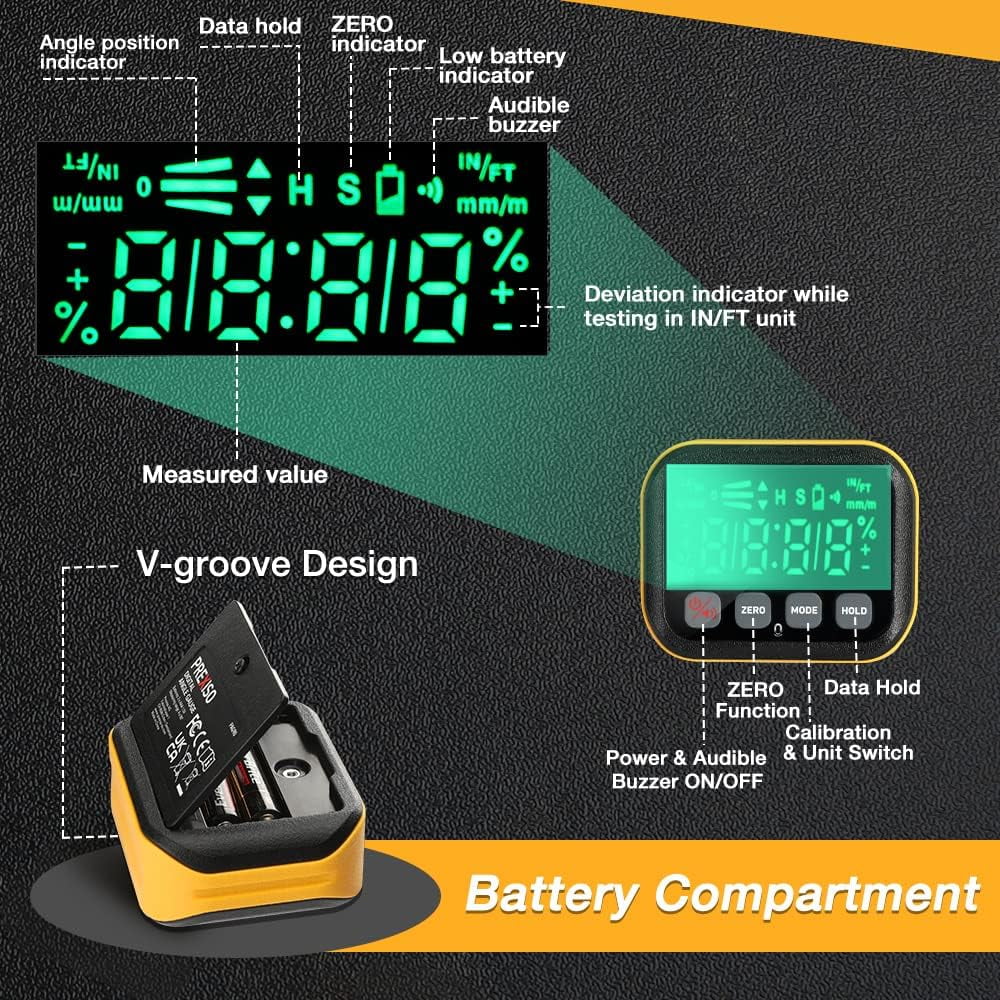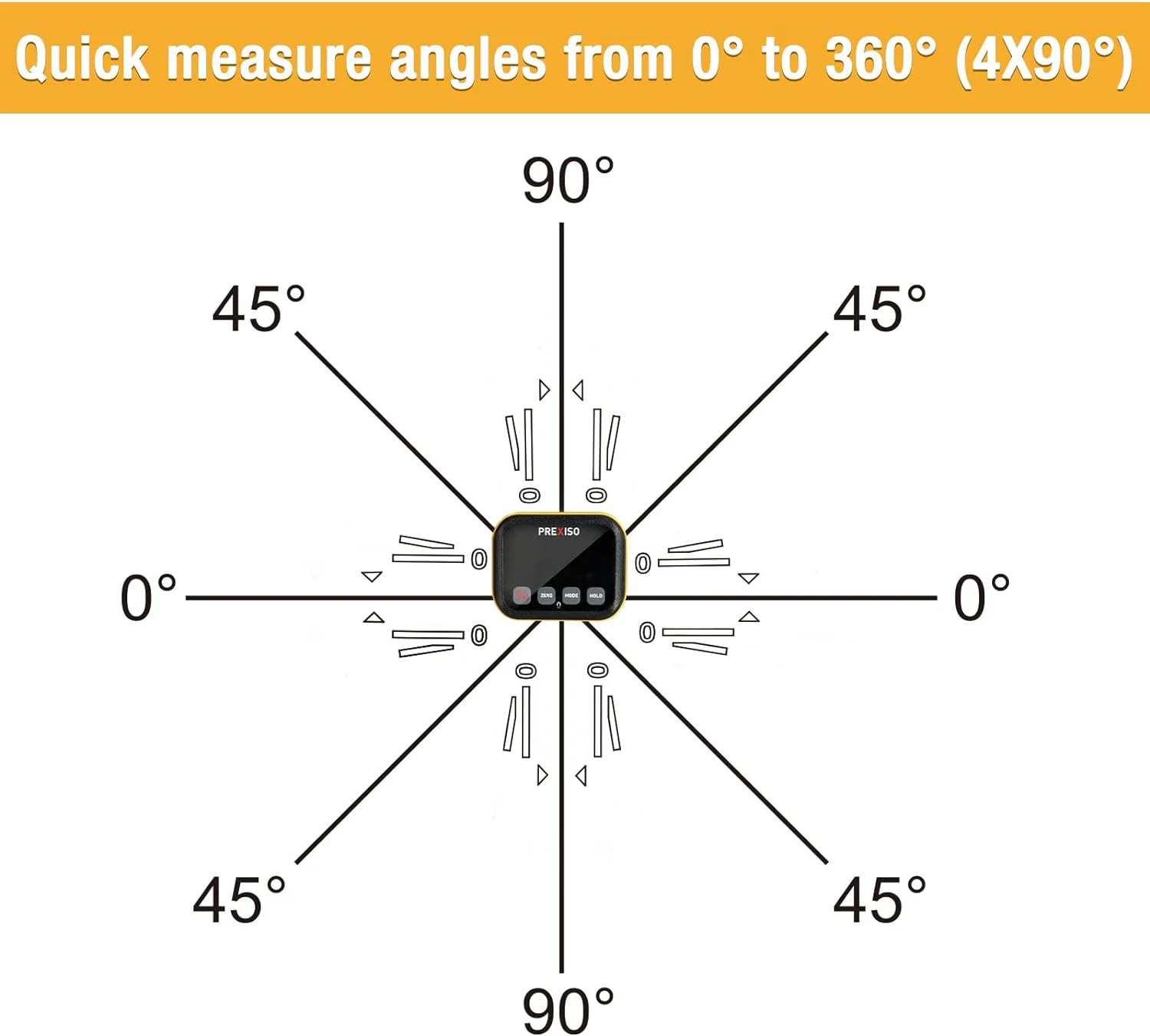 PREXISO Angle Gauge Magnetic, Angle Finder - Digital Level Electronic, Protractor Angle Cube Inclinometer for Woodworking, Table Saw, Construction, Masonry, Machinery, 0-360° Bright Backlit Display