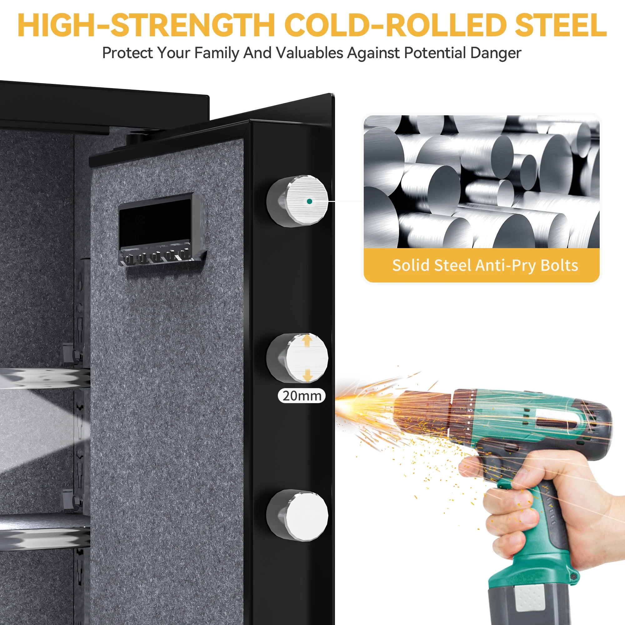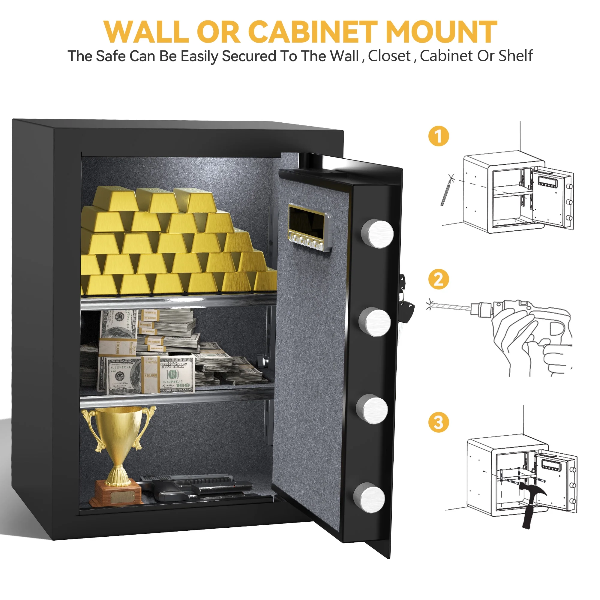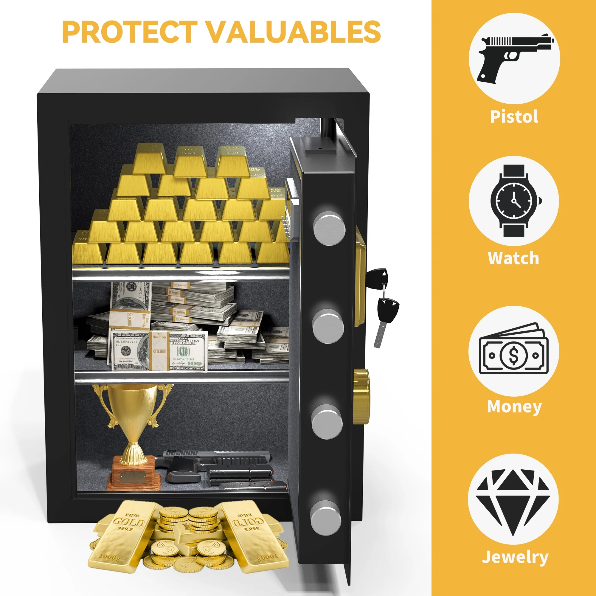 Dextrus Large Security Safe Box, 3 CU.FT Fingerprint Safe Box with Digital Keypad,Water and Fire Resistant bag and Adjustable Shelves for Documents and Valuables in Homes, Offices, and Hotels - Black
