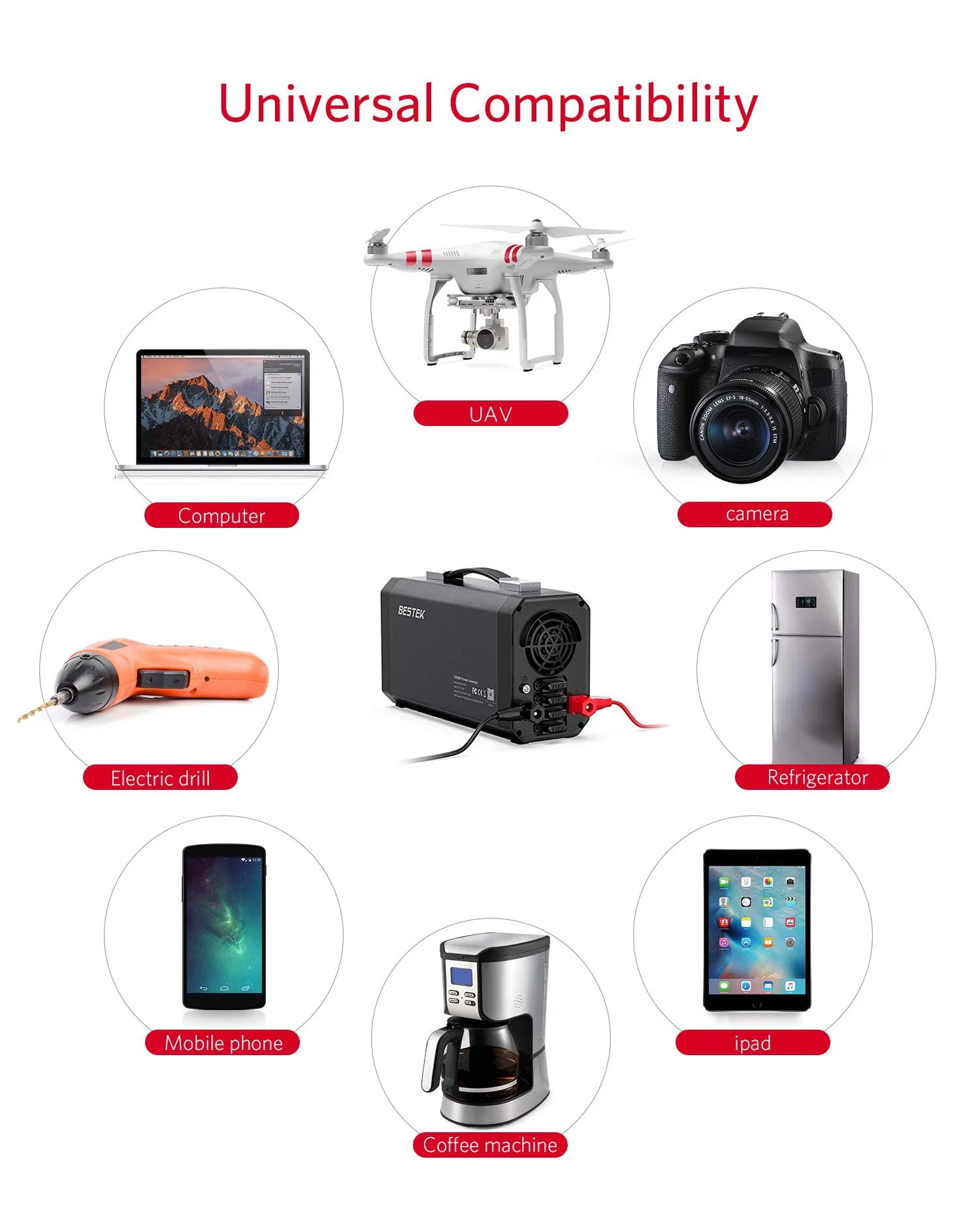 BESTEK 1200Watt Power Inverter DC 12V to 110V AC Converter with Digital LCD Display 4.2A Dual USB Car Charger