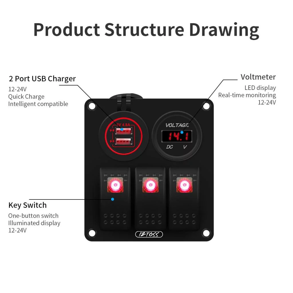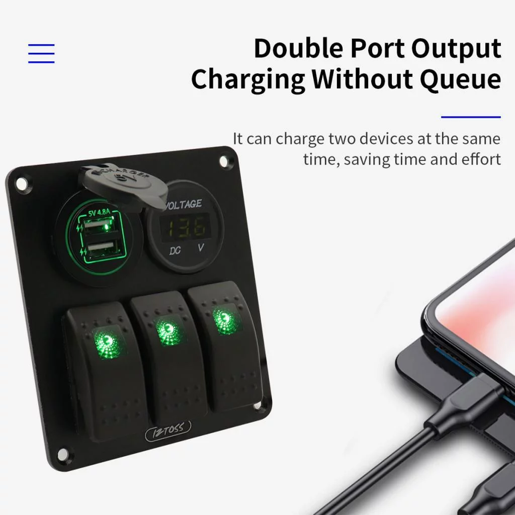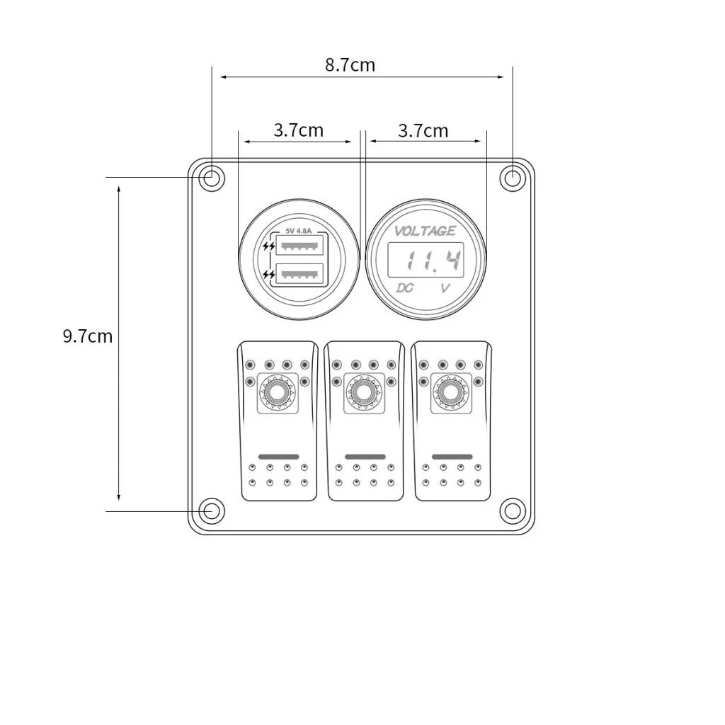 3 Gang Switch Panel with 12V-24 Digital Voltmeter for RV Car Truck Marine Boat SUV ()