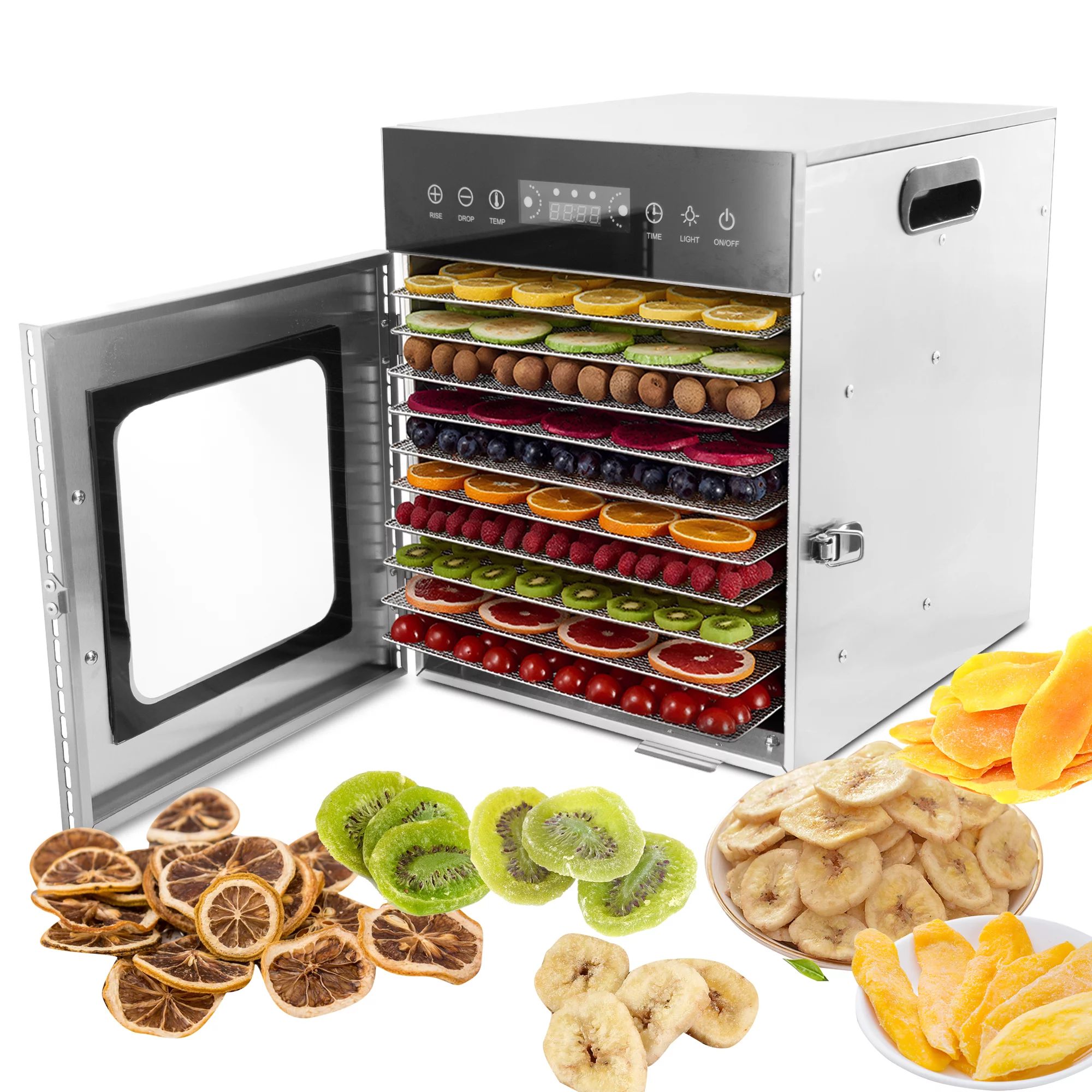Hakka Brothers Food Dehydrator 10 Trays Stainless Steel Digital Control with Timer Temperature Control Fruit Meat Vegetables Dehydrator