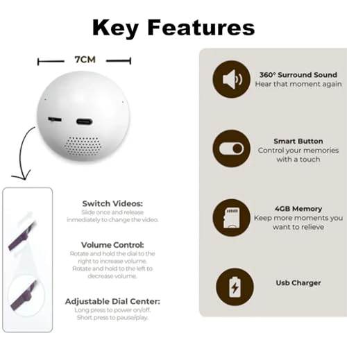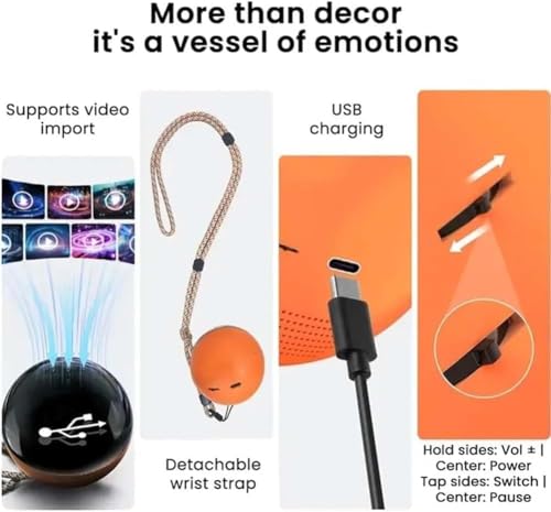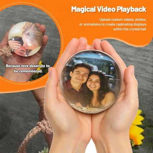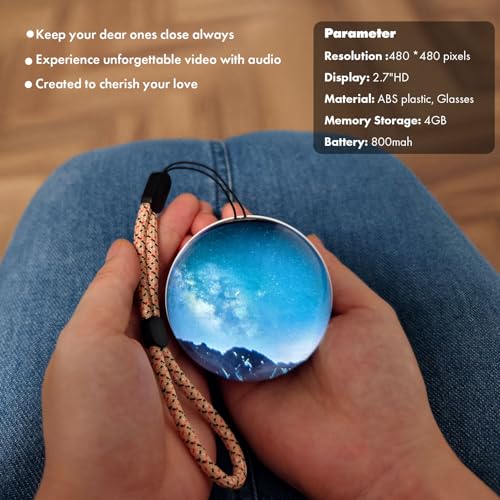 Crystal Ball Video Player, Memory Sphere Lamp with Sound, 2.7" 3D Crystal Ball, Video Sphere Orb Digital Player, Personalized Gift for Anniversary, Birthday,Wedding, Couples, Pet (White)