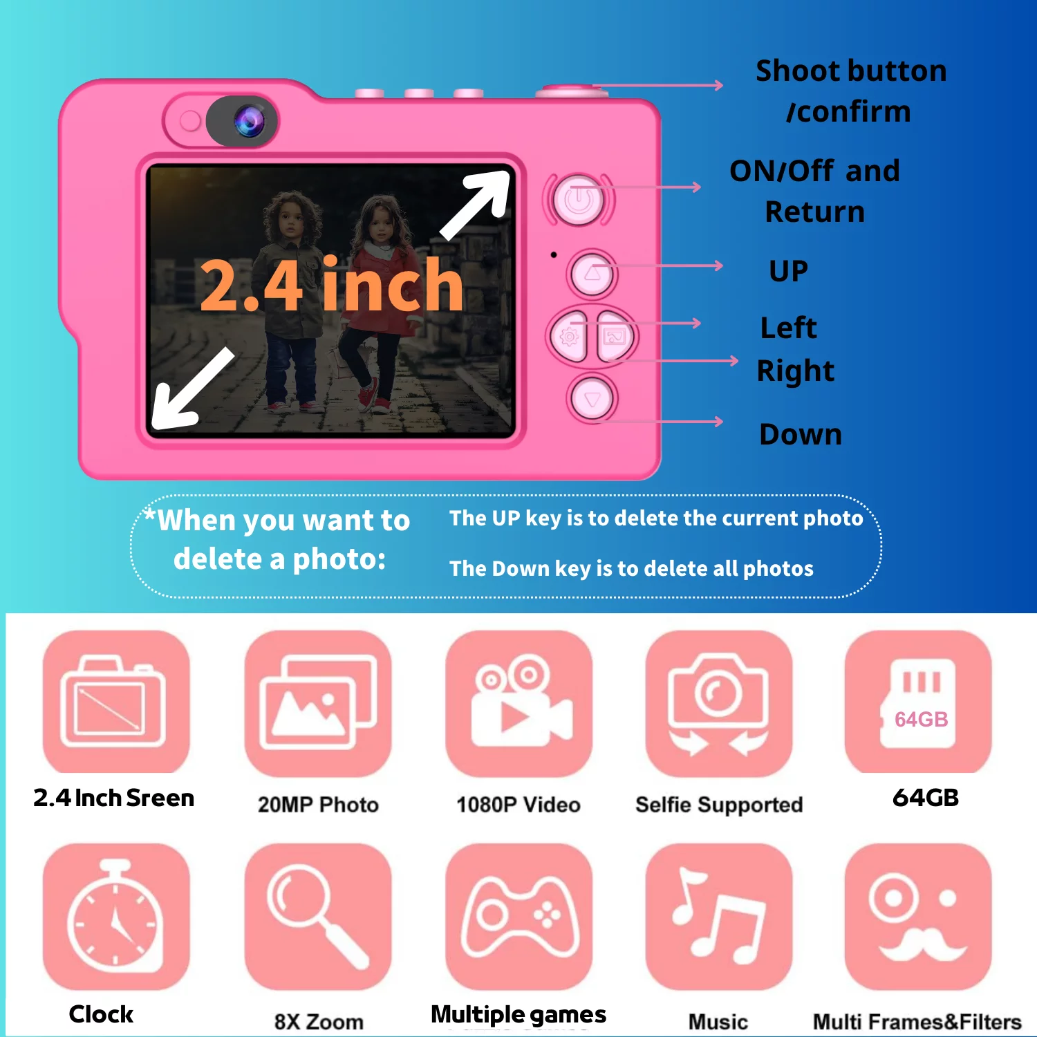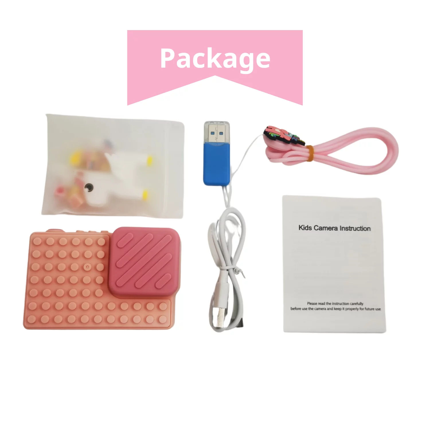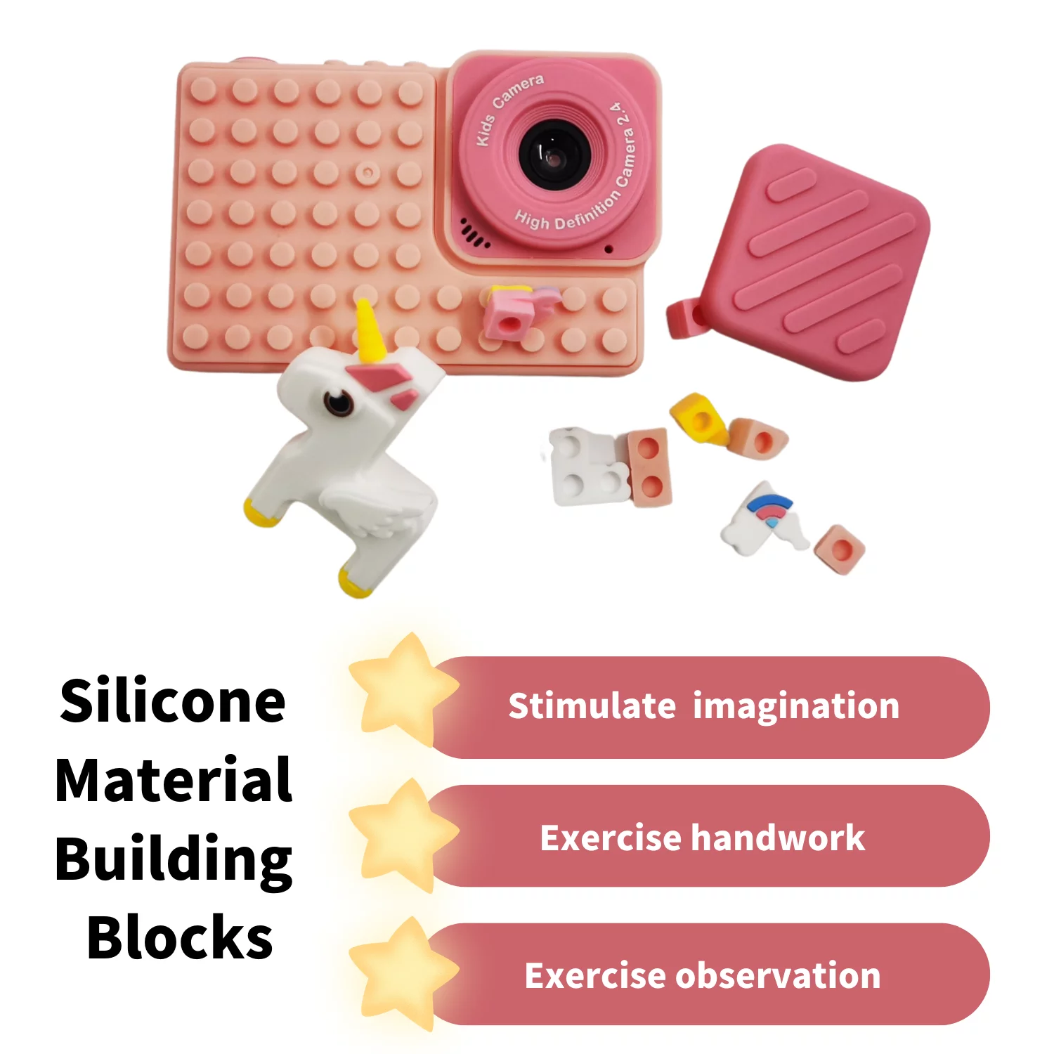 MOPO Kid Camera Unicorn for Girl Digital Camera For Children 3 8 Years With Building Block Dual Lens 2.4 Inch HD Screen 64GB Pink*1