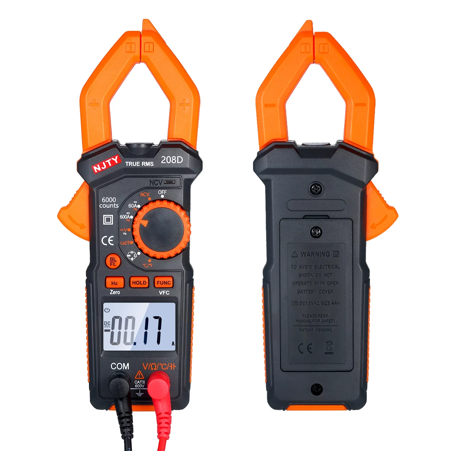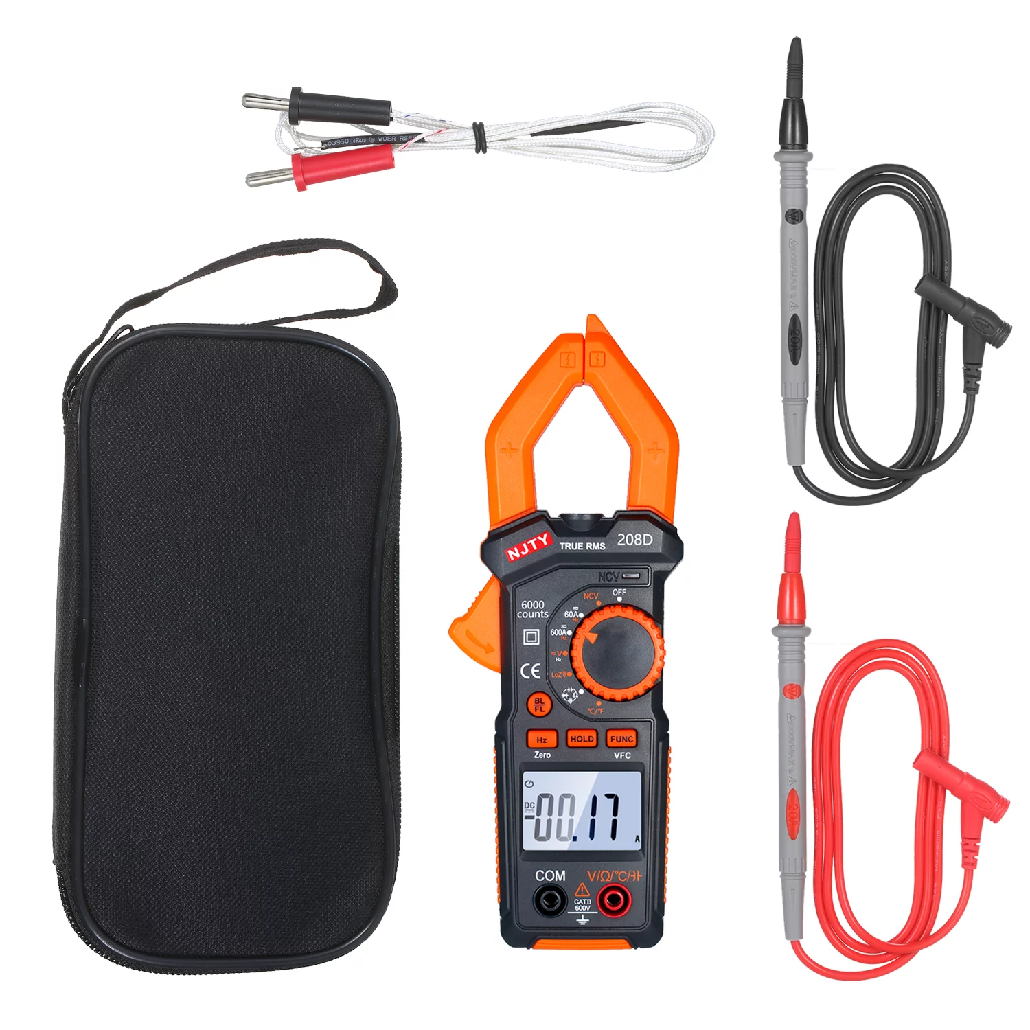 Njty 600A Ac/Dc Digital Clamp Meter with Temperature Auto Ranging Multimeter with Audible Continuity Beep True-Rms Clamp Meter with Diode/Ncv/Voltage/Current/Resistance/Frequency/Capacitance