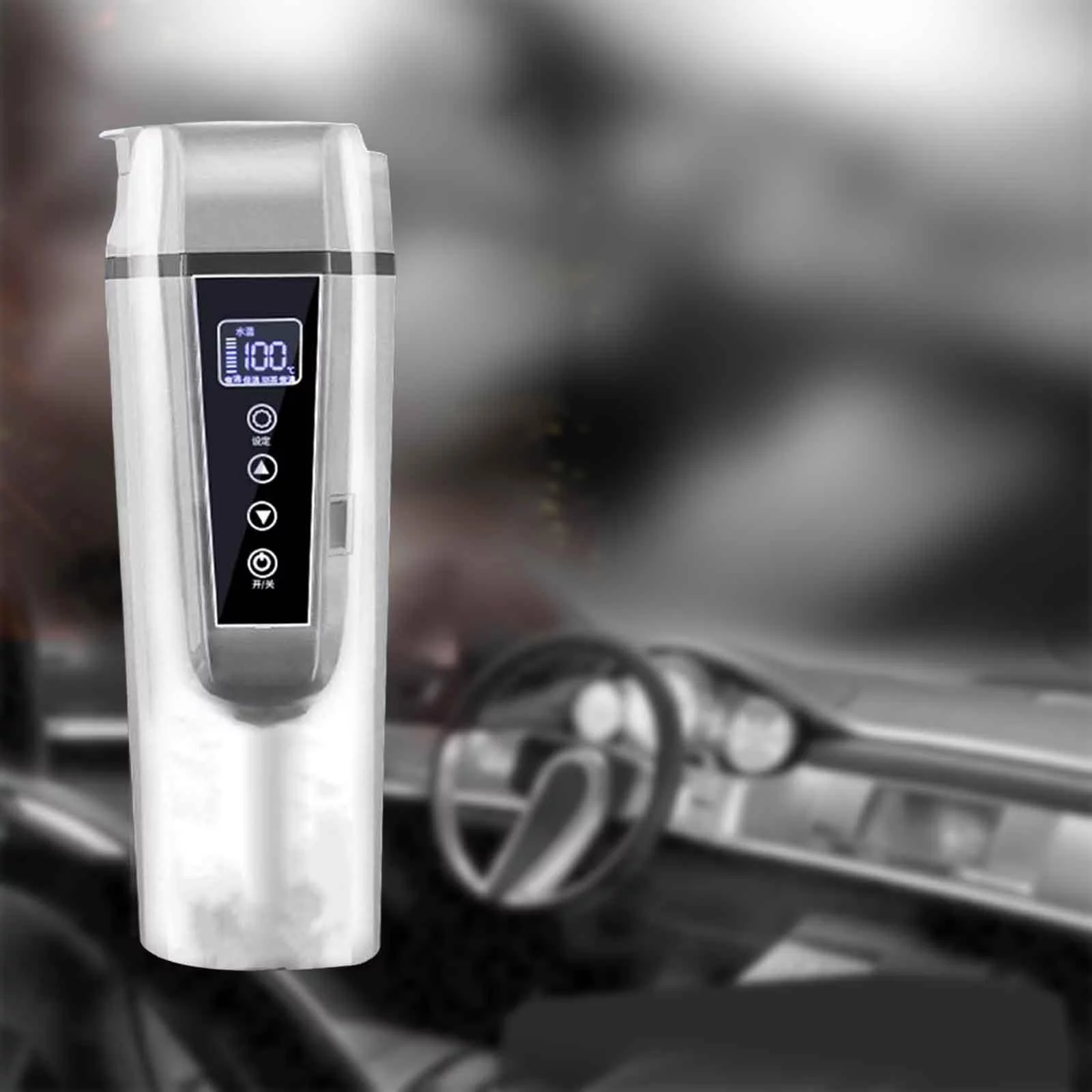 12V/24V Car Kettle Digital Display Heating Cup Winter Kettle for car and boat Truck White