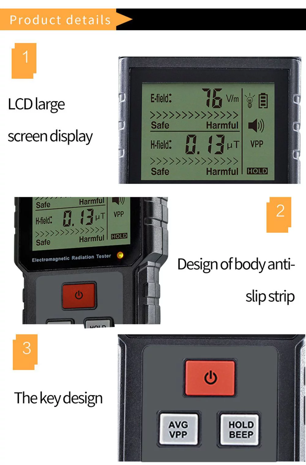 High Precision Detector For Computer Phone Electric Magnetic Field EMF Meter Electromagnetic Radiation Tester Electric Magnetic Field Frequency Tester Digital Display