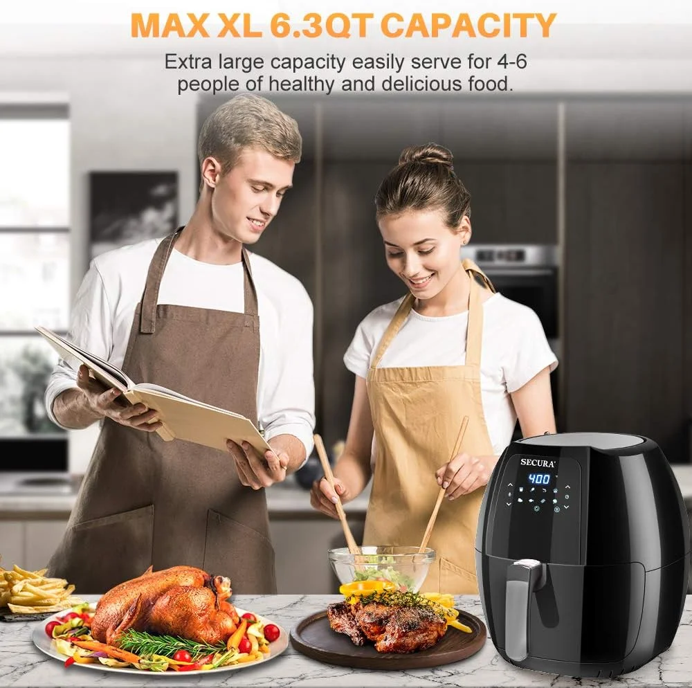 Open Box Secura Max 6.3Qt, 1700W 10-in-1 Digital Hot Air Fryer - BLACK