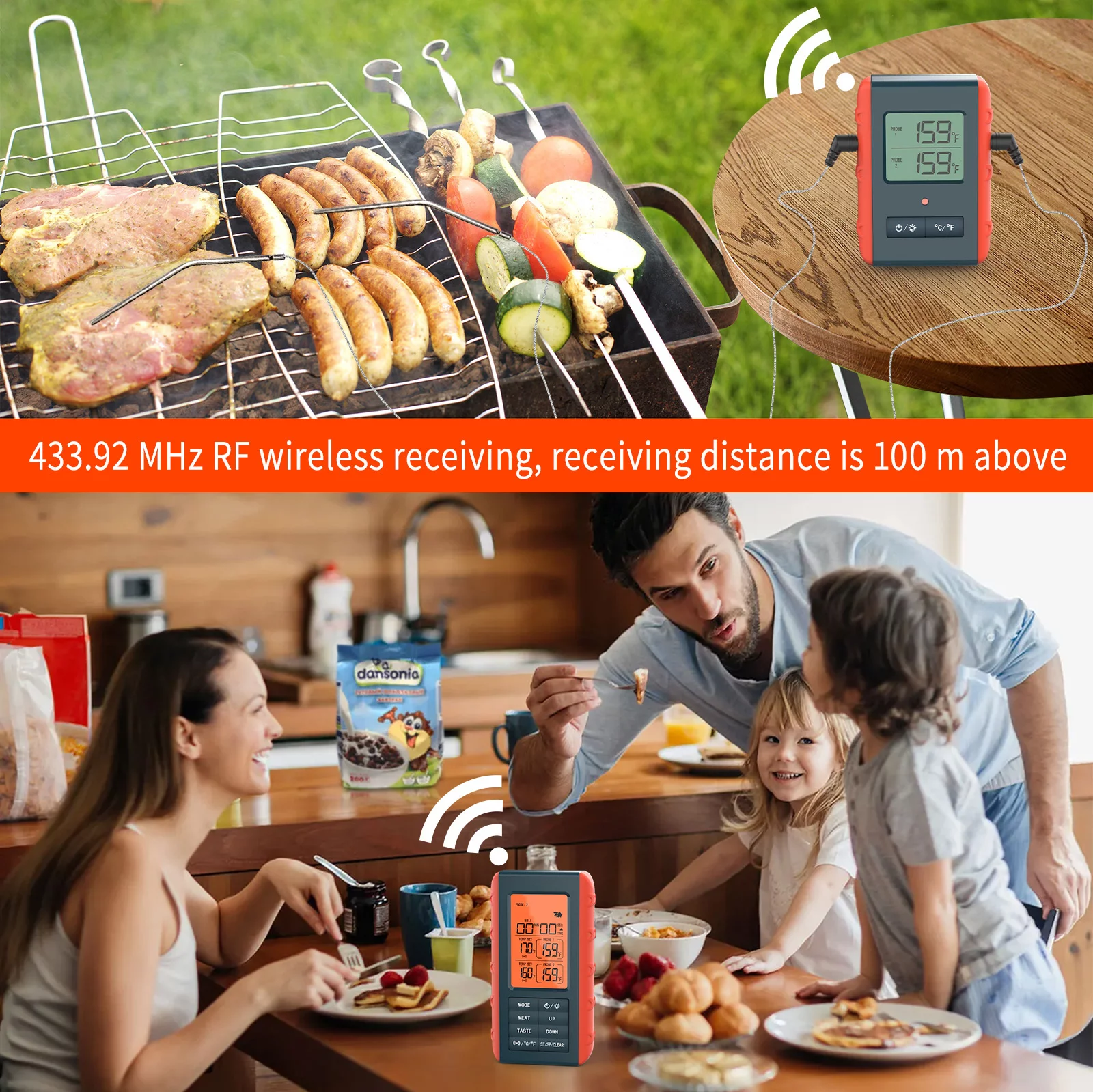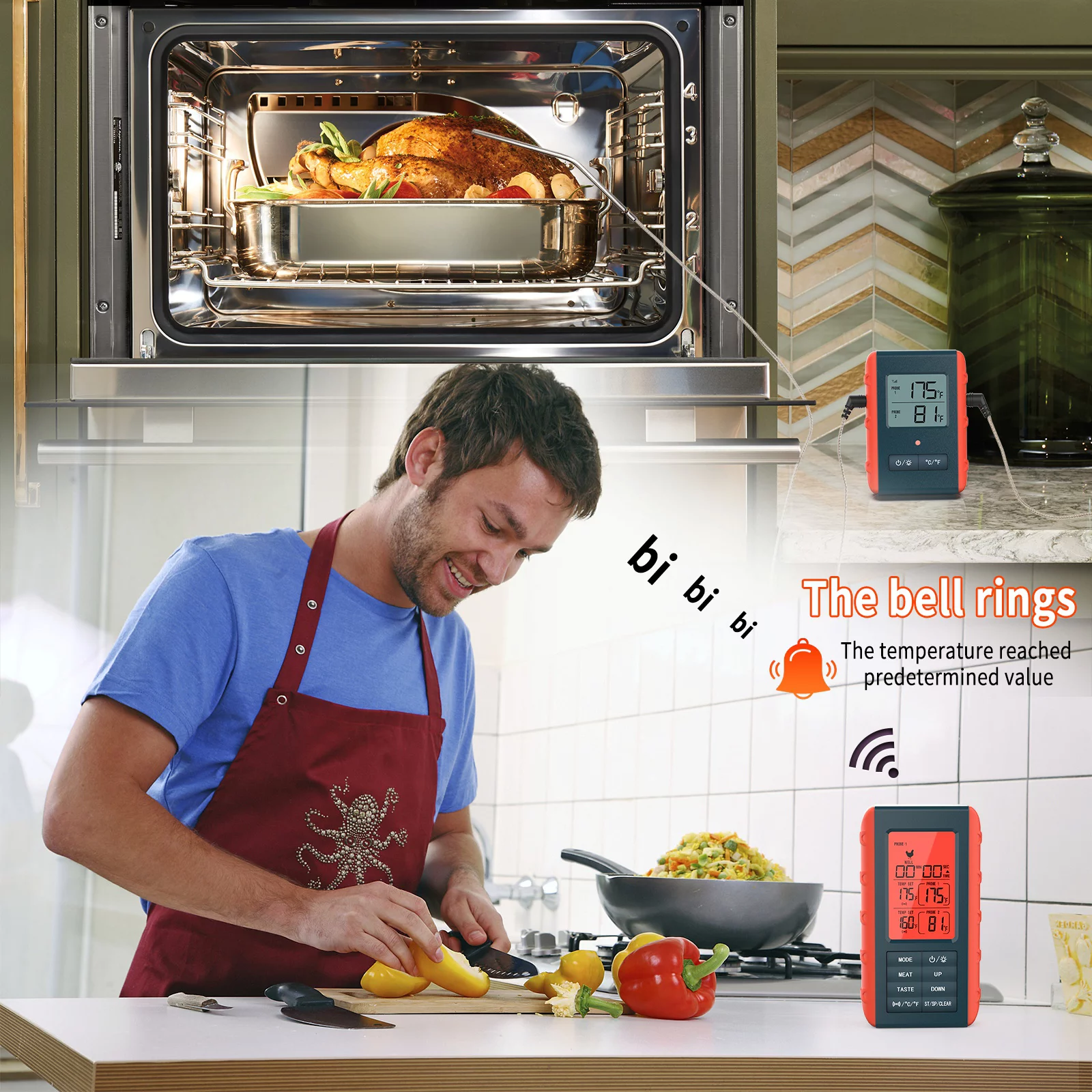 Pinnaco Wireless Meat Thermometer for Grilling Kitchen Food Cooking - Digital Thermometer with 2 Probes, Smoker Oven Grill BBQ Accessories