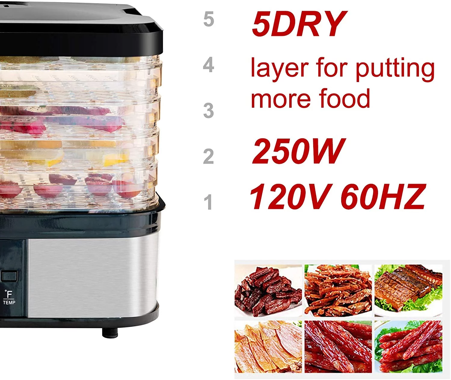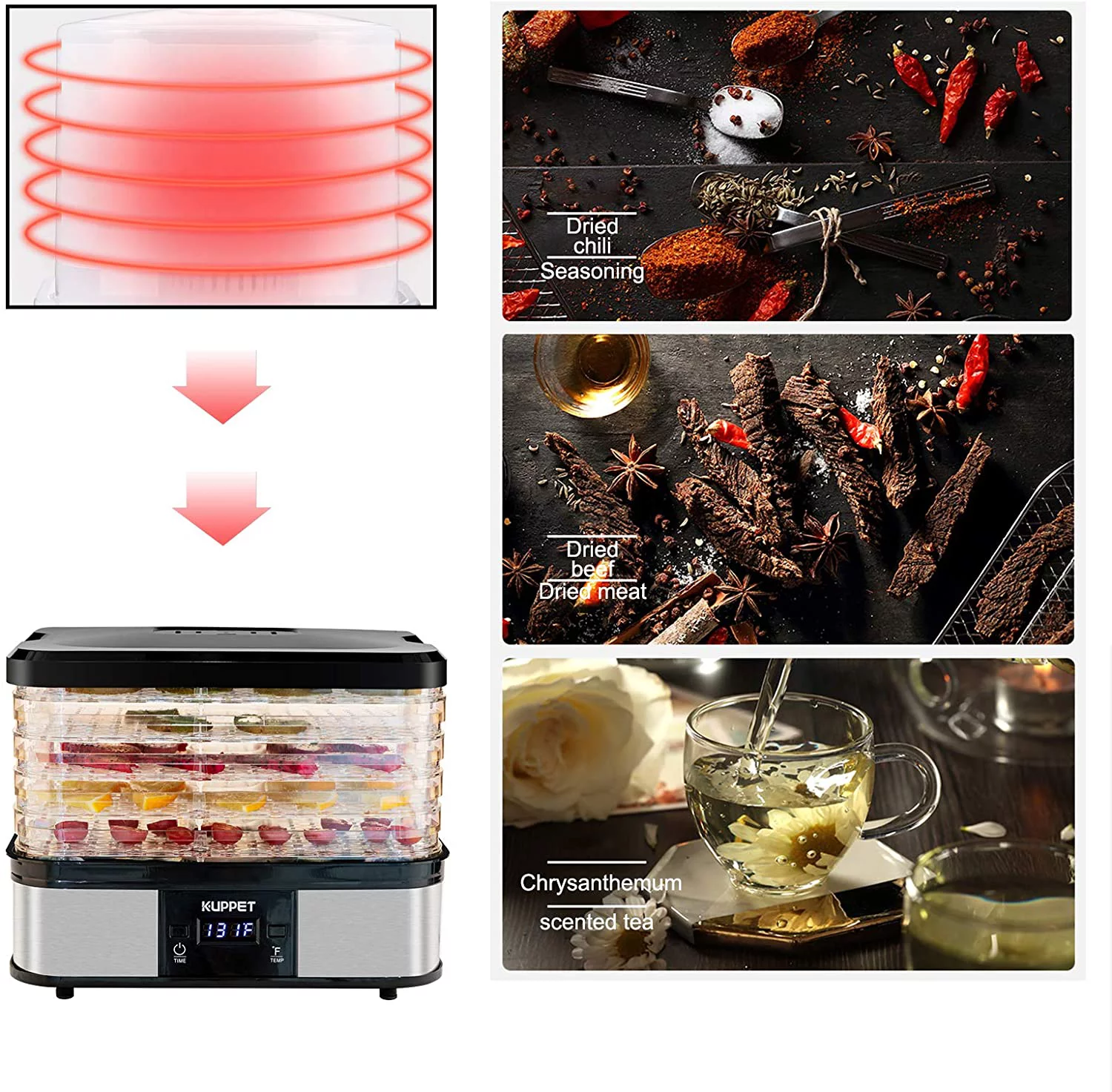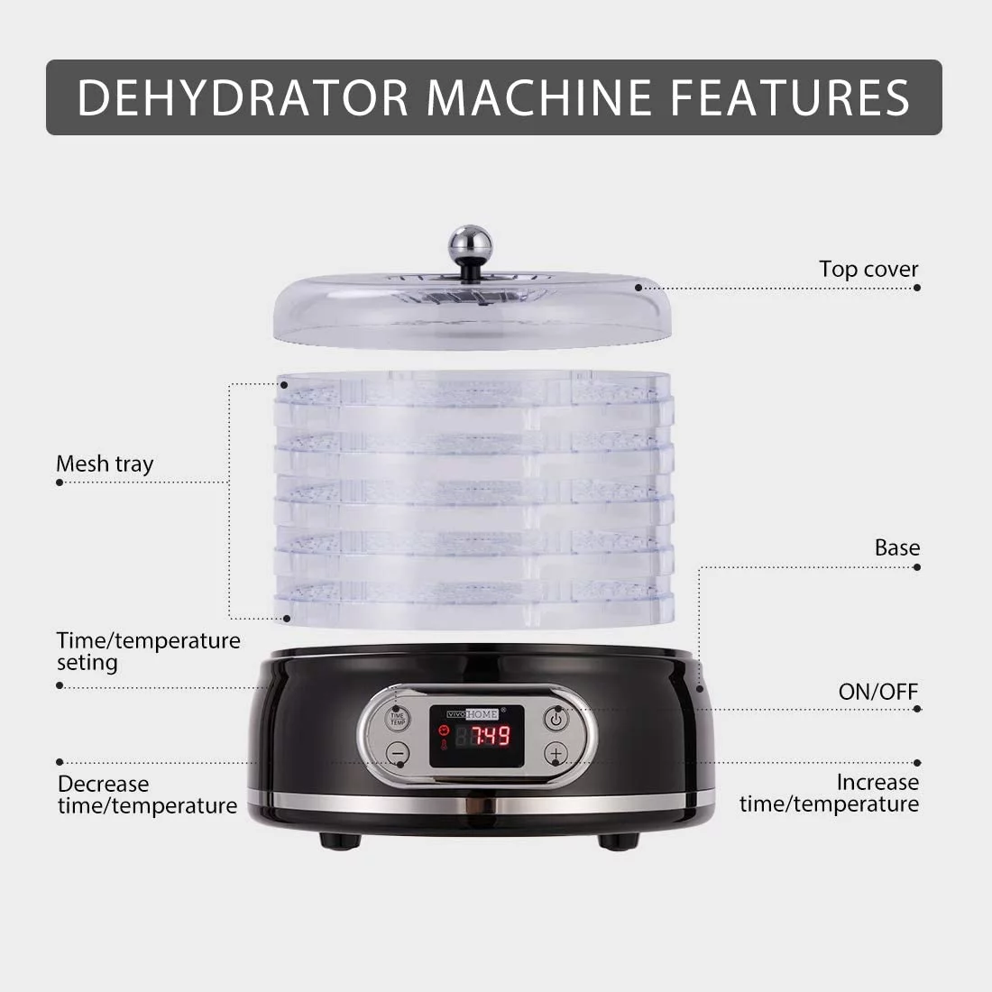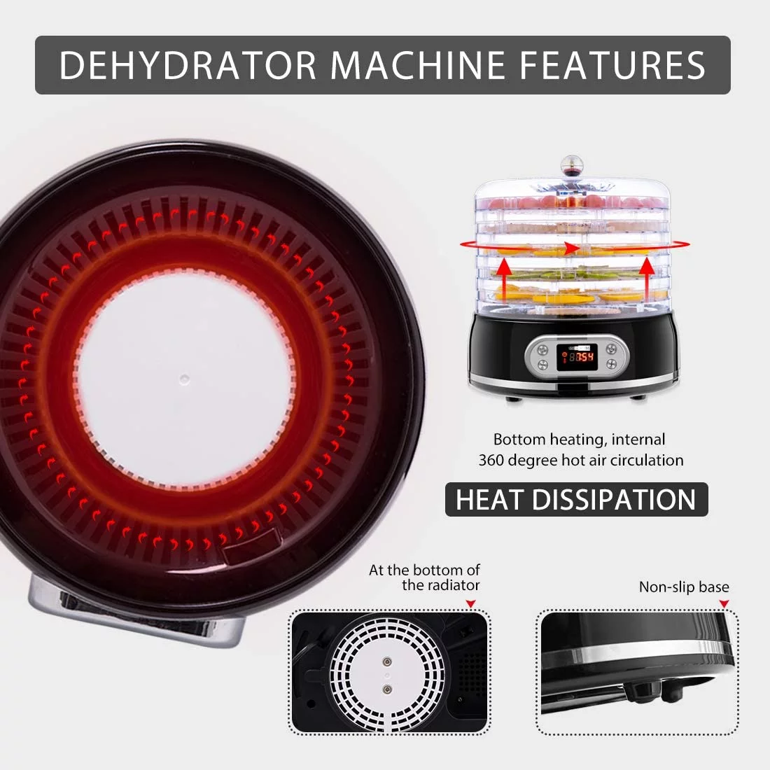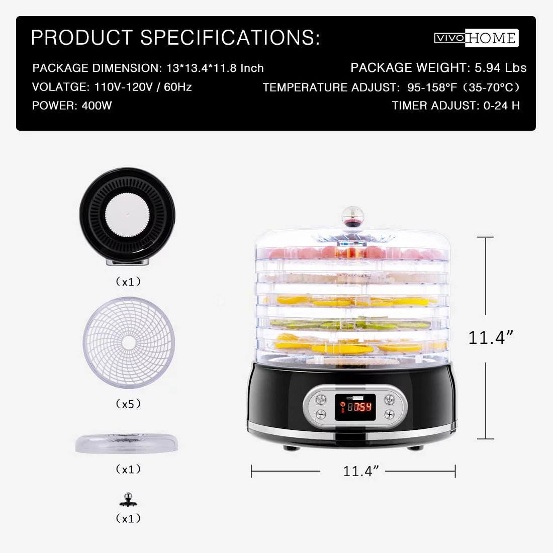 VIVOHOME Electric 400W 5 Trays Round Food Dehydrator Machine with Digital Timer and Temperature Control for Fruit Vegetable Meat Beef Jerky Maker BPA Free, Black