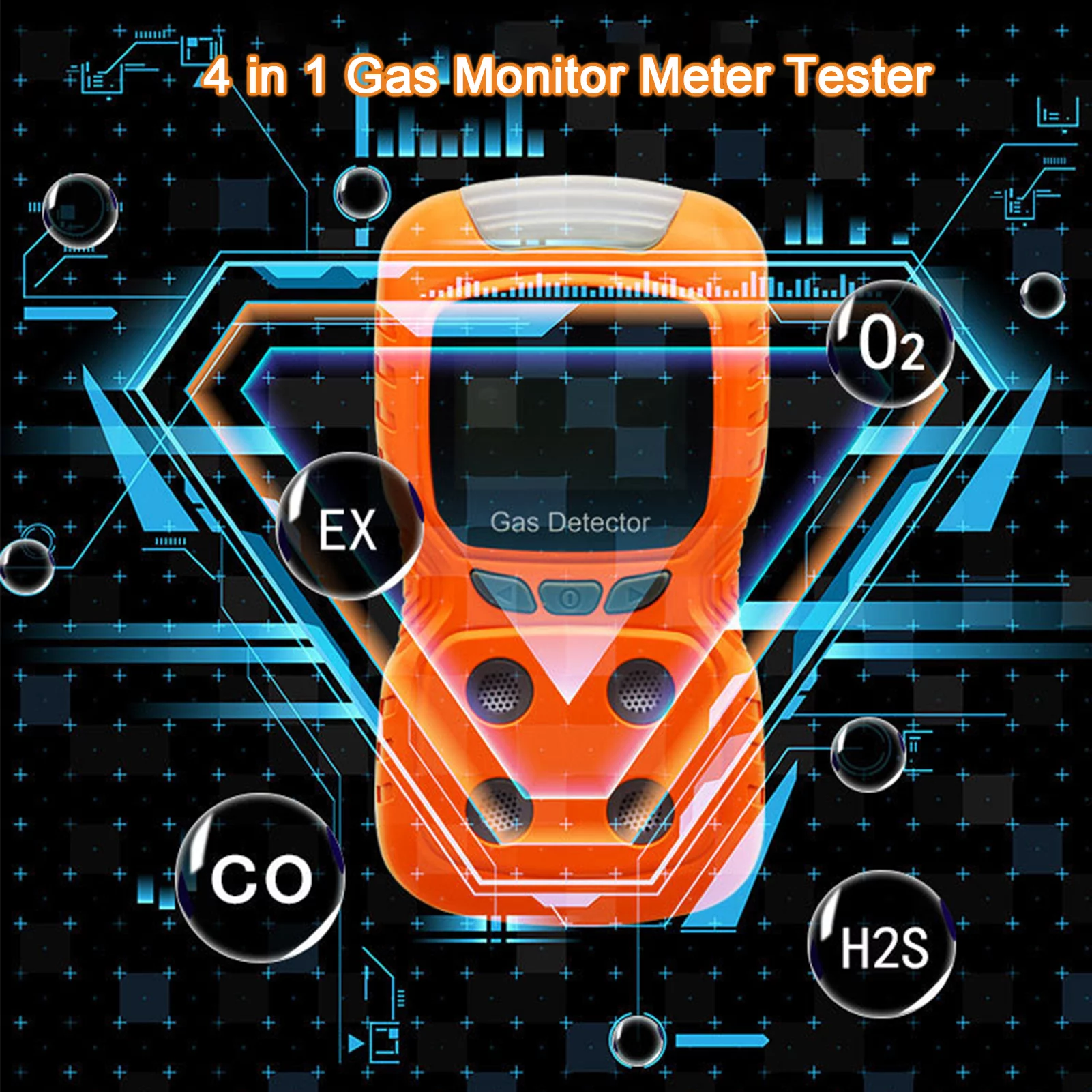 4-Gas Monitor Meter Tester Analyzer Portable Gas Monitor Digital Toxic Gas Rechargeable LCD Display Sound Vibration