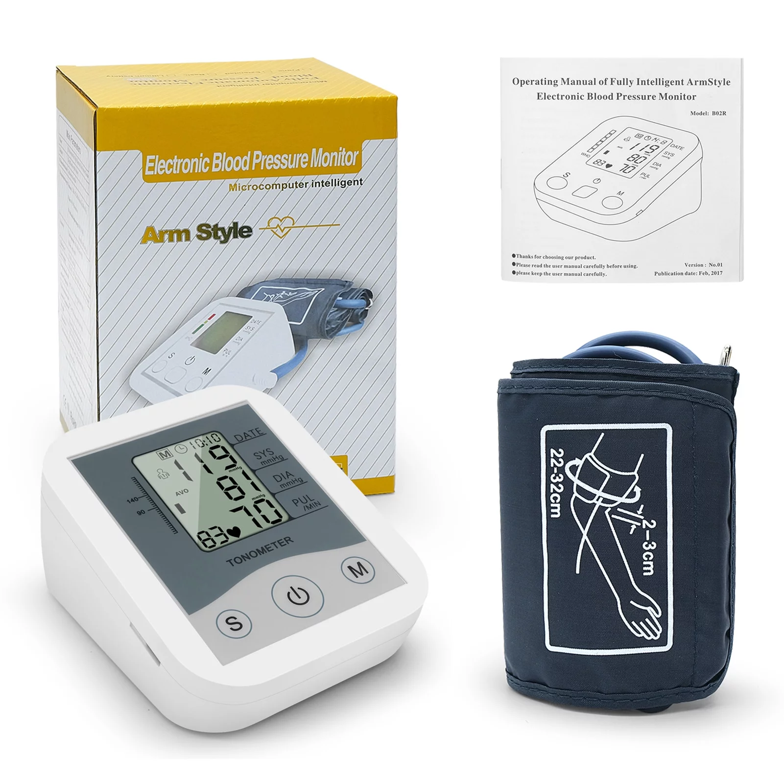 Arm Sphygmomanometer LCD Digital Display Pulse Scanning Oscillometry Two Measuring Method for Measuring Pulse Rate