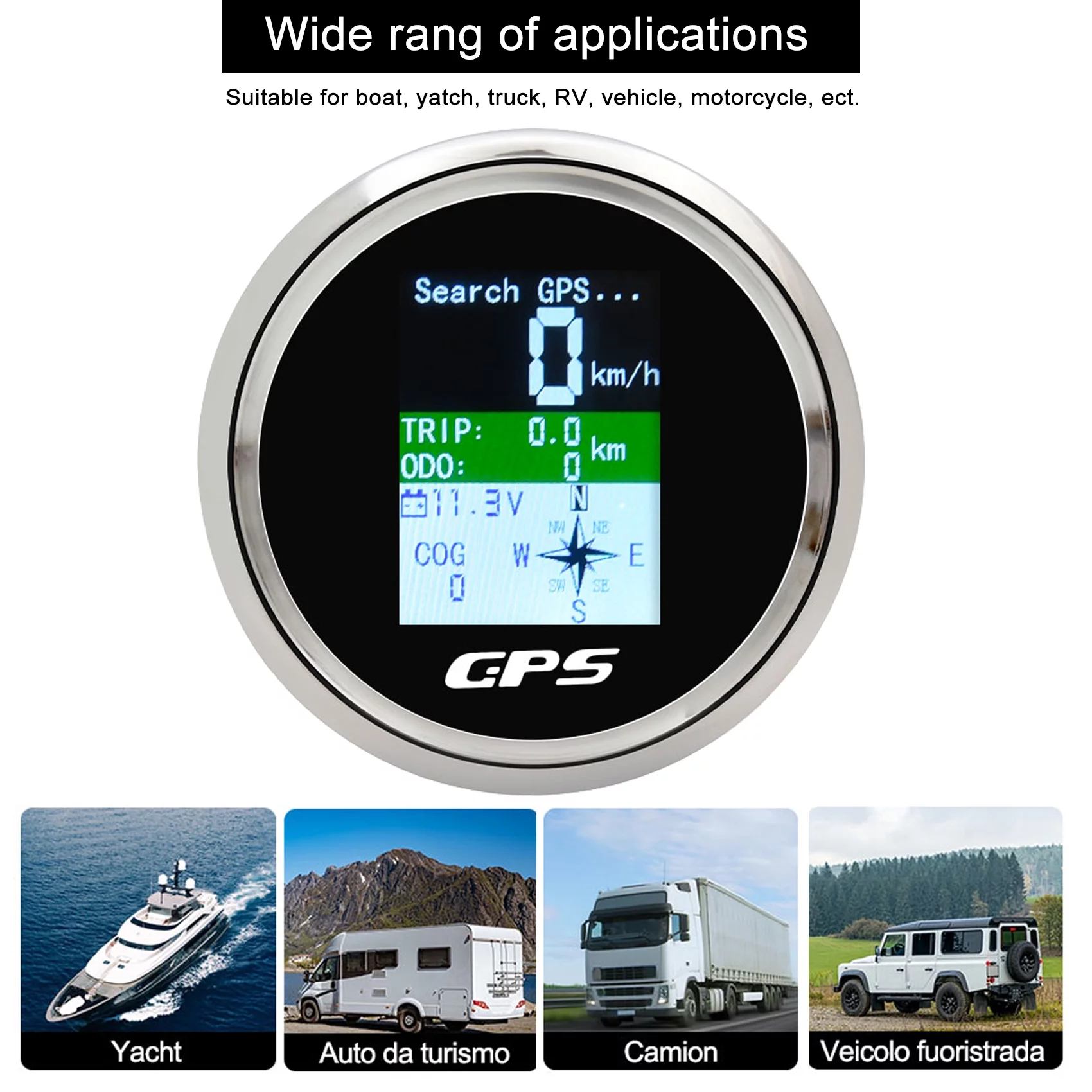 Geloo 85mm LCD Digital GPS Boat Speedometer Odometer Gauge for Car Truck Motorcycle Marine