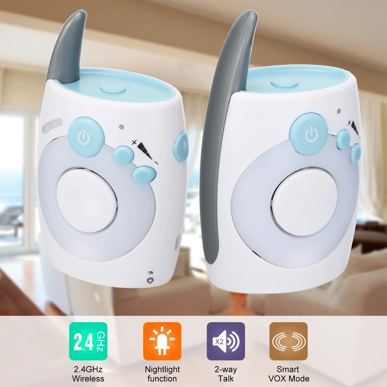 Lixada Wireless Digital Audio Baby Monitor 2.4GHz Sensitive Cry Detector Two Way Talk Crystal Clear Transmission Portable