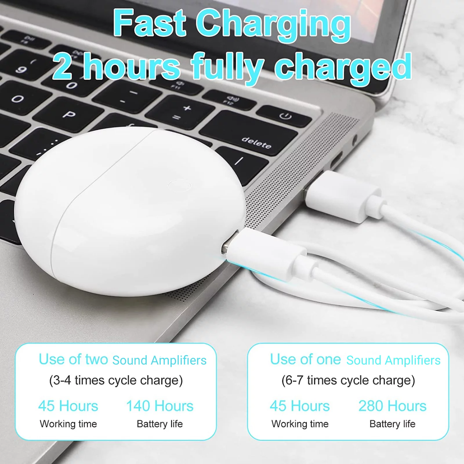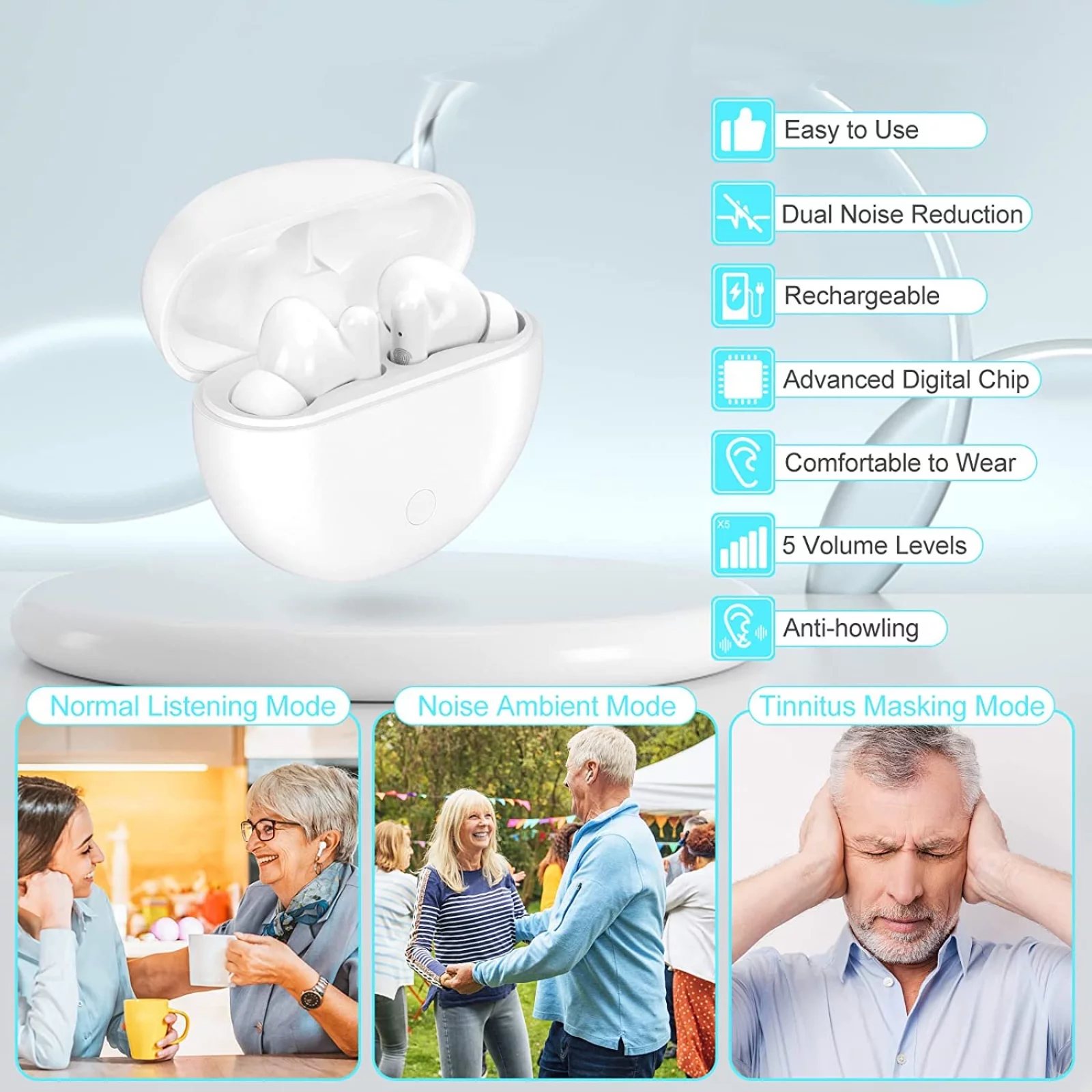 Sound Amplifier for Ears, Mini In-Ear Digital Sound Amplifier for Seniors and Adults, Rechargeable Amplifier, with Portable Charging Case, Binaural(White)
