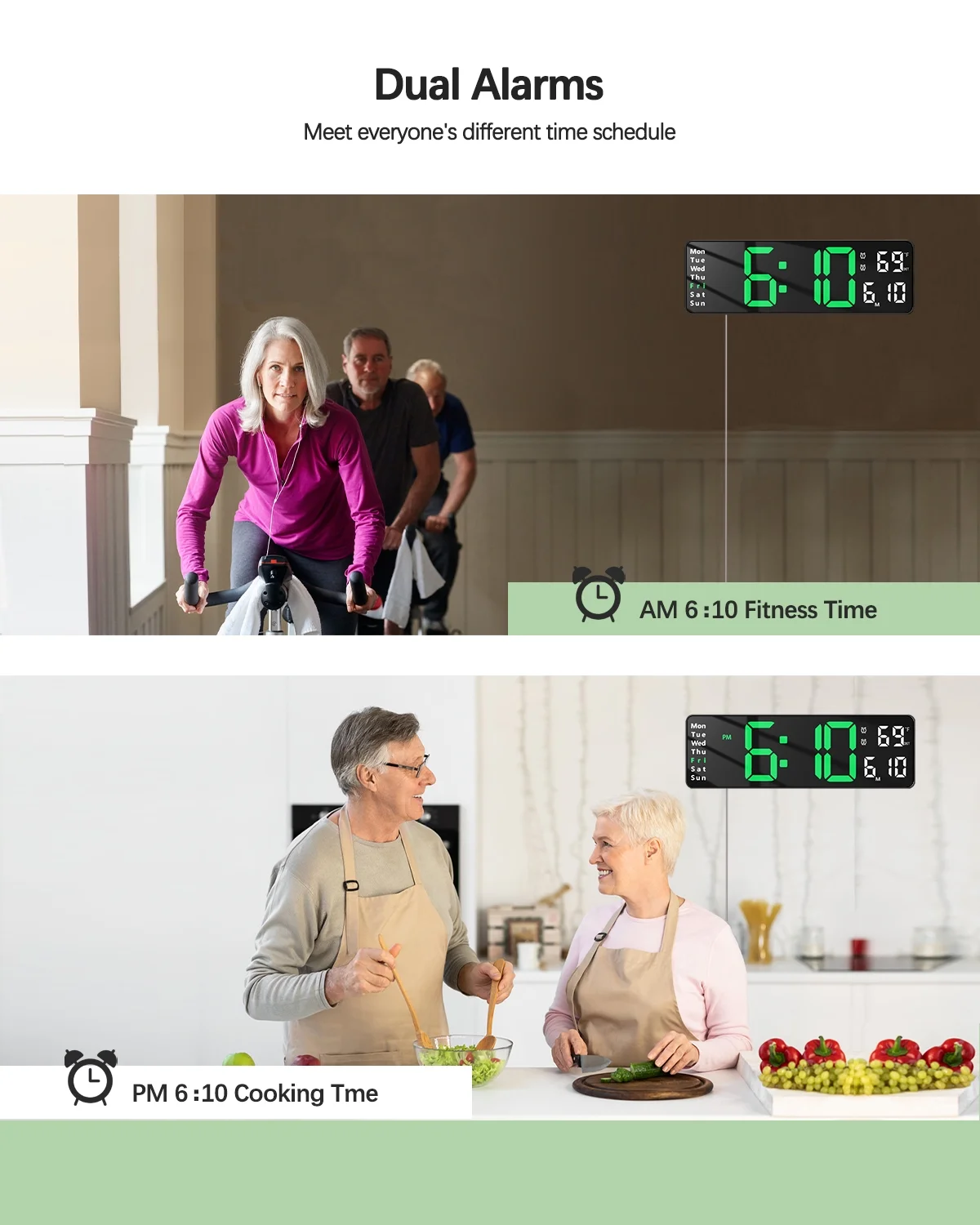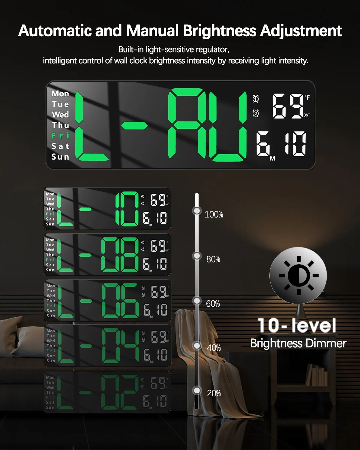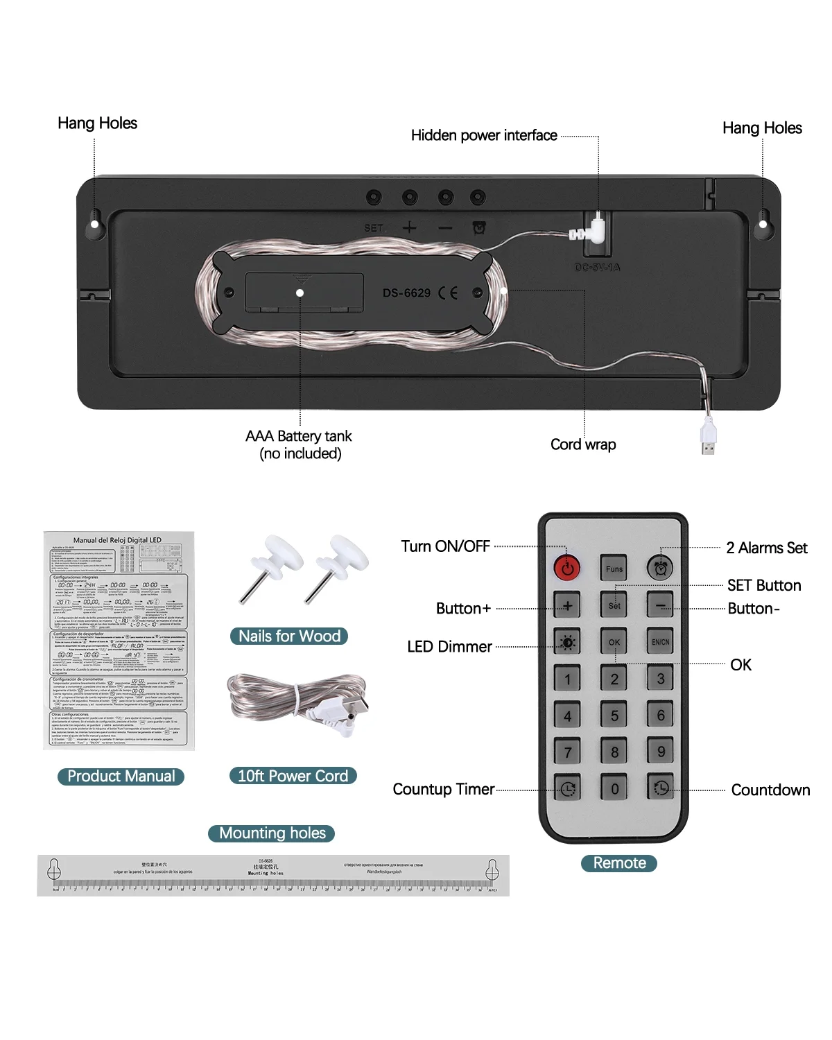 JoFomp Digital Wall Clock - Large LED Display, Loud Alarm, Remote Control, DST, Auto-Dimming, Date and Day, Timer, Temperature - 12/24H Format - Ideal for Living Room, Bedroom, Kitchen