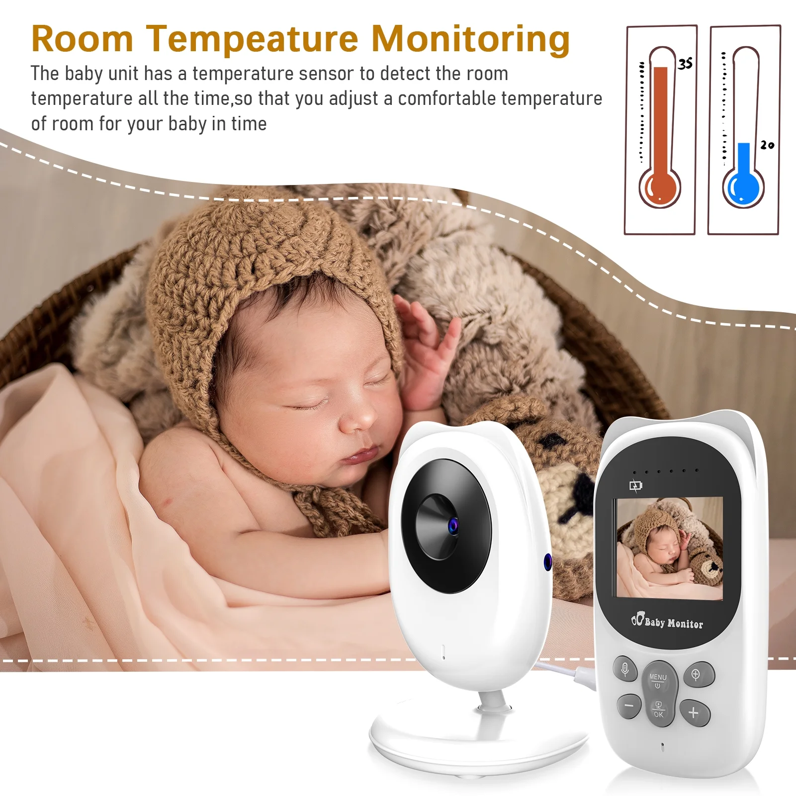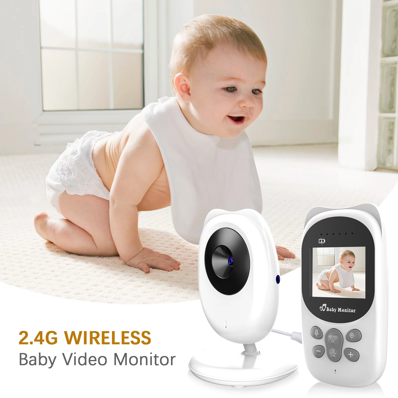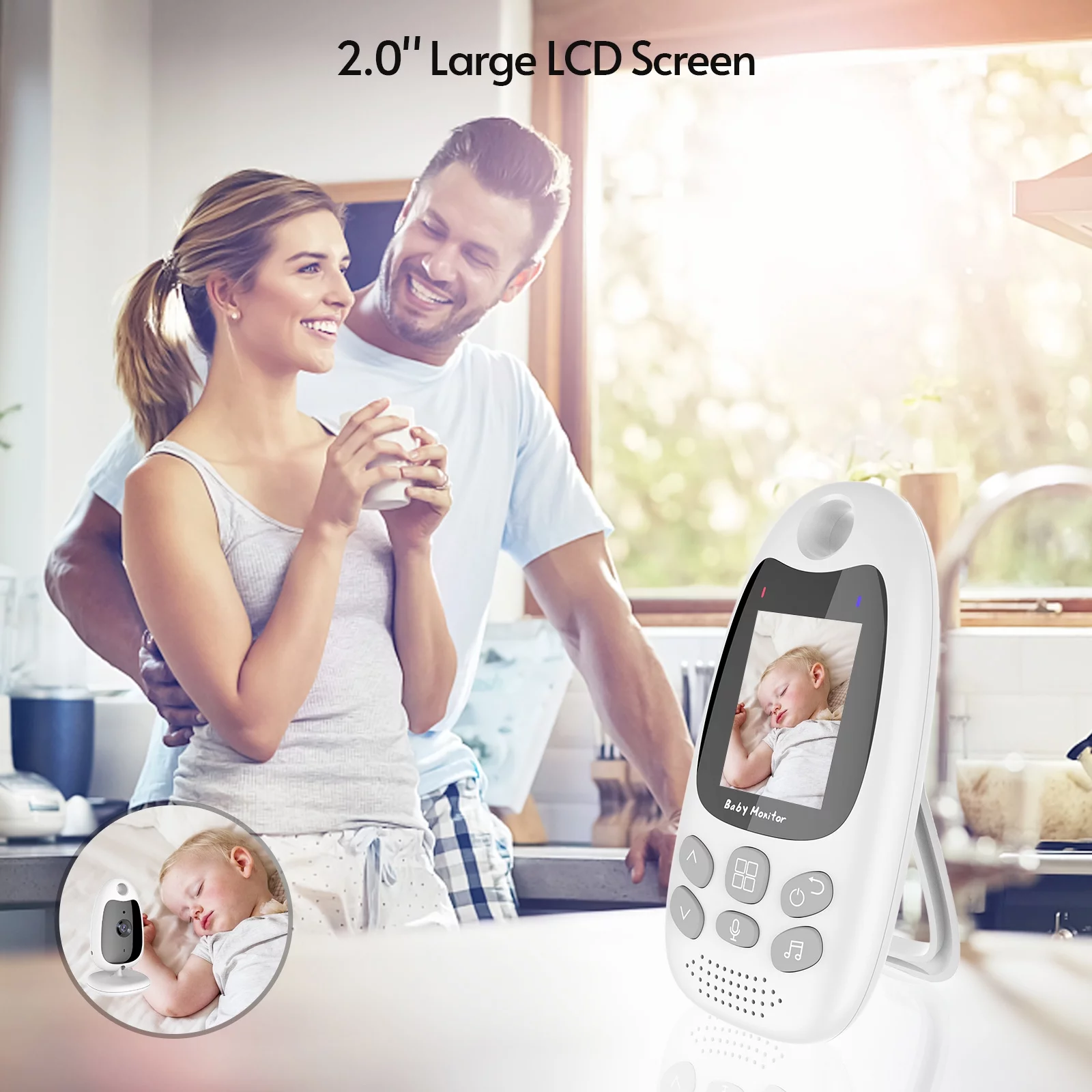 Wireless Monitor Digital Video Monitor for with 2.0 Inch LCD Screen Room Detection Auto Built-in Music Multi-Language Setting