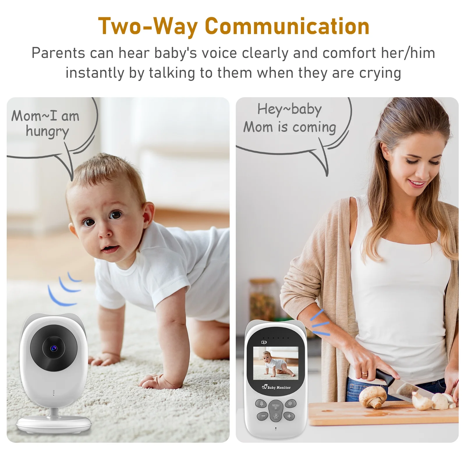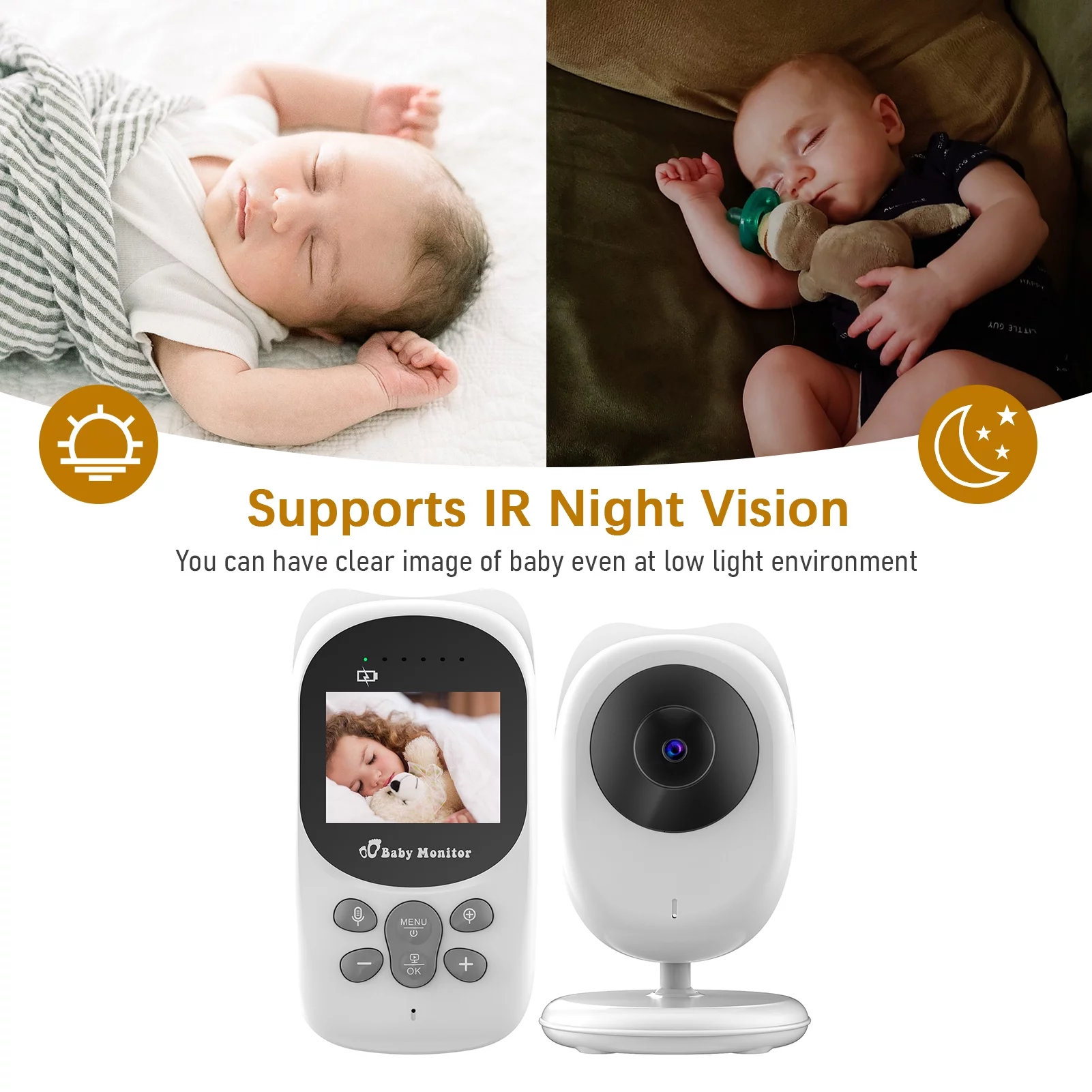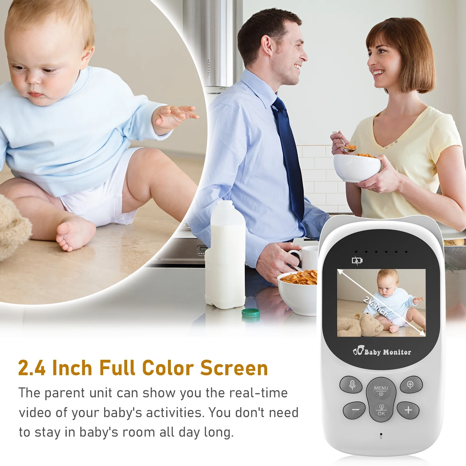 Wireless Monitor Digital Video Monitor for with 2.0 Inch LCD Screen Room Detection Auto Built-in Music Multi-Language Setting